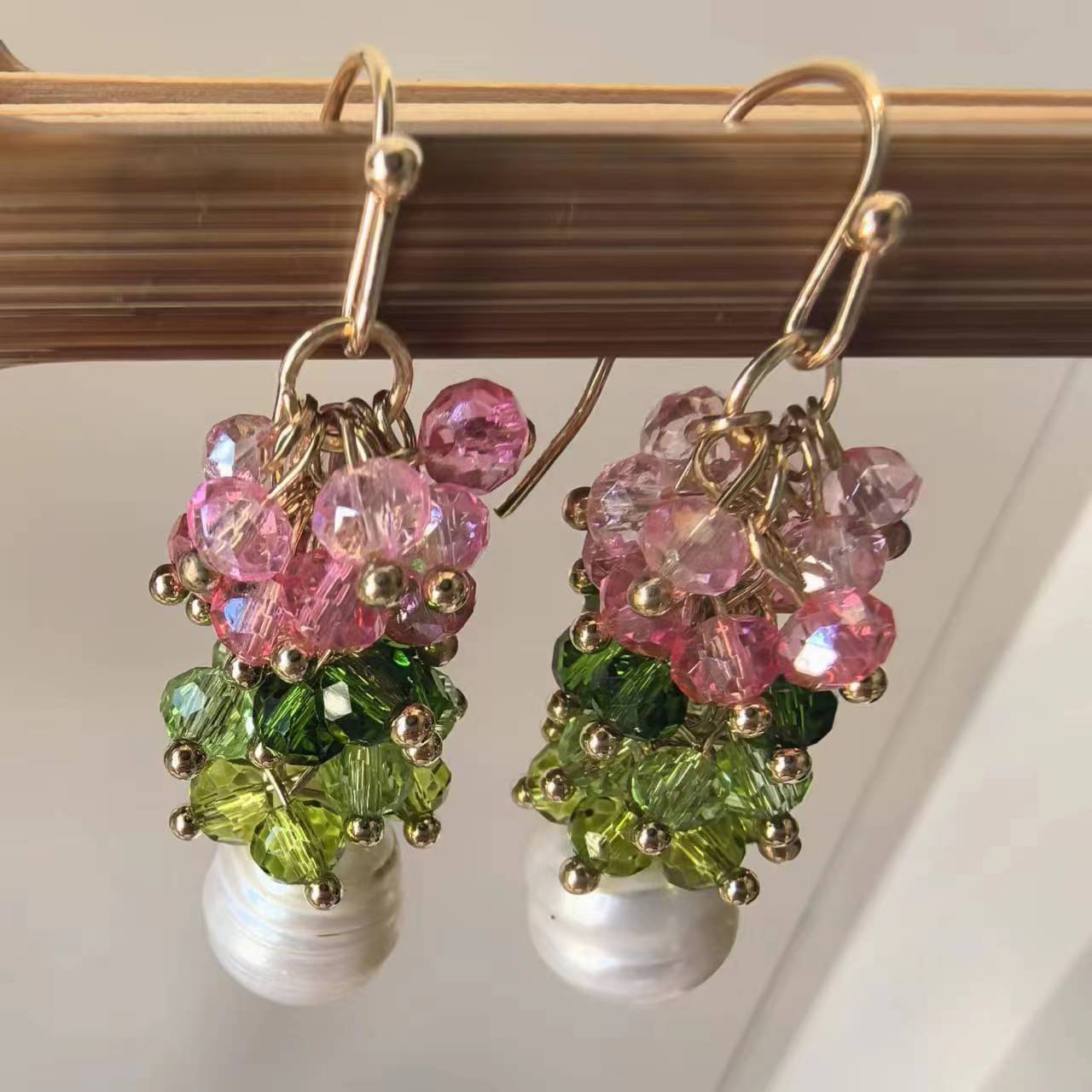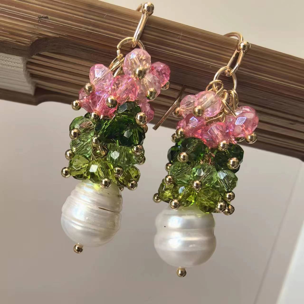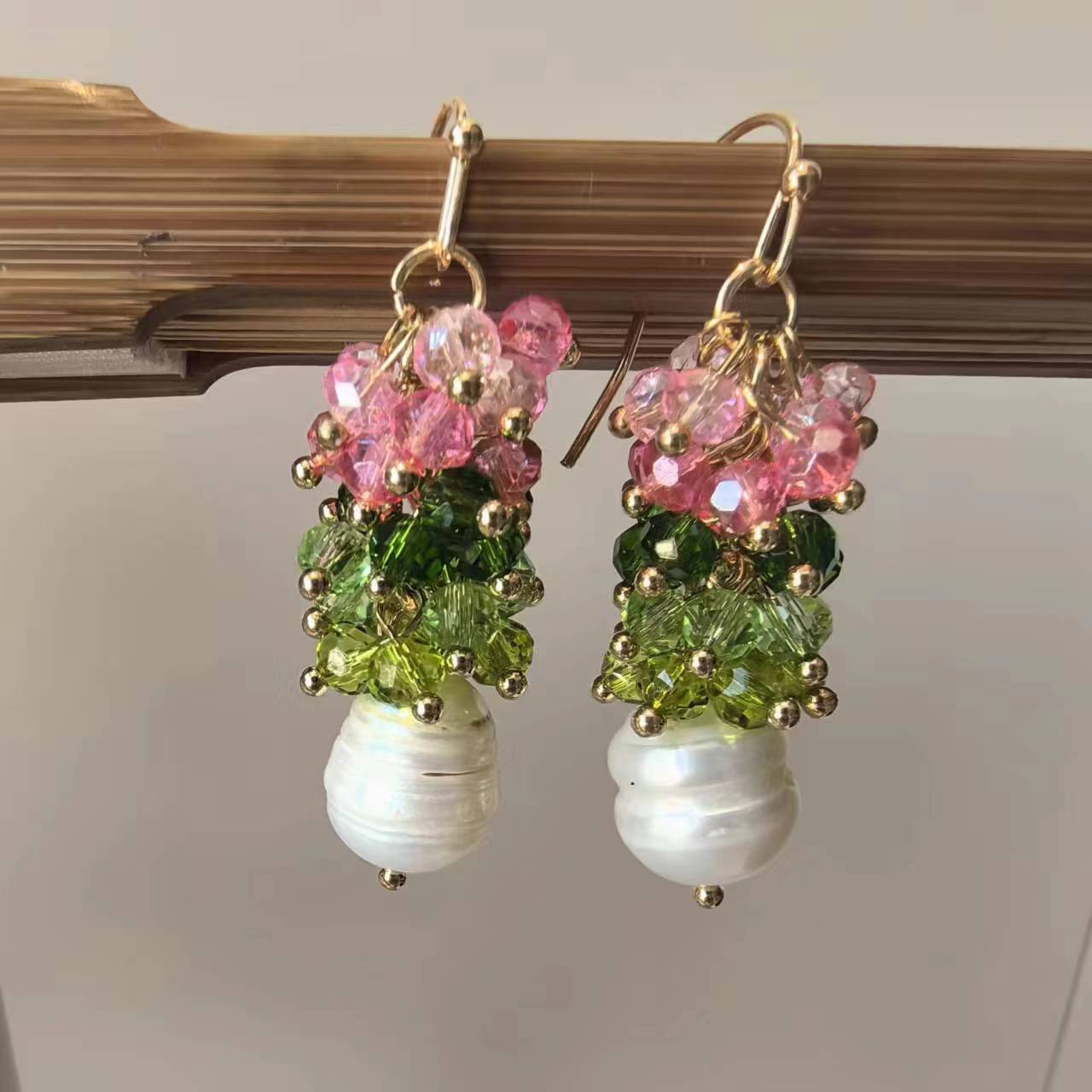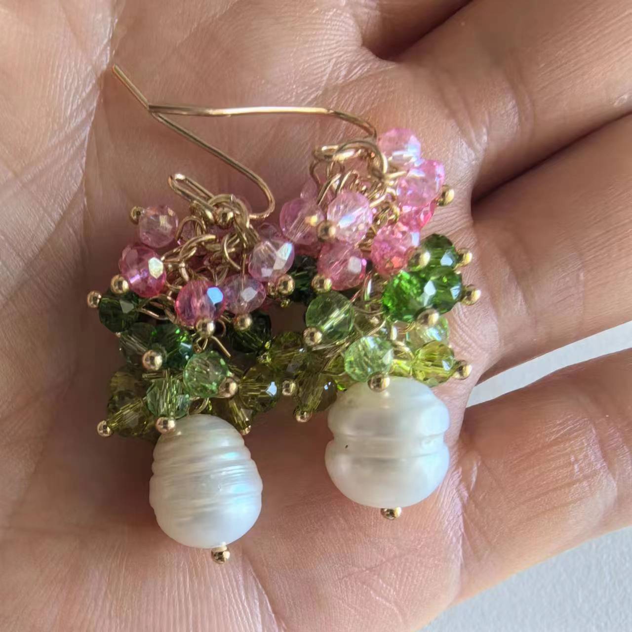 Изысканные серьги-кластеры в винтажном стиле с пресноводными жемчугами и турмалином - идеально подходят как для повседневной носки, так и для особых случаев.