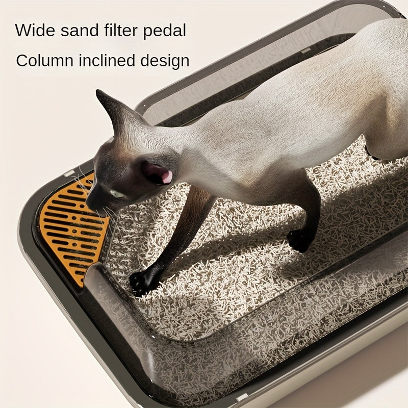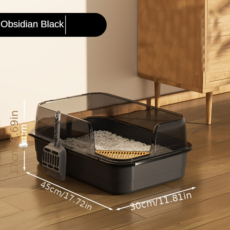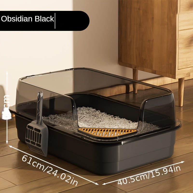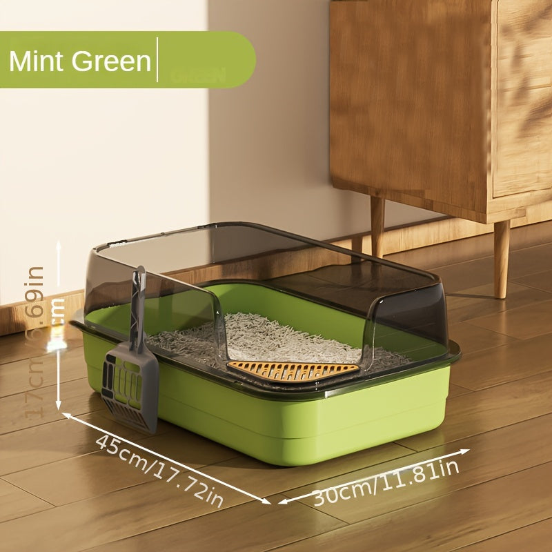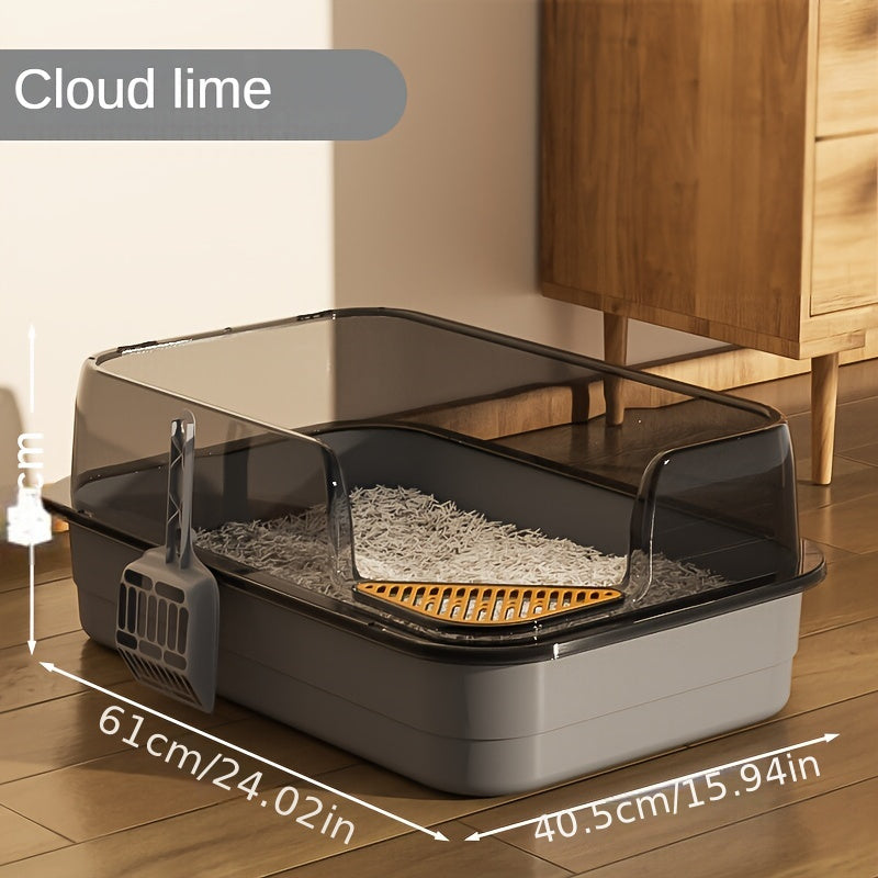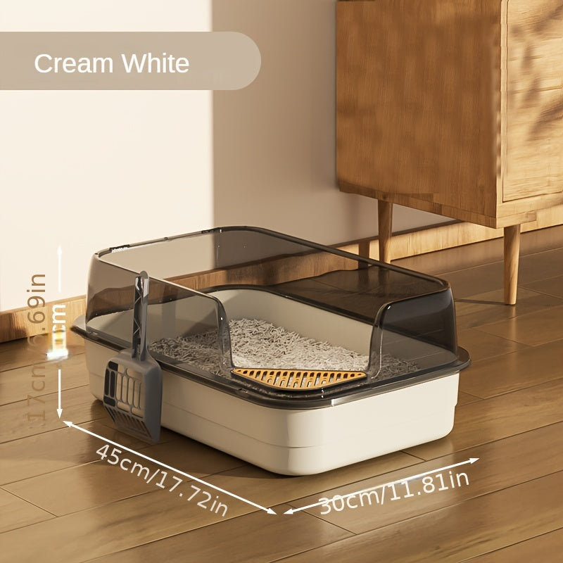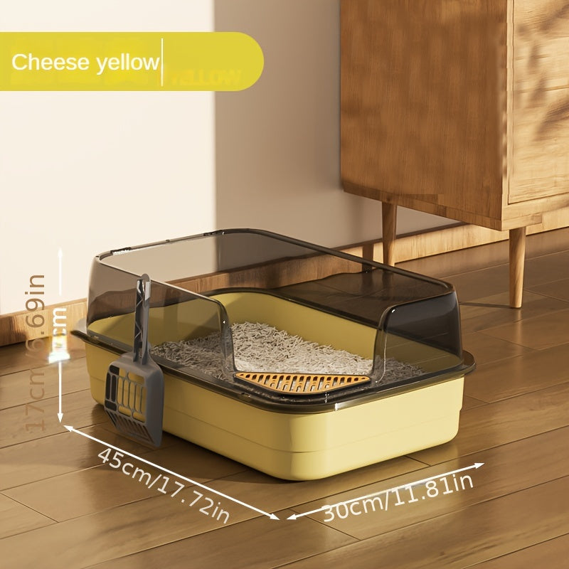 Экстра большой полузакрытый туалет для кошек с высоким бортиком, водоотталкивающим дизайном и объемом 12,1 л. Изготовлен из прочного пластика/полипропилена для легкой очистки, подходит для нескольких кошек.