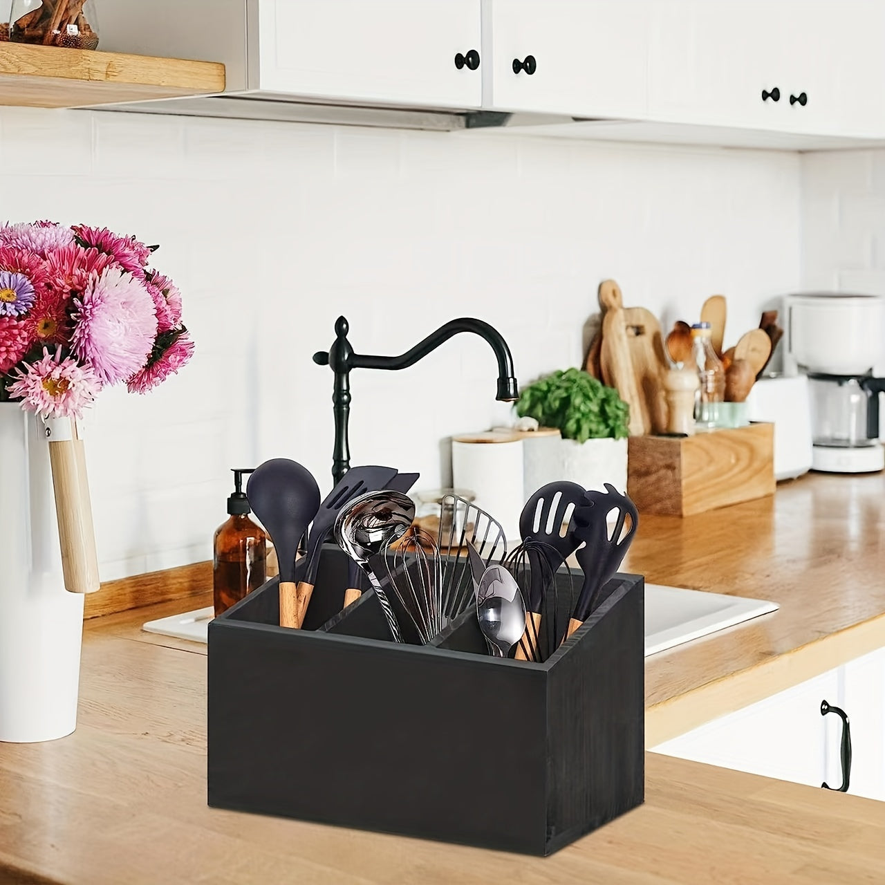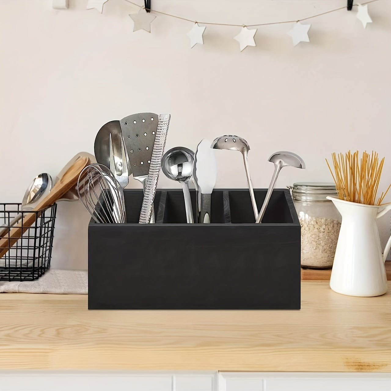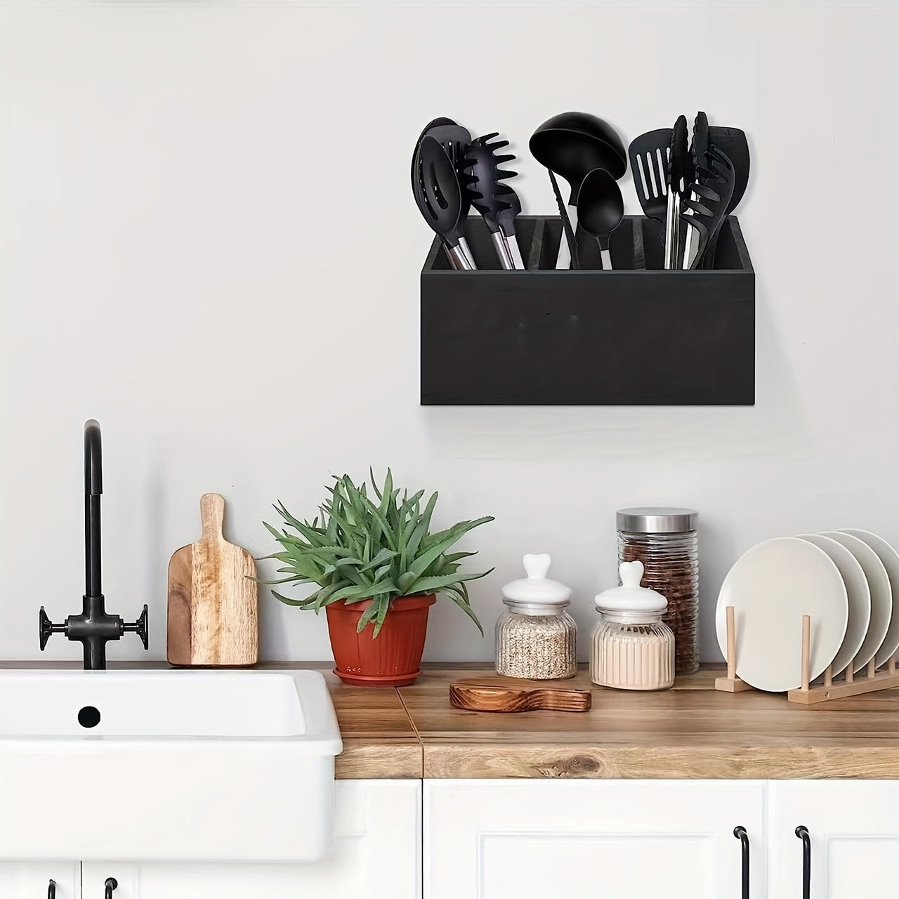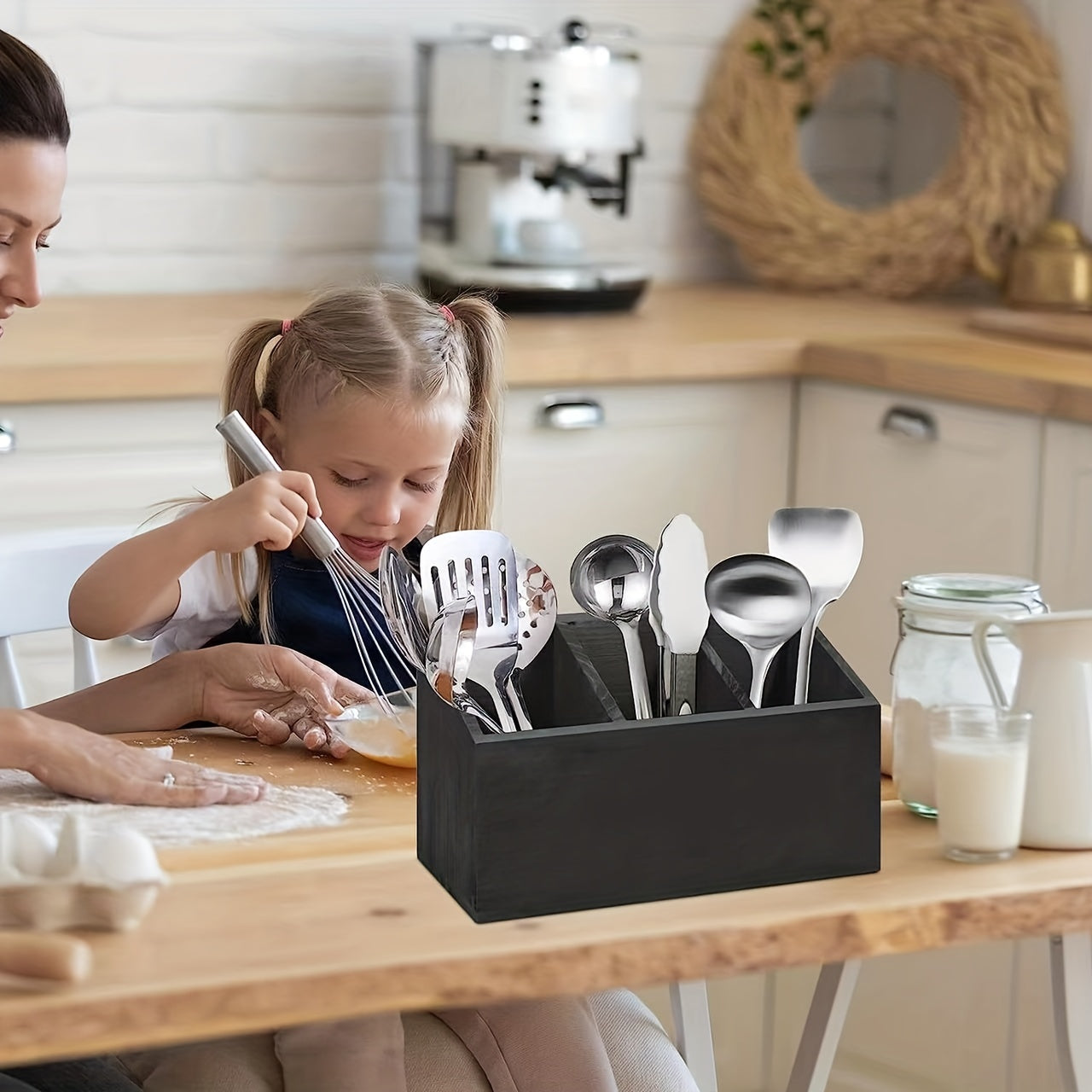 Деревянная подставка для посуды в фермерском стиле с 2 уровнями коробок для посуды - Идеально подходит для организации и хранения кухонных предметов - Окрашена в черный цвет