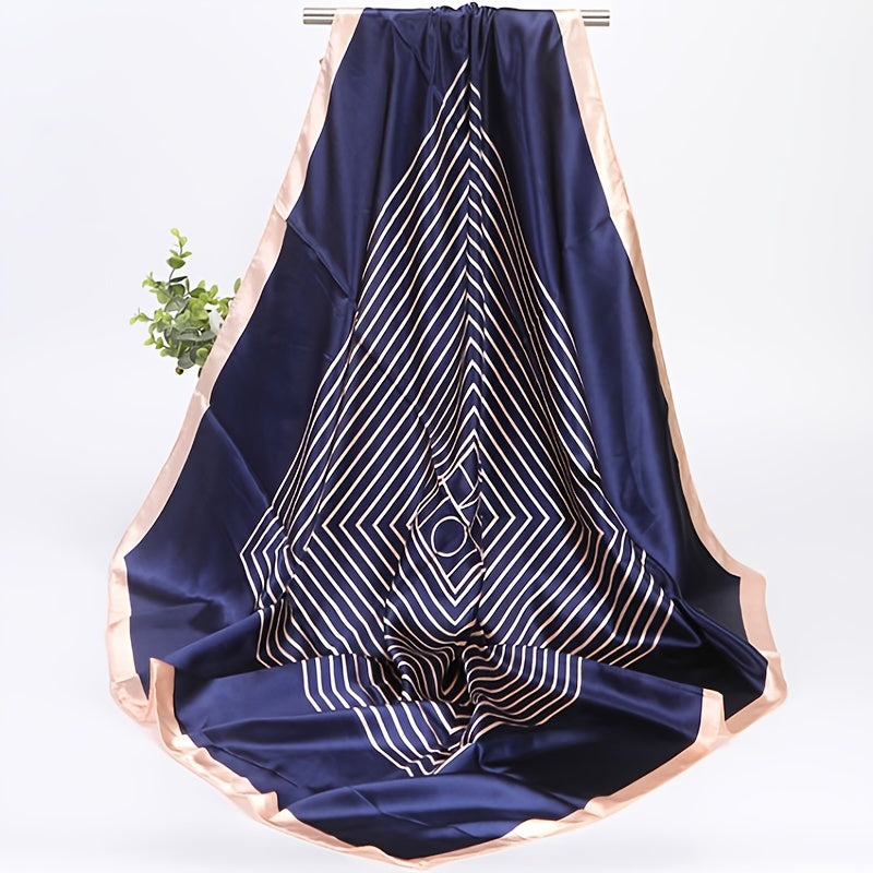 Модный винтажный шарф с полосатым принтом, имитация шелка, квадратный