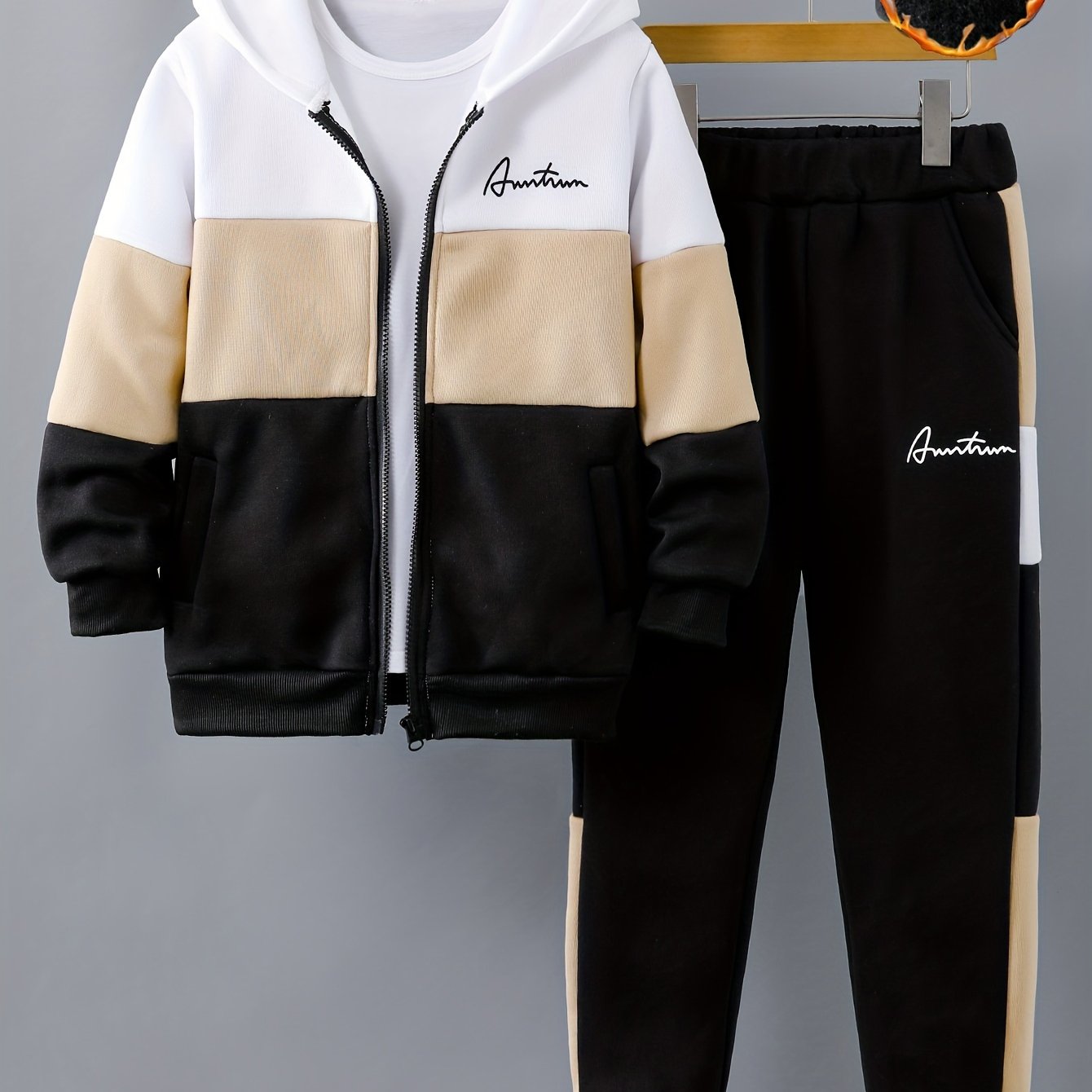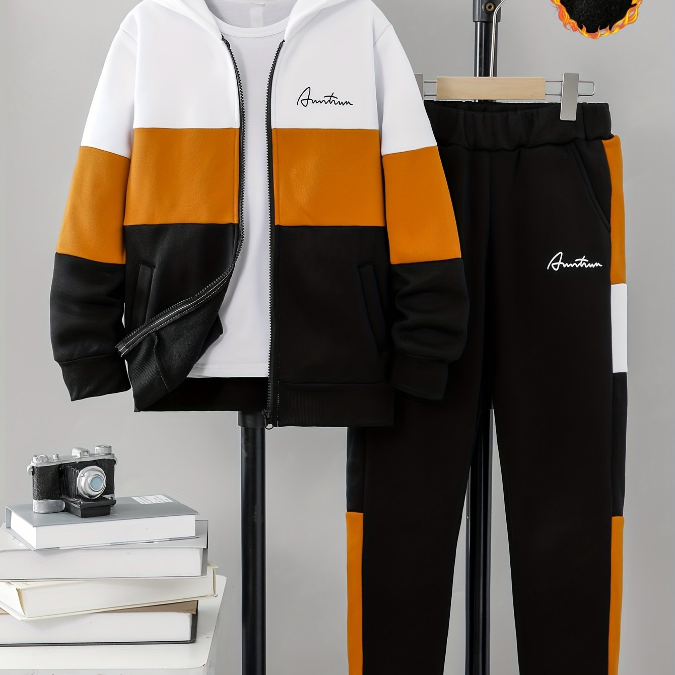 Детский флисовый комплект с топом на молнии с буквенным принтом и теплой повседневной верхней одеждой для осени и зимы