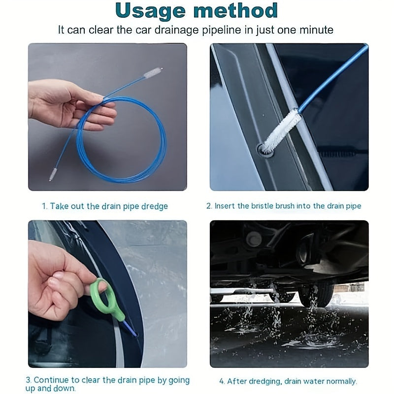 Гибкий инструмент для очистки дренажных отверстий авто с электросолнцезащитным козырьком и лобовым стеклом, длинная щетка