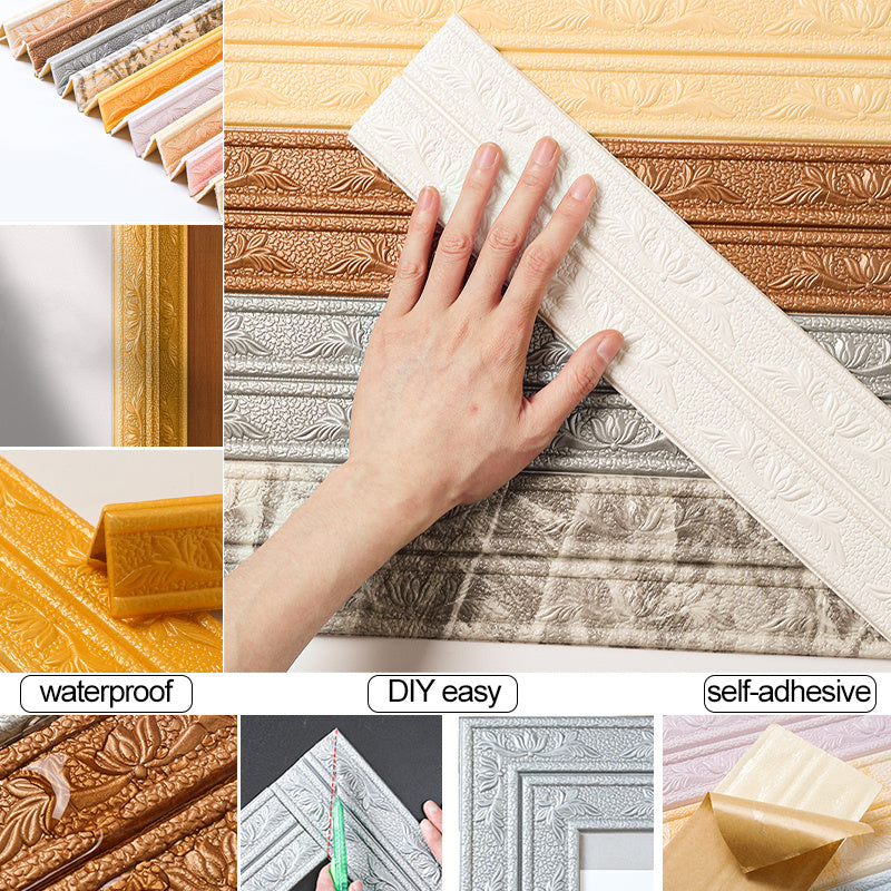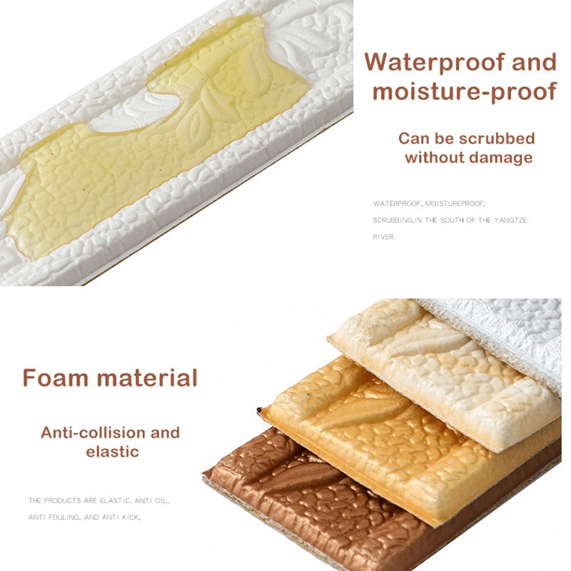 Флоральный 3D пенопластовый защитник стен с рельефным дизайном - самоклеящийся, водонепроницаемый, легкий в установке и очистке, прочный XPE пенопласт для домашнего декора, плинтусов и краев стен.