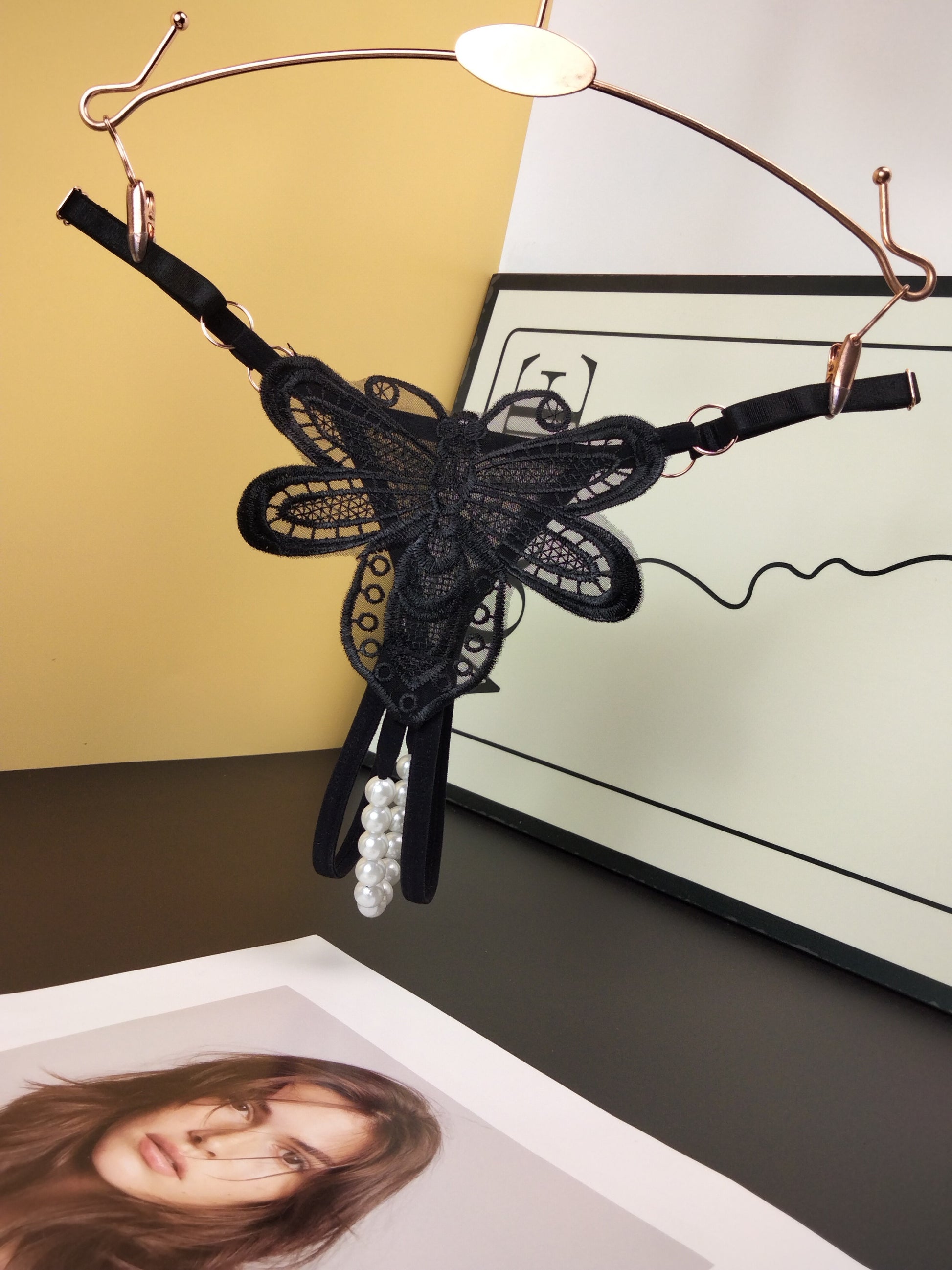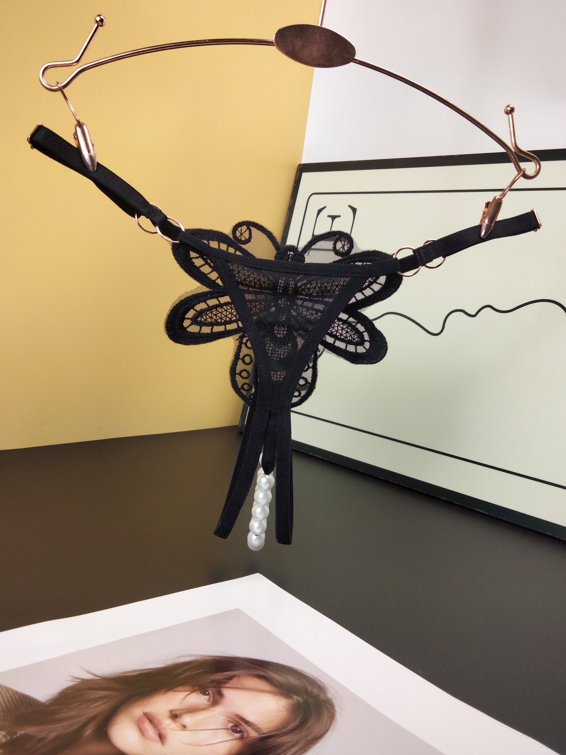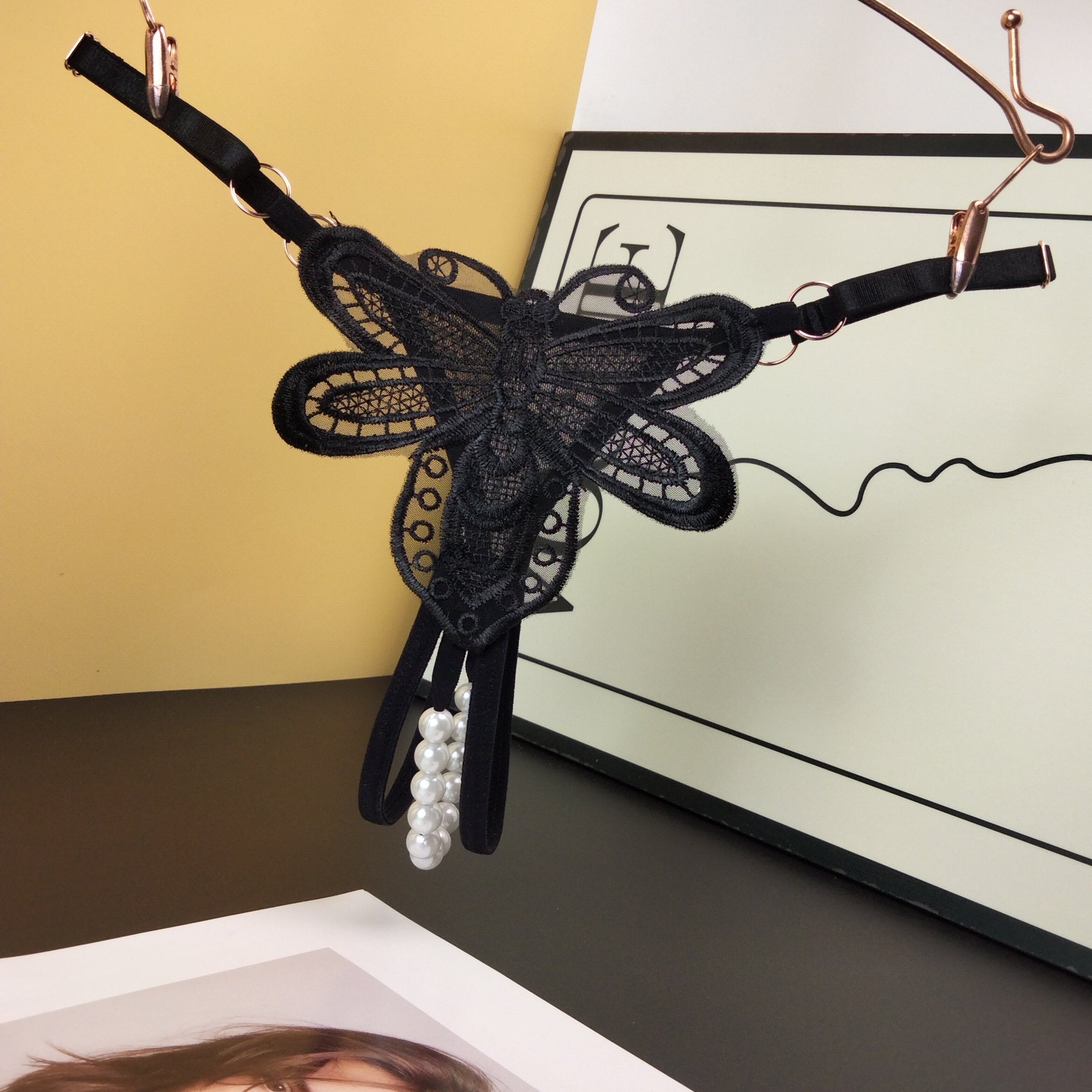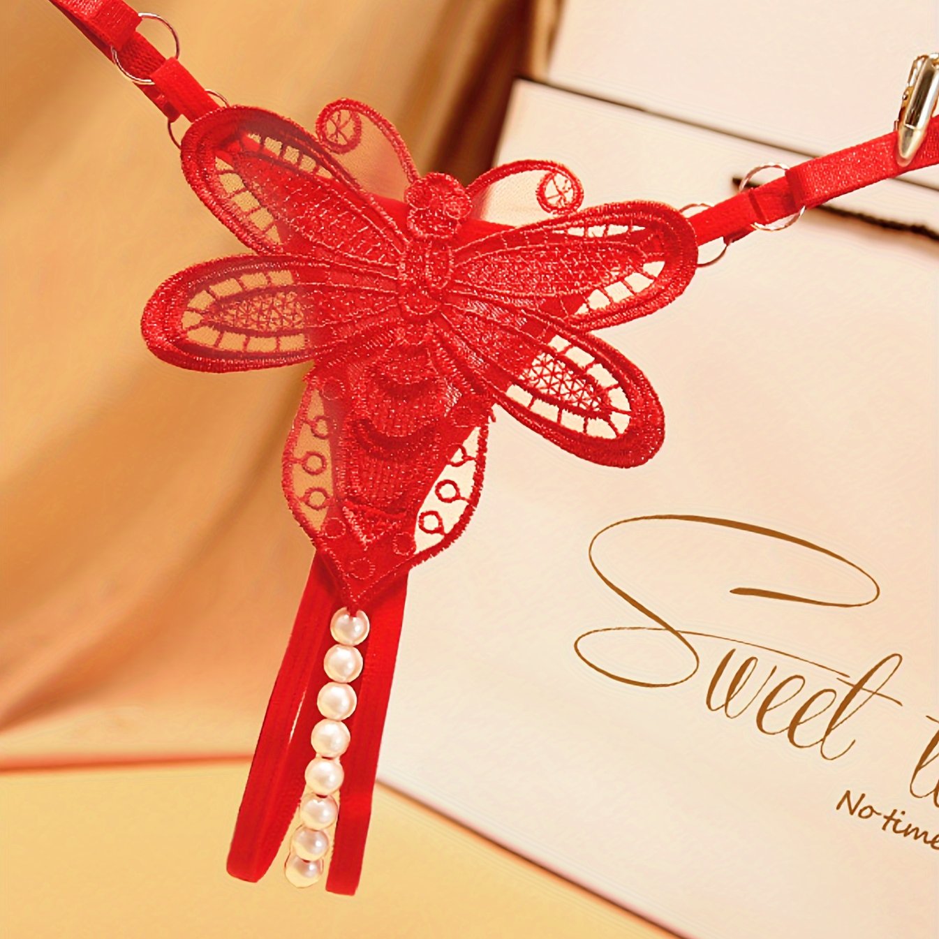 Трусики-стринги с цветочной аппликацией и декором из искусственных жемчужин, открытым шагом и низкой талией - Сексуальное белье для женщин.