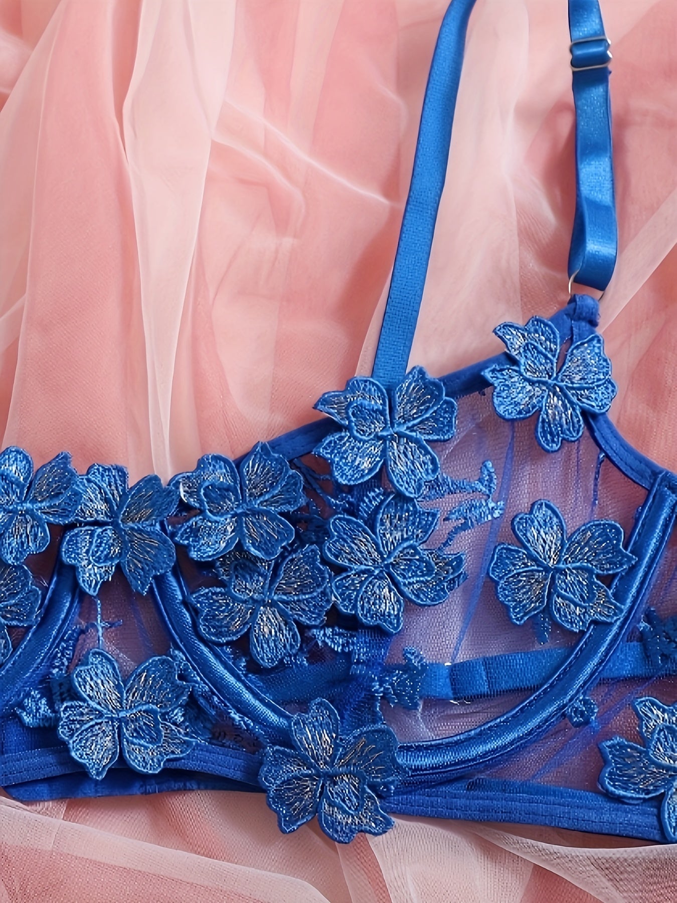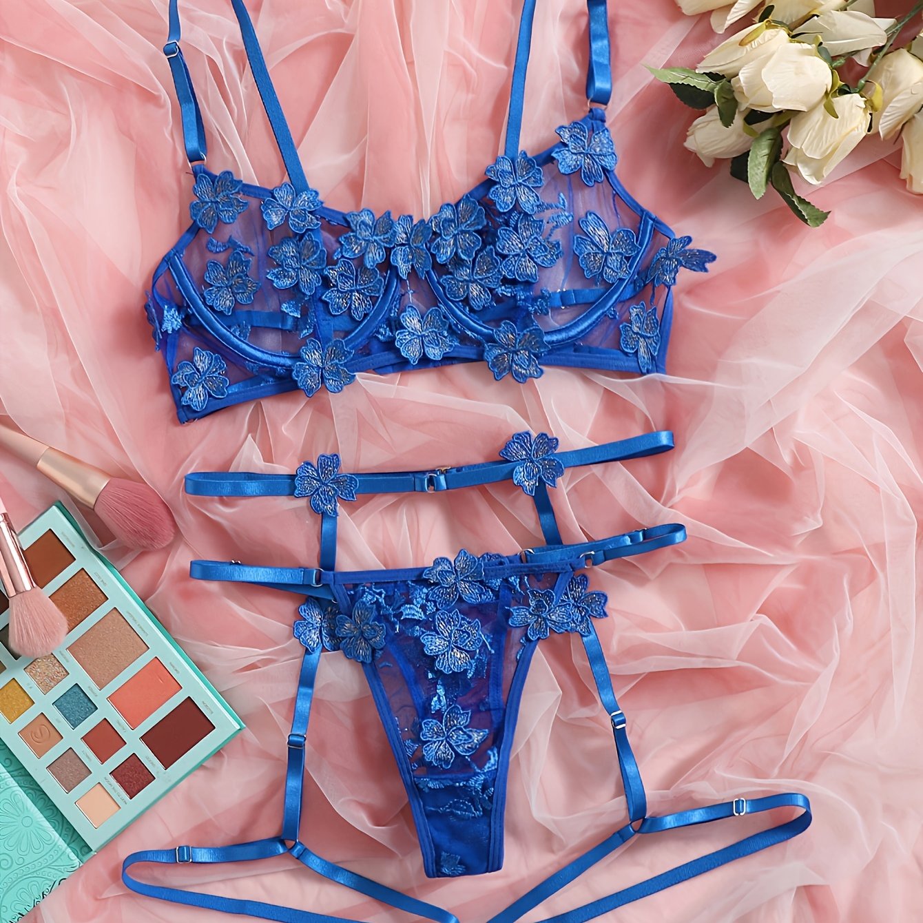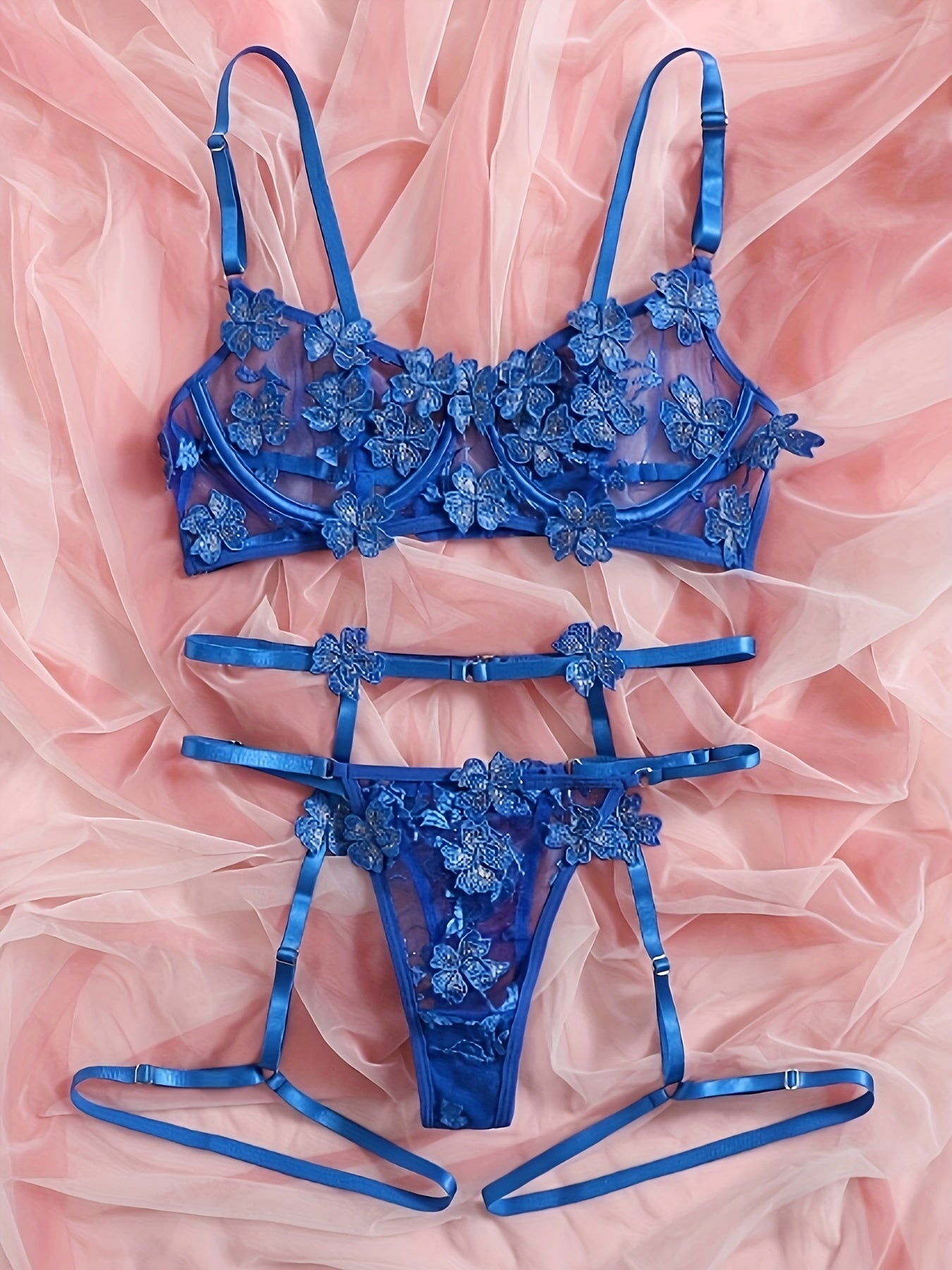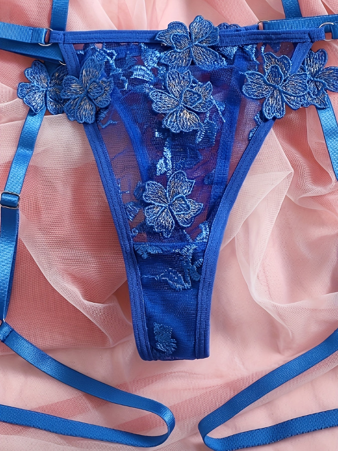 Флоральный вышитый кружевной комплект нижнего белья с косточками, бюстгальтером с вырезами, стрингами и подвязками. Сексуальный и полупрозрачный для женщин.