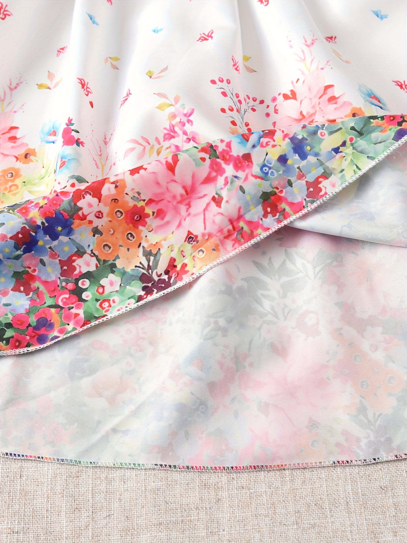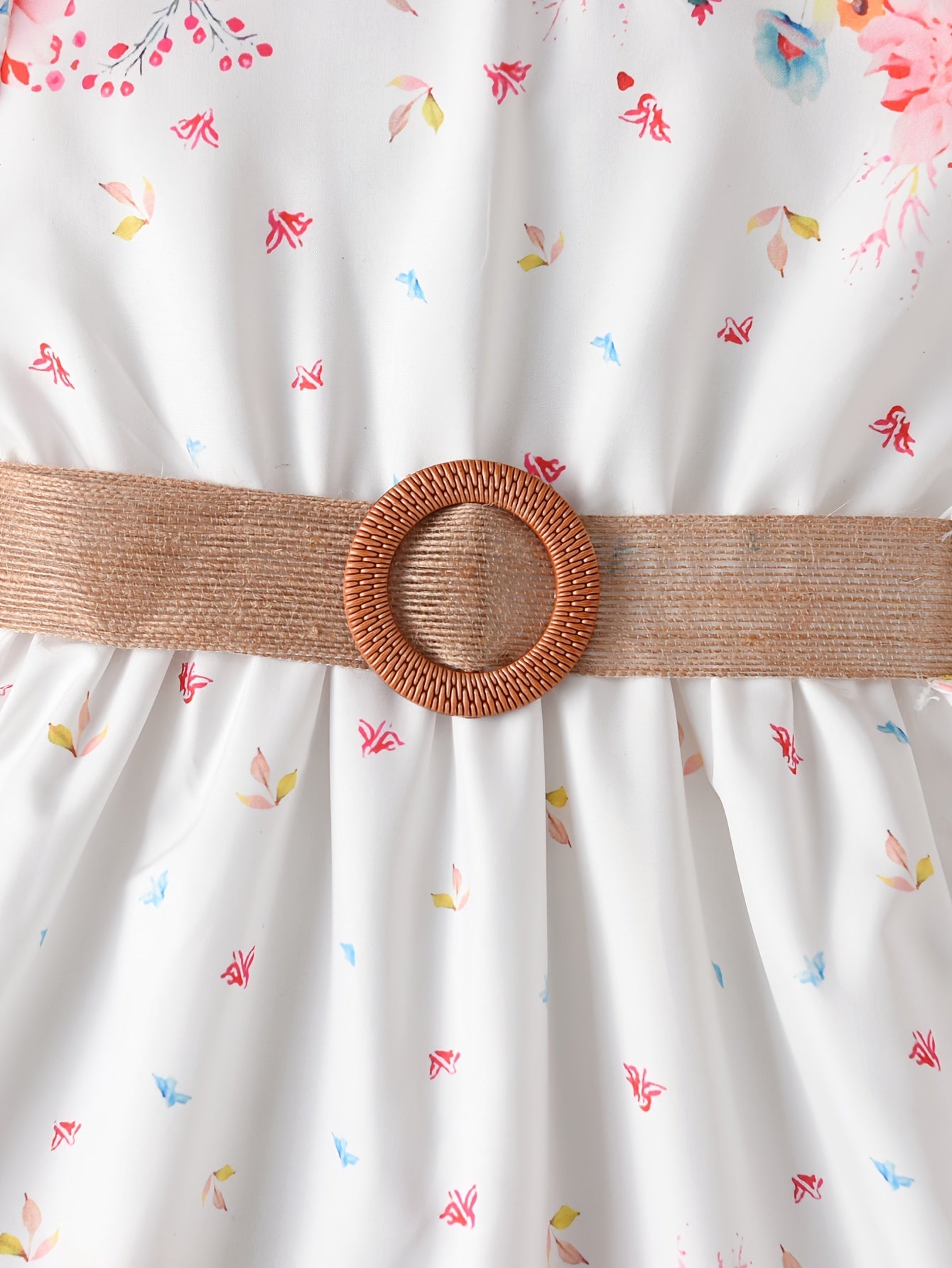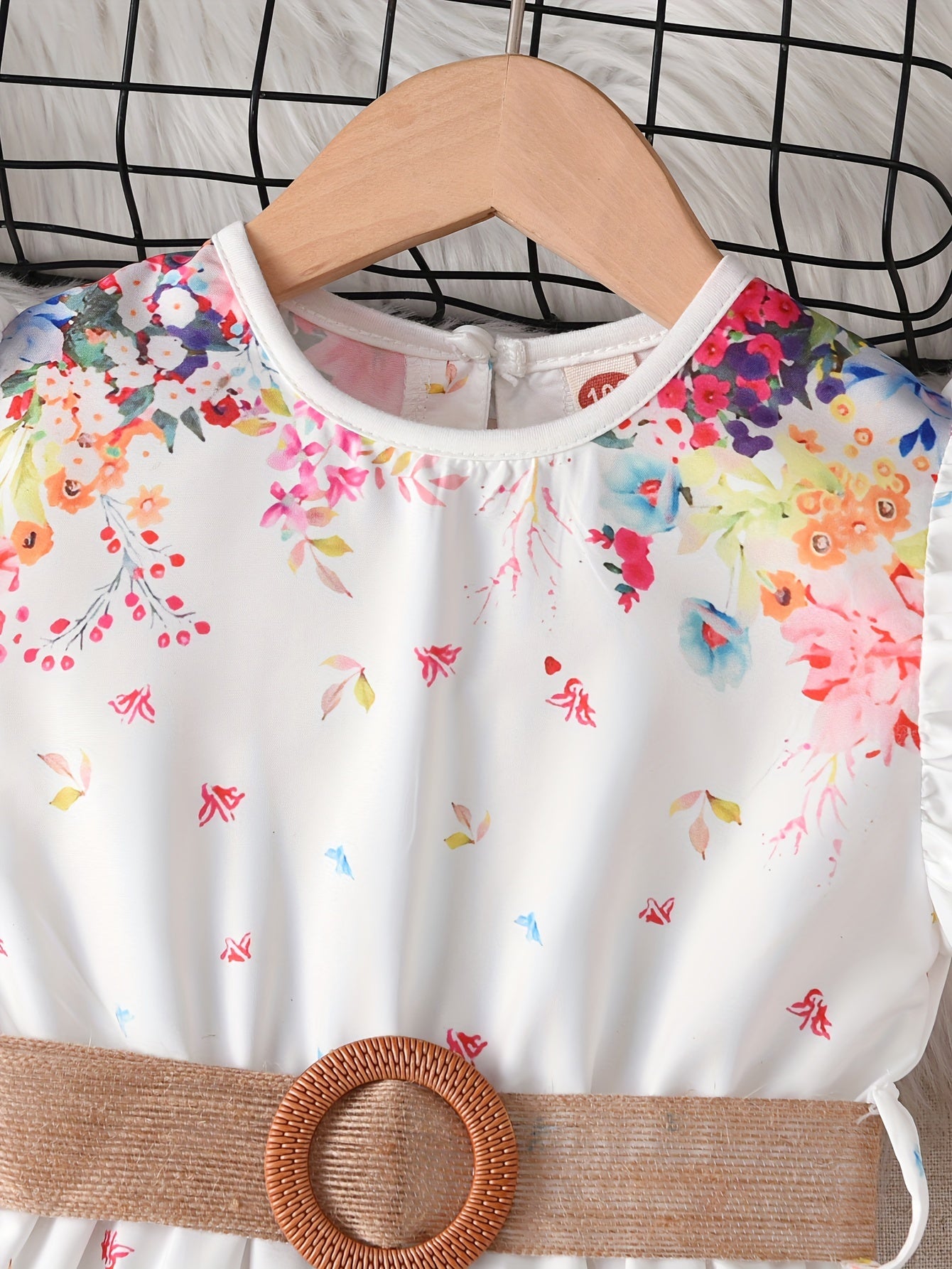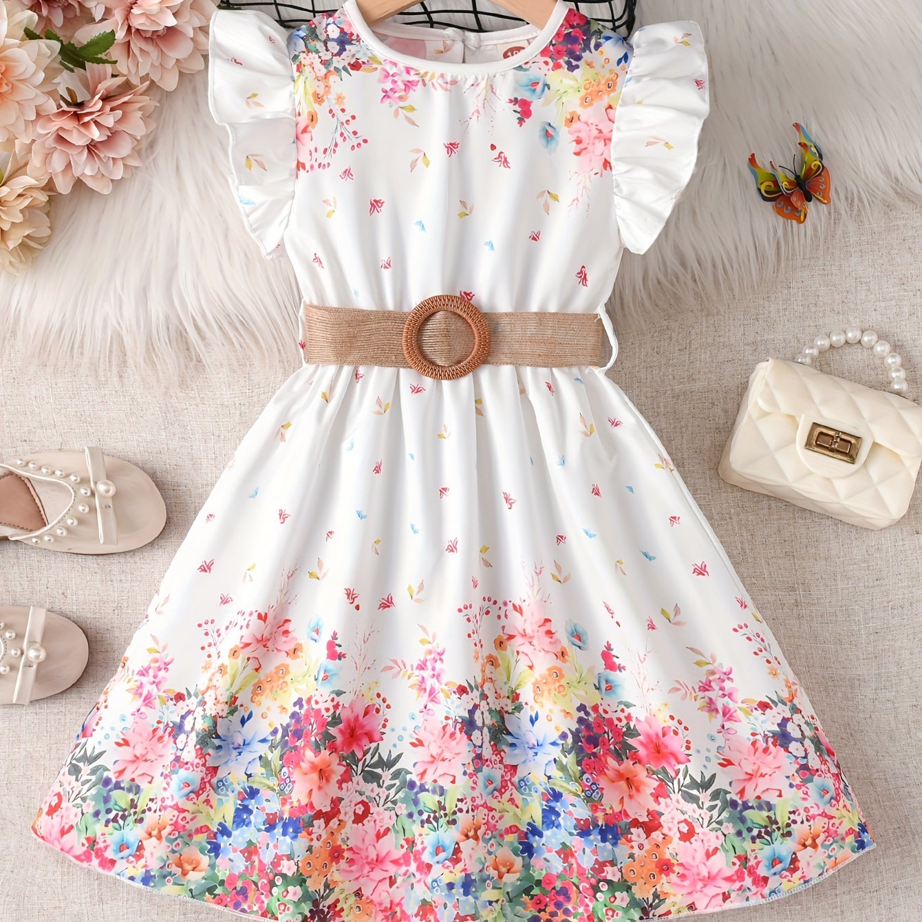 Девочки платье-принцесса с цветочным принтом, рукавами-флапами и поясом для лета