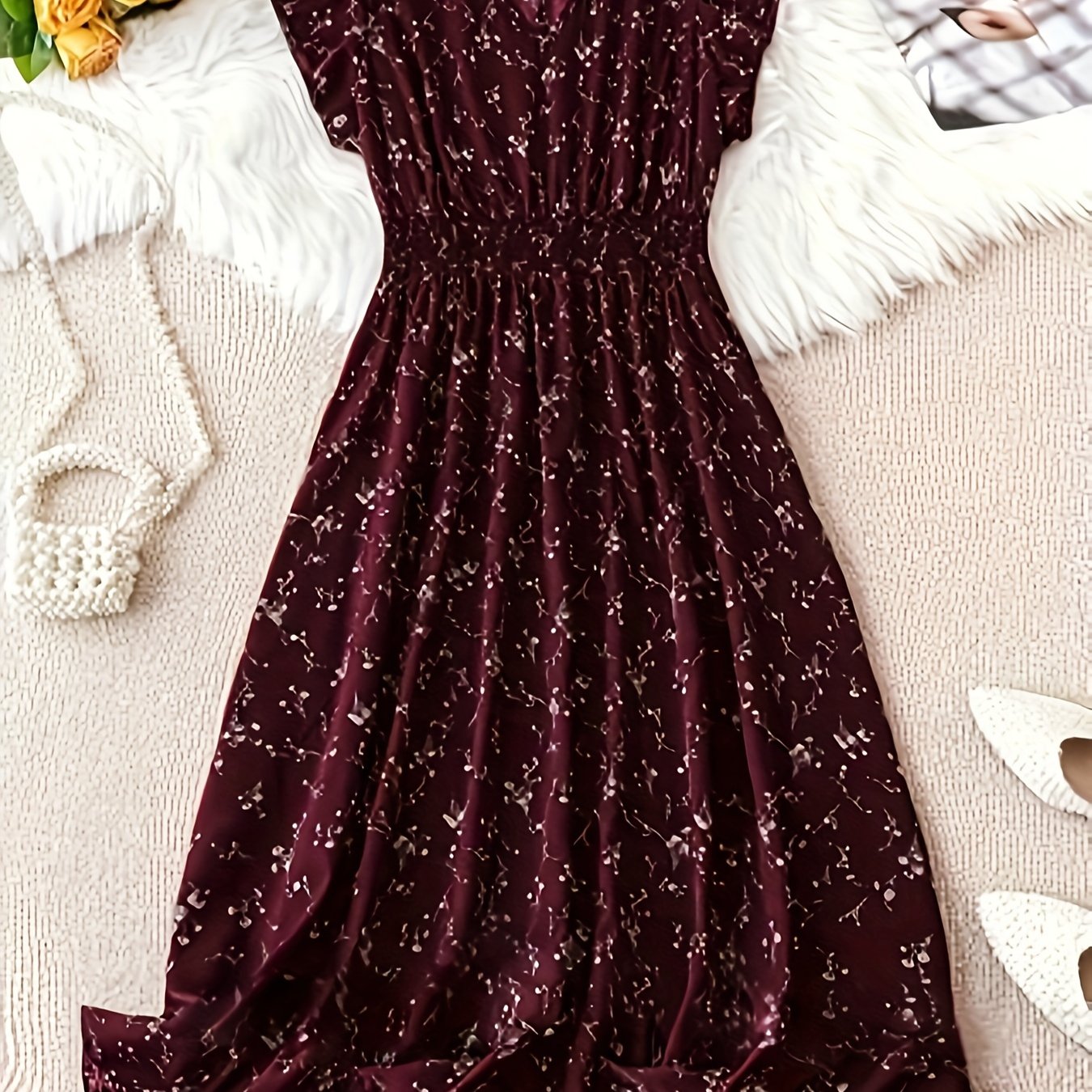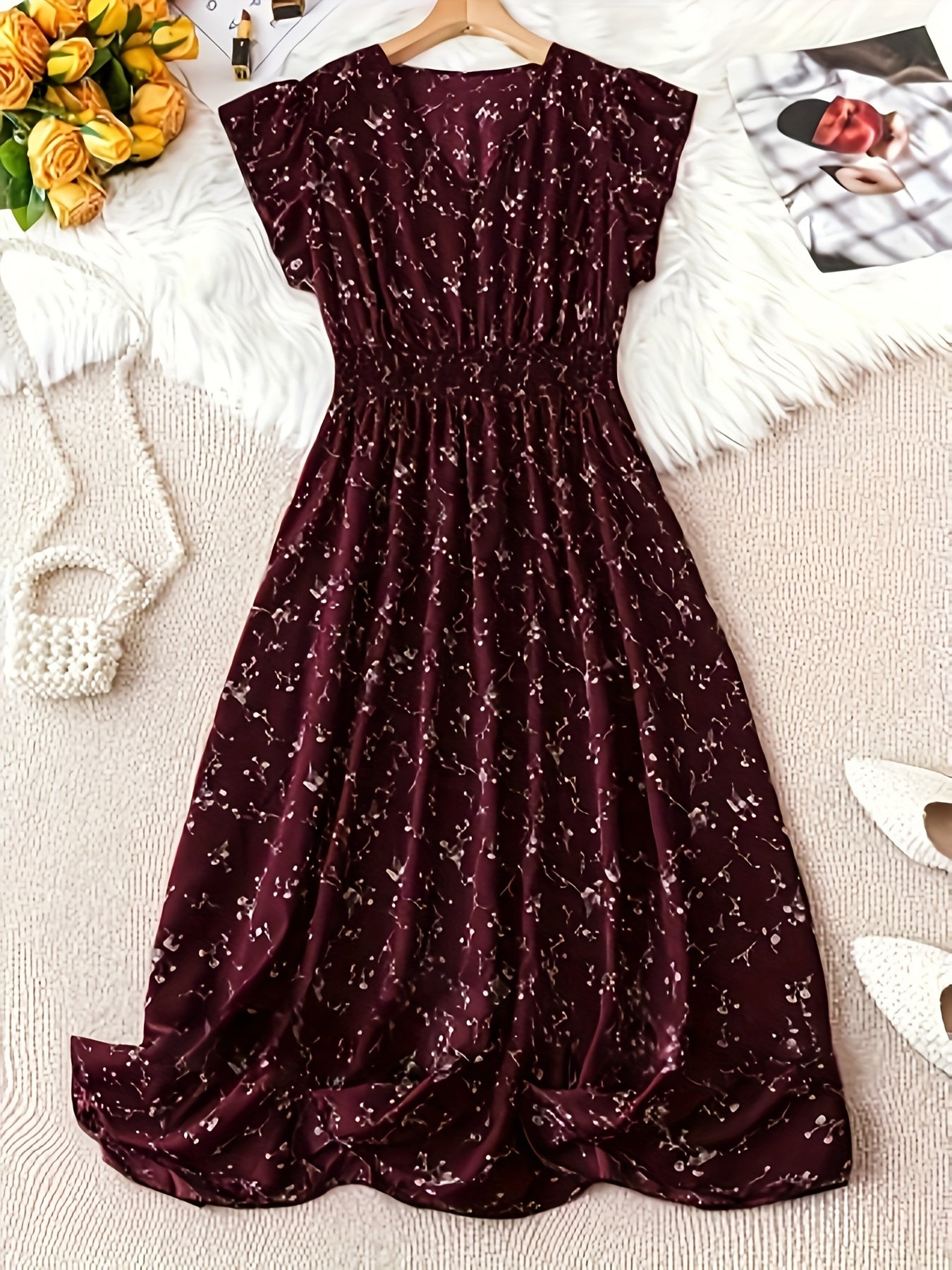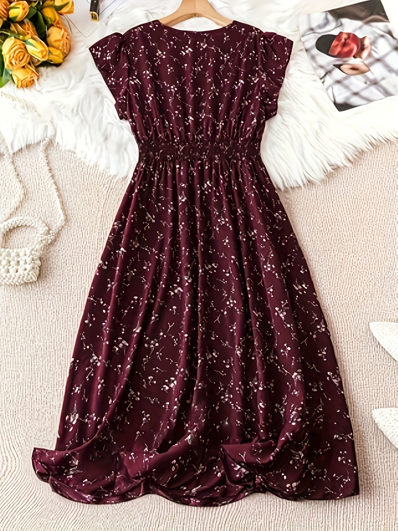Платье большого размера с цветочным принтом, бабочковыми рукавами и V-образным вырезом