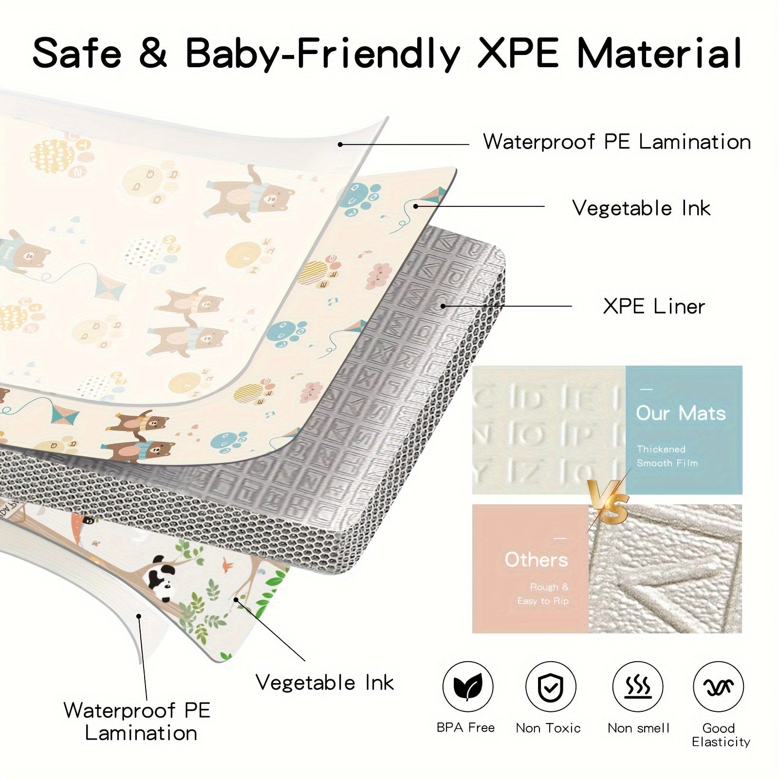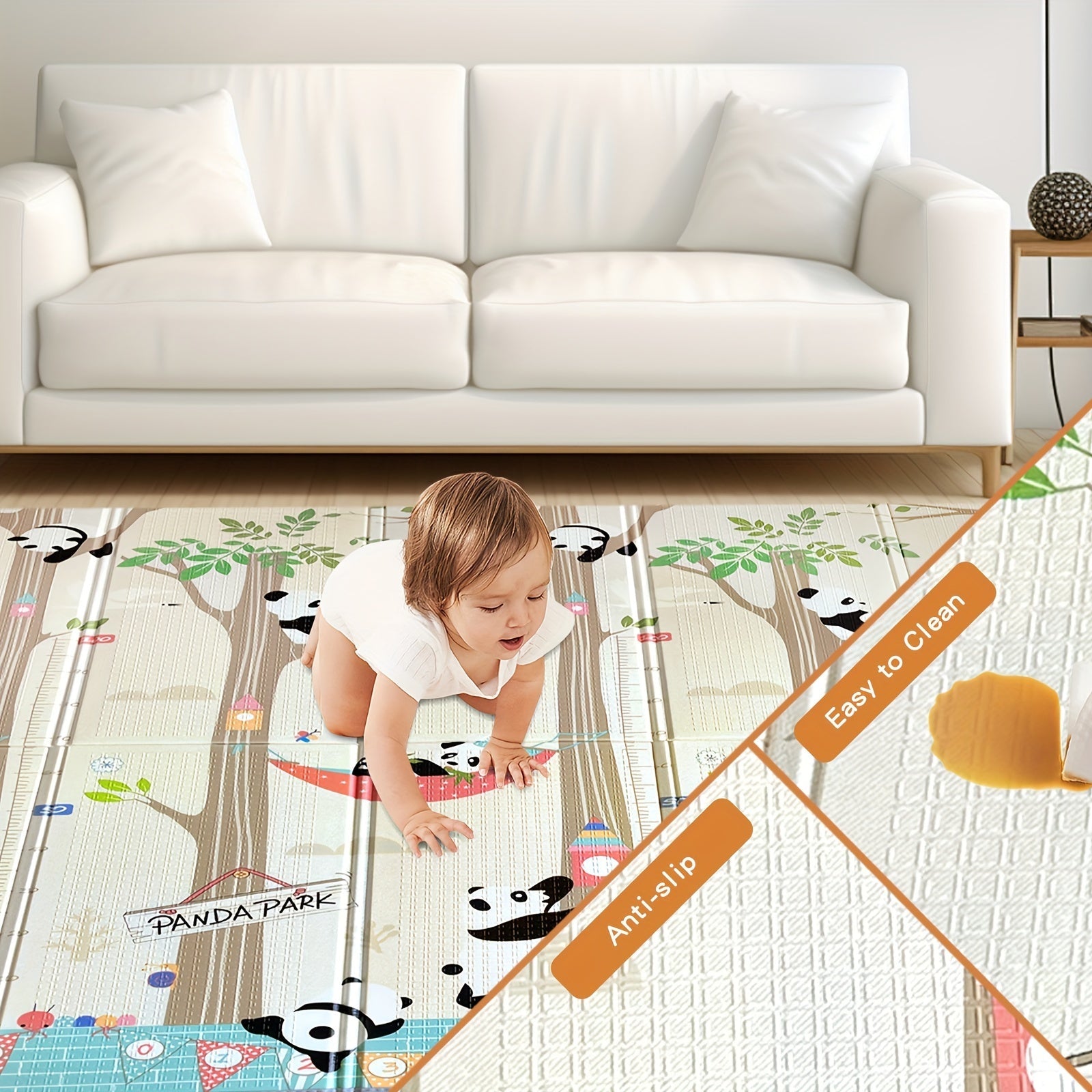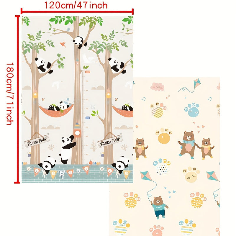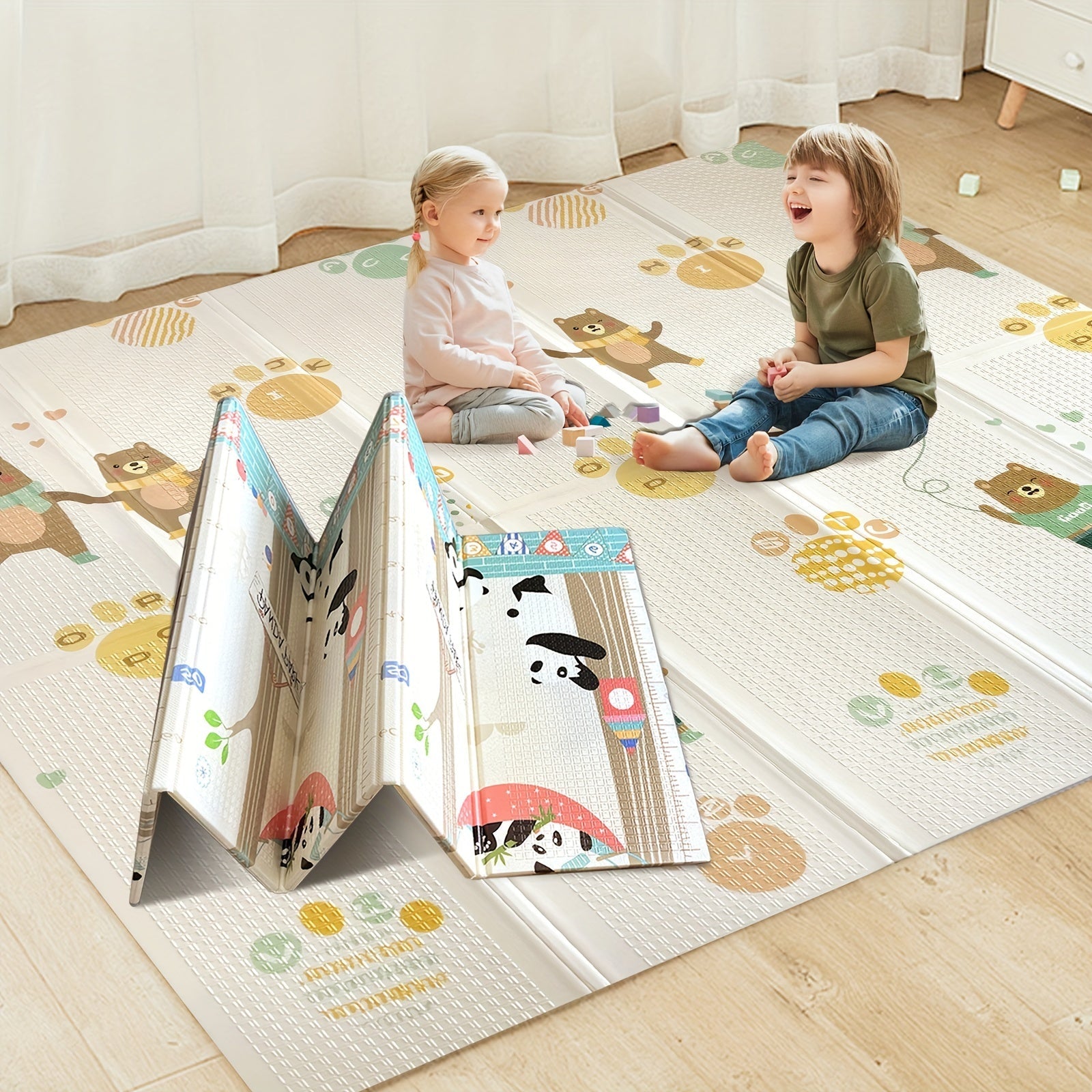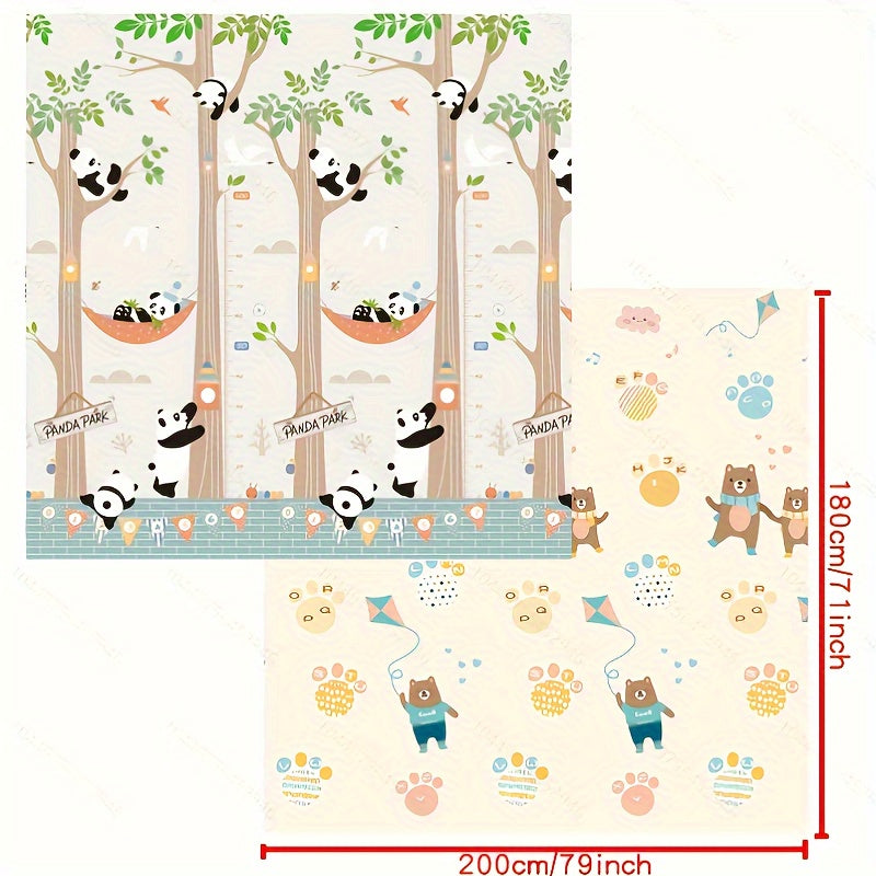 Складной игровой коврик с дизайном панды и медведя, изготовленный из ПЭ пены, многоцветный, поставляется в отдельной бумажной коробке, подходит для детей старше 3 лет, покрывает площадь не менее 2,16 м², самая длинная сторона составляет не менее 1,8 м.