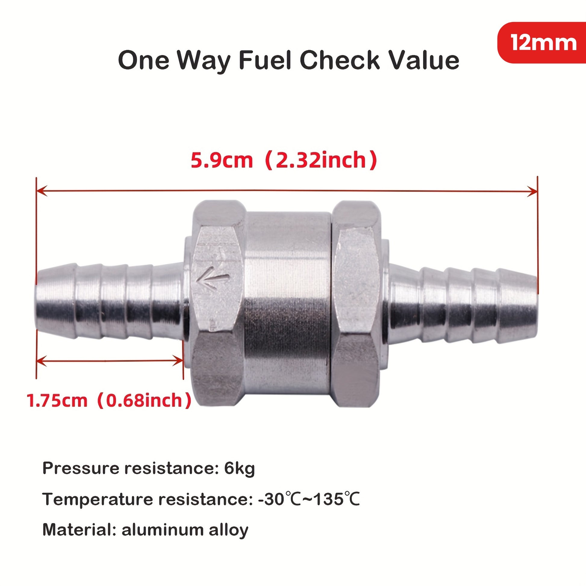Клапан проверки топлива с односторонним клапаном из алюминиевого сплава 6/8/10/12 мм для бензина, дизеля