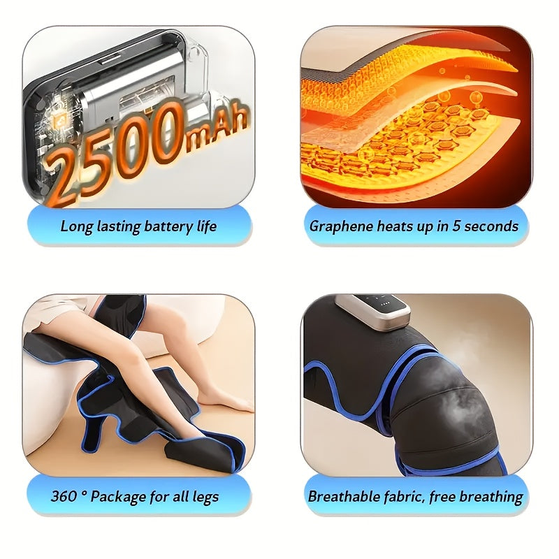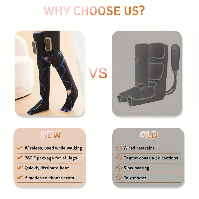 Массажер для ног с функцией нагрева, вибрацией, воздушными подушками, компрессией, беспроводным ЖК-дисплеем и пультом управления