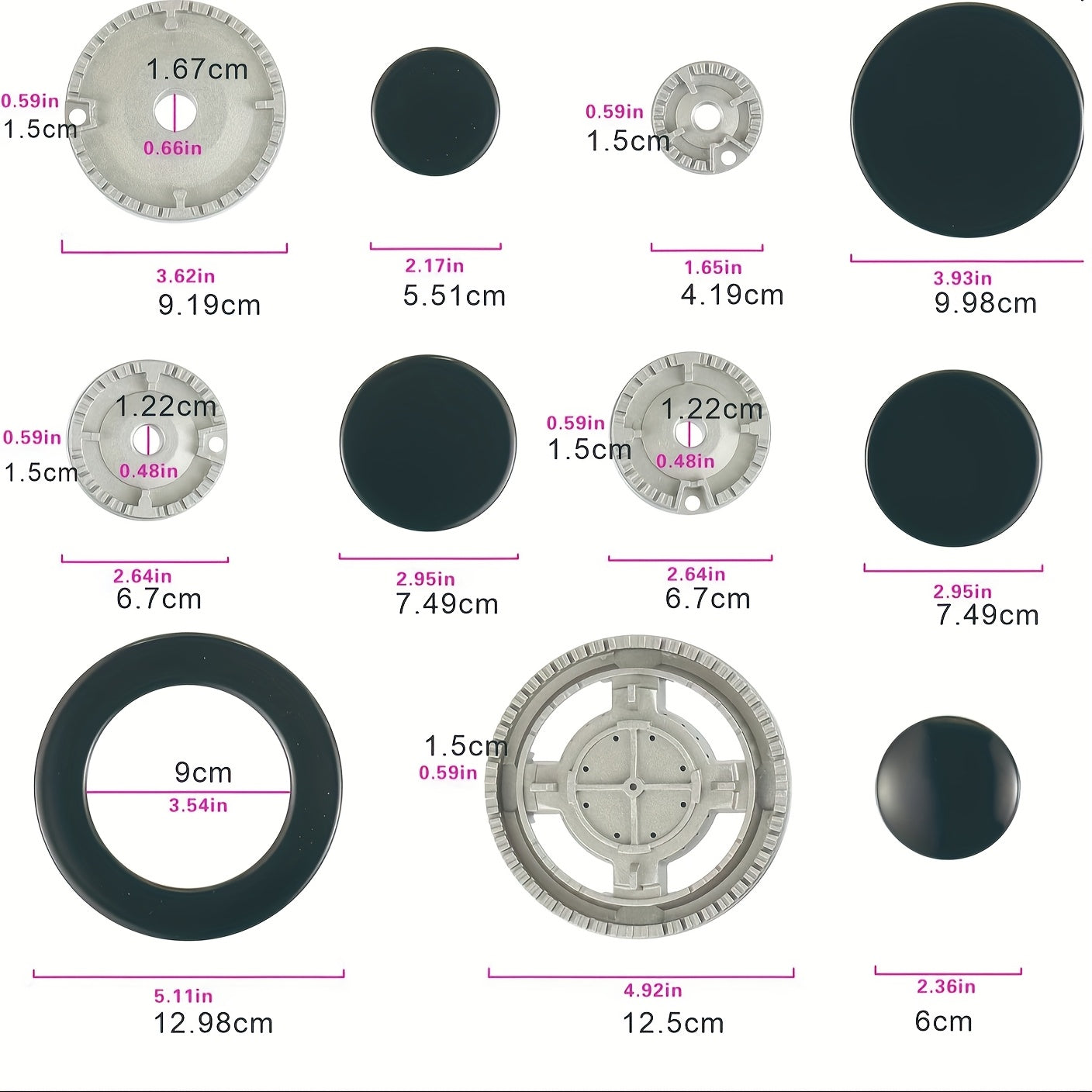 Набор диффузоров пламени для газовой плиты, 5 размеров 130/100/75/75/55 диаметр, 10 штук, чугун, алюминий