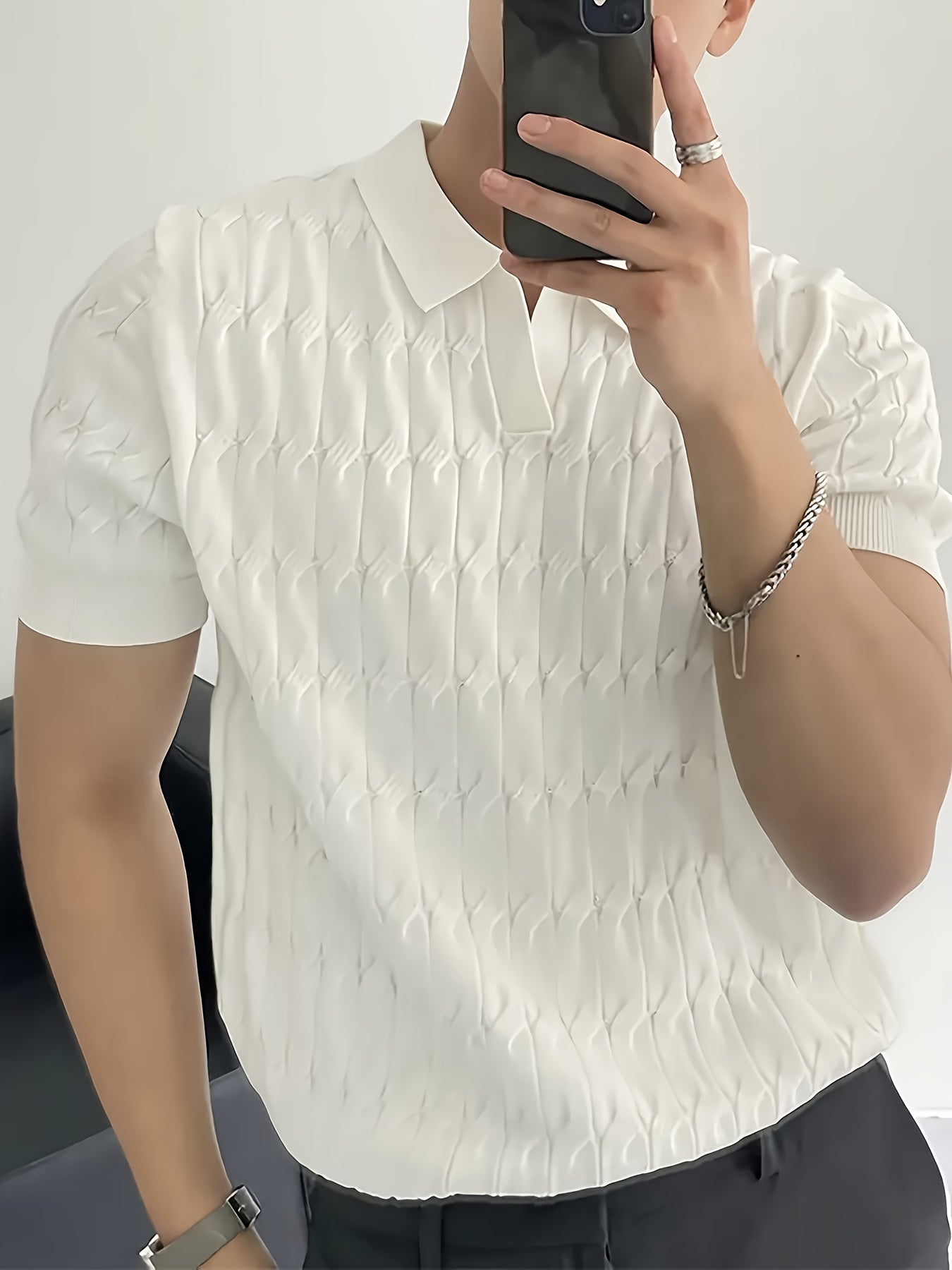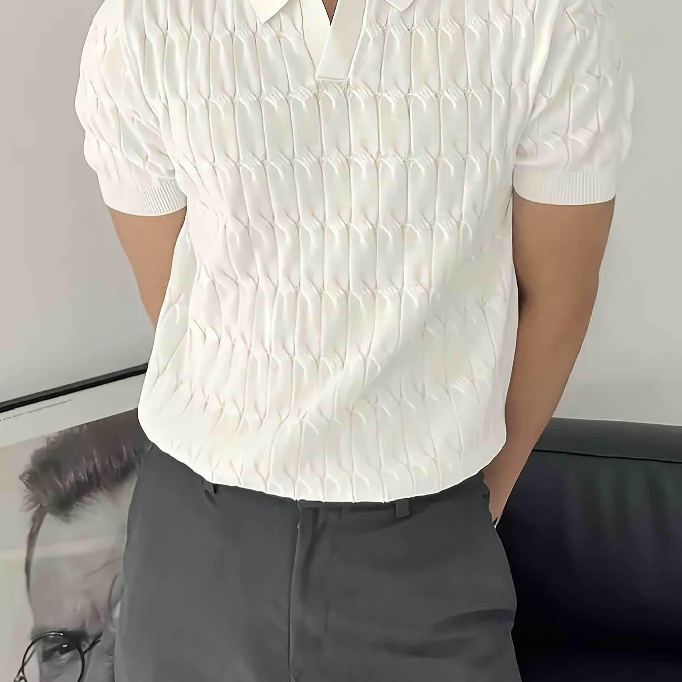 Мужской вязаный гольф-свитер с коротким рукавом, геометрический принт, весна, осень, повседневный
