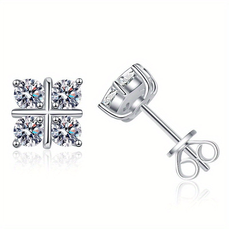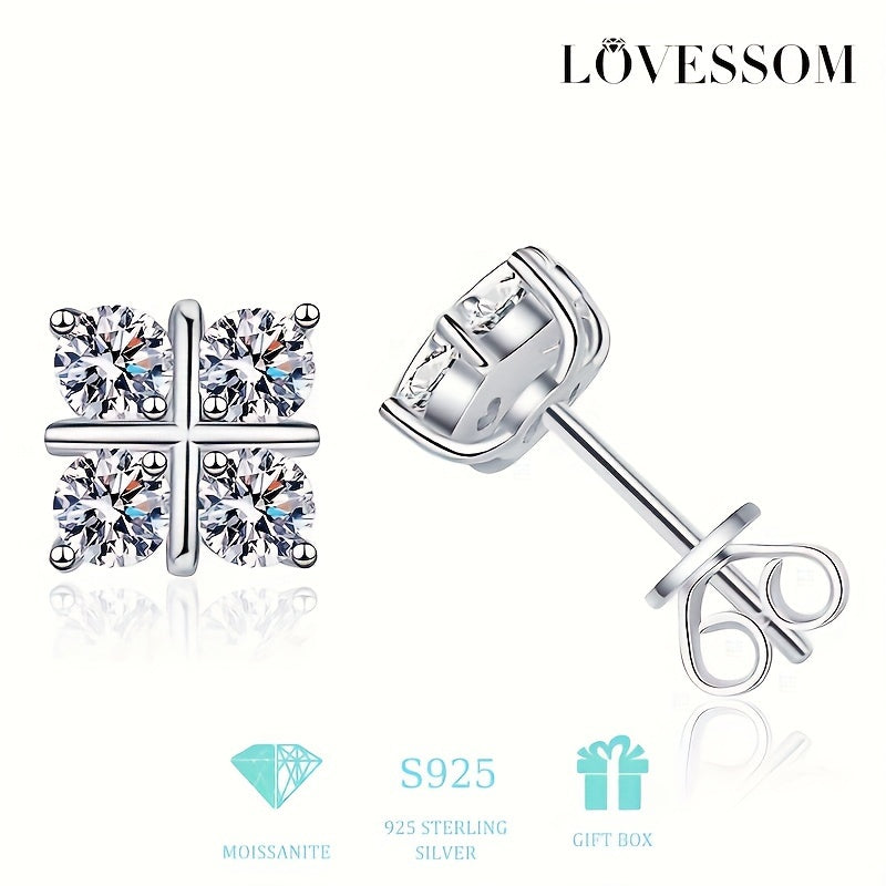 Геометрические ромбовидные серьги-гвоздики из моиссанита в серебре 925 пробы, идеально подходящие для мужчин, женщин или пар. Идеально для подарка на праздник, день рождения, юбилей или День матери.