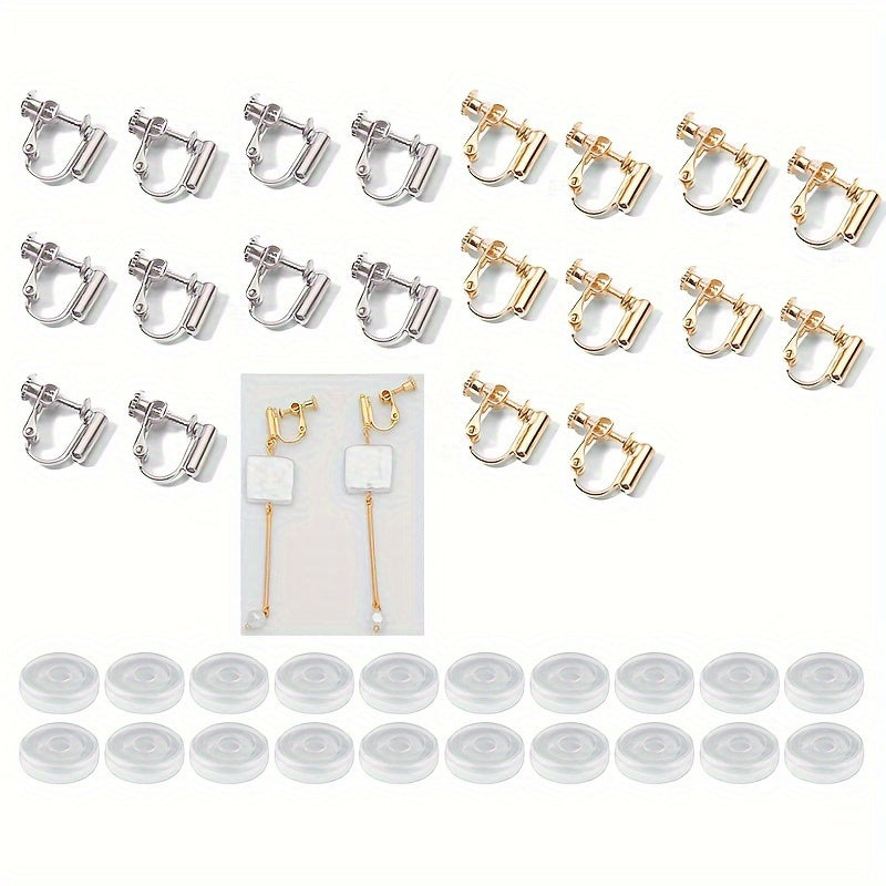 20 пар украшений для ушей с зажимами, без прокола, против боли, подушки, белое золото