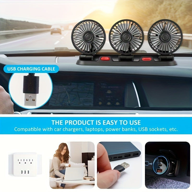 3-Head USB автомобильный вентилятор 5V портативный охладитель для транспортных средств из пластика