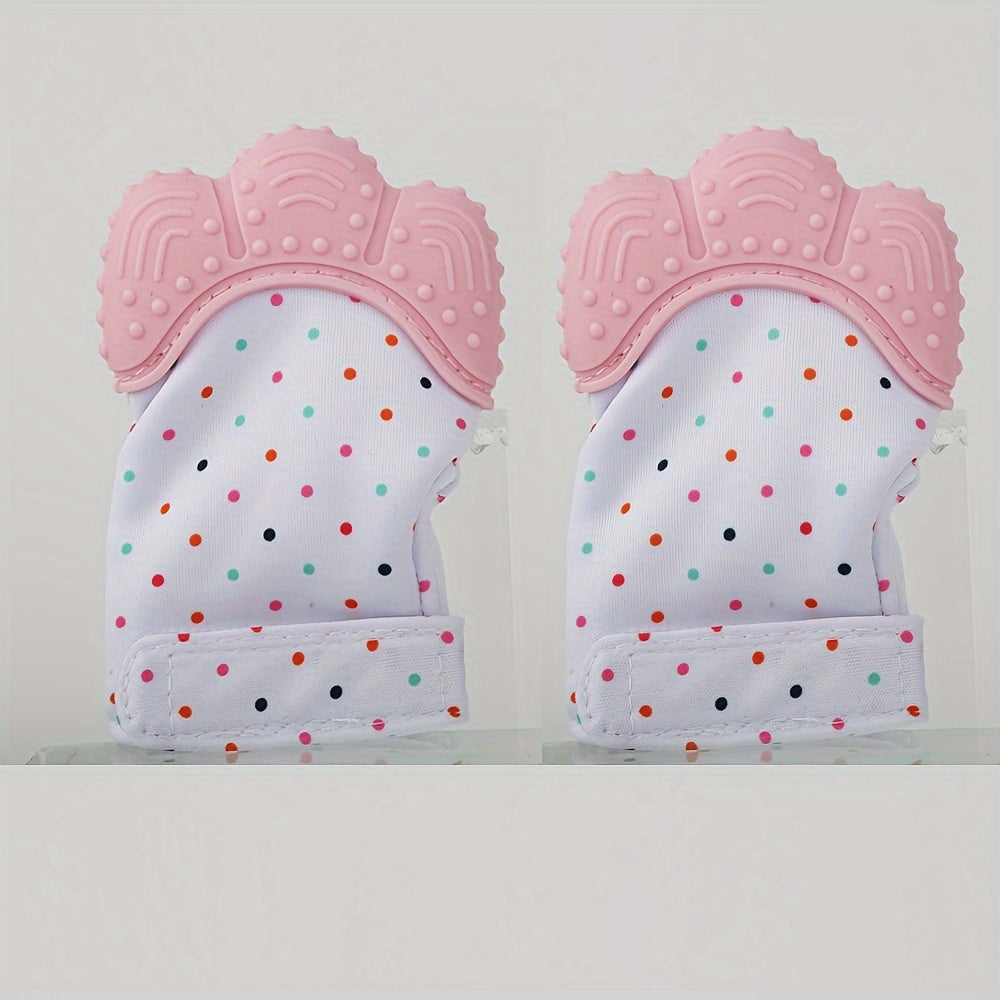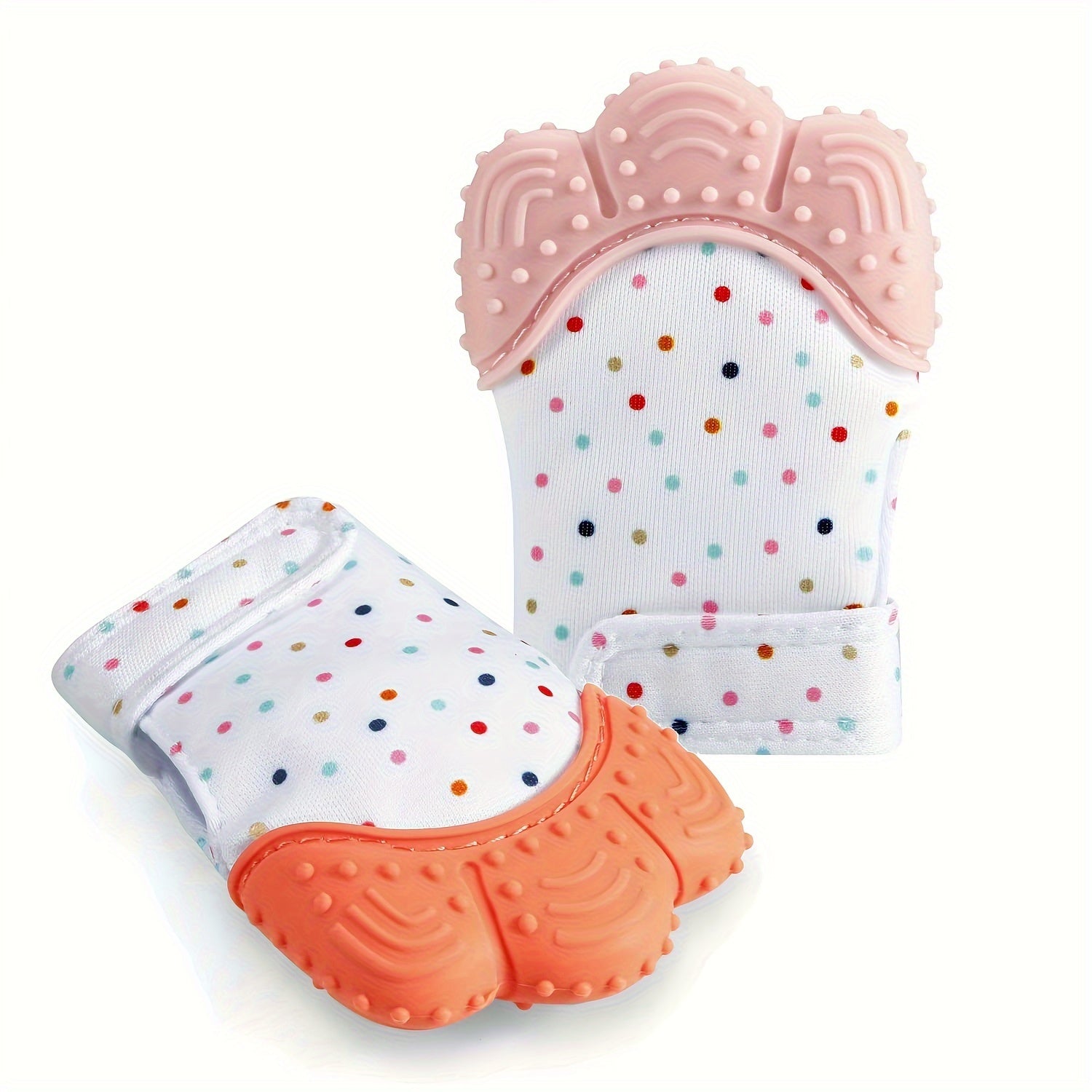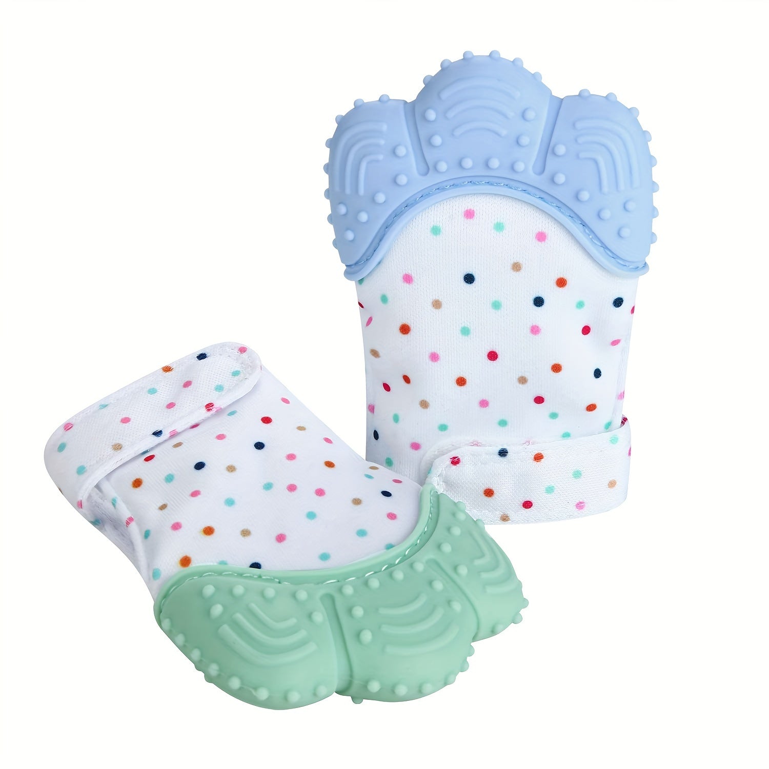 Получите набор из 2 прорезывательных перчаток с точечным узором - мягкие силиконовые митенки для прорезывания зубов у младенцев, защитные и устойчивые к царапинам, подходят для детей от 0 до 12 месяцев, идеальный подарок на детский душ.