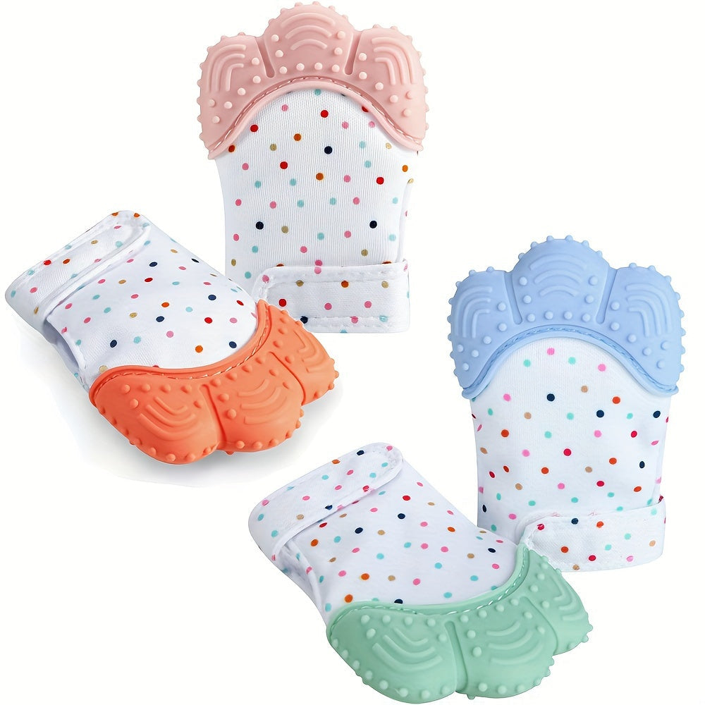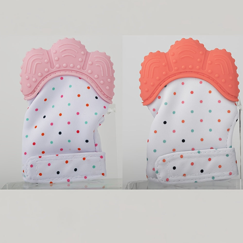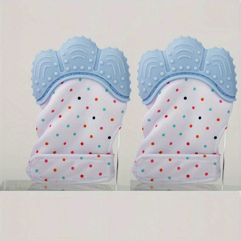 Получите набор из 2 прорезывательных перчаток с точечным узором - мягкие силиконовые митенки для прорезывания зубов у младенцев, защитные и устойчивые к царапинам, подходят для детей от 0 до 12 месяцев, идеальный подарок на детский душ.