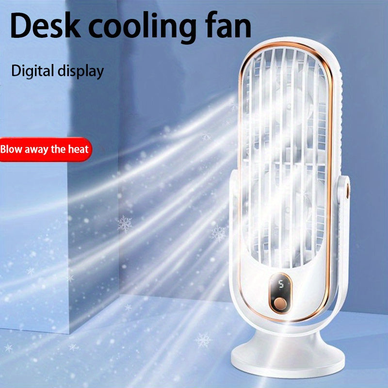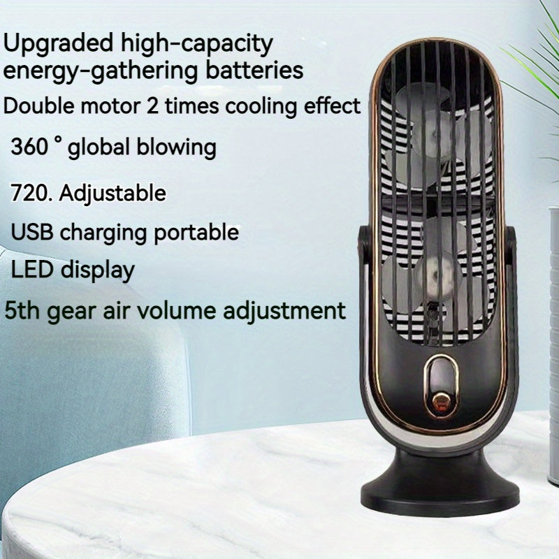 Маленький портативный вентилятор-охладитель воздуха с большой батареей, двойными моторами, 5 скоростями, 720° воздуходувкой