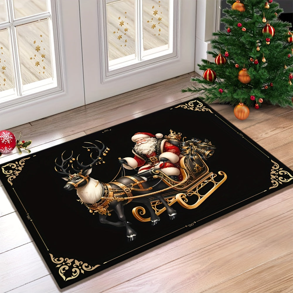 Весёлого Рождества, Добро пожаловать, коврик, не скользит, моется в машине, черный, золотой, олень, декор