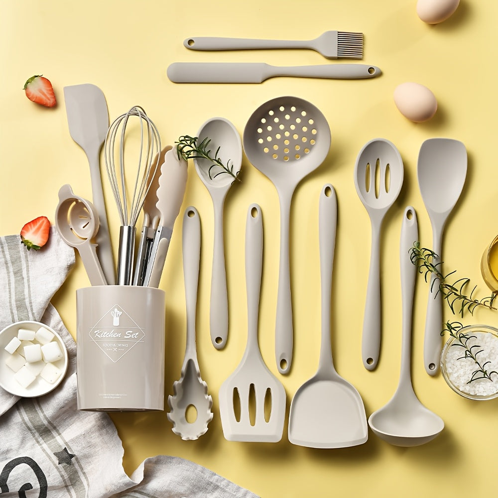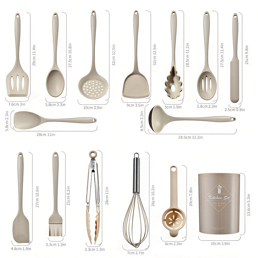Набор кухонных принадлежностей из силикона из 15 предметов с корзиной для хранения, антипригарные, термостойкие