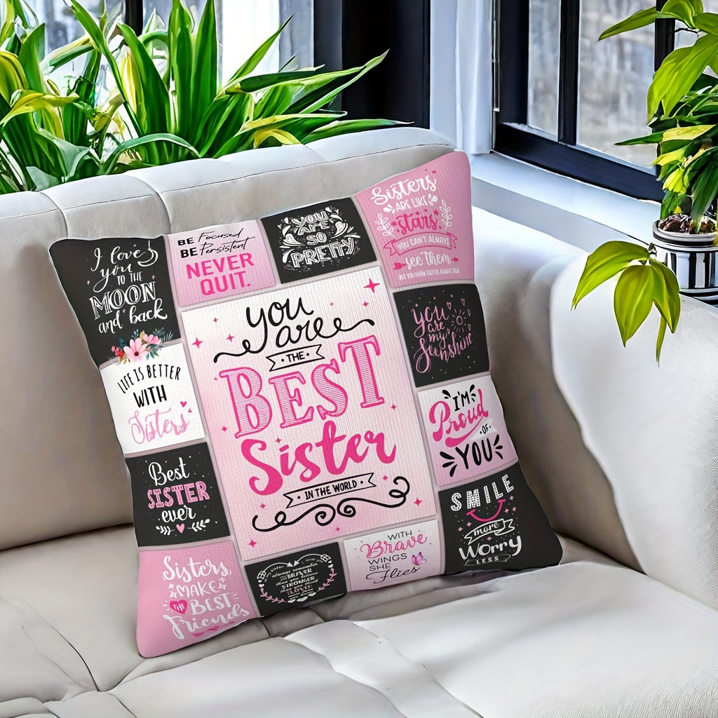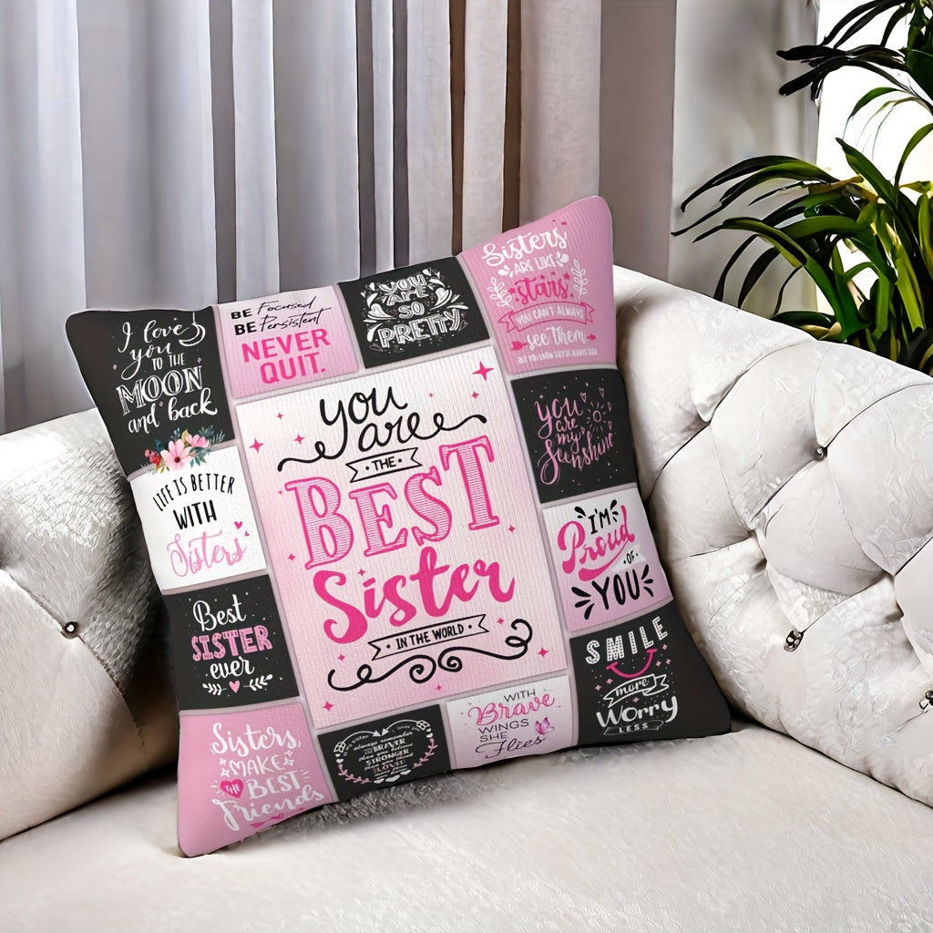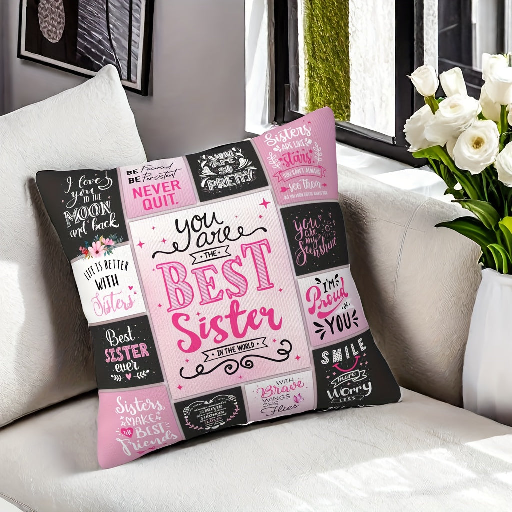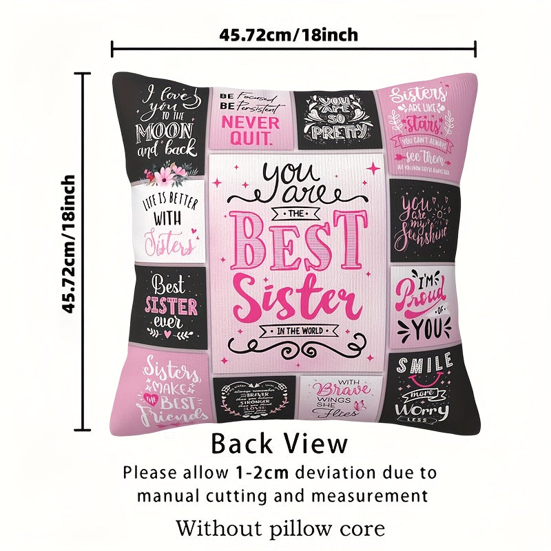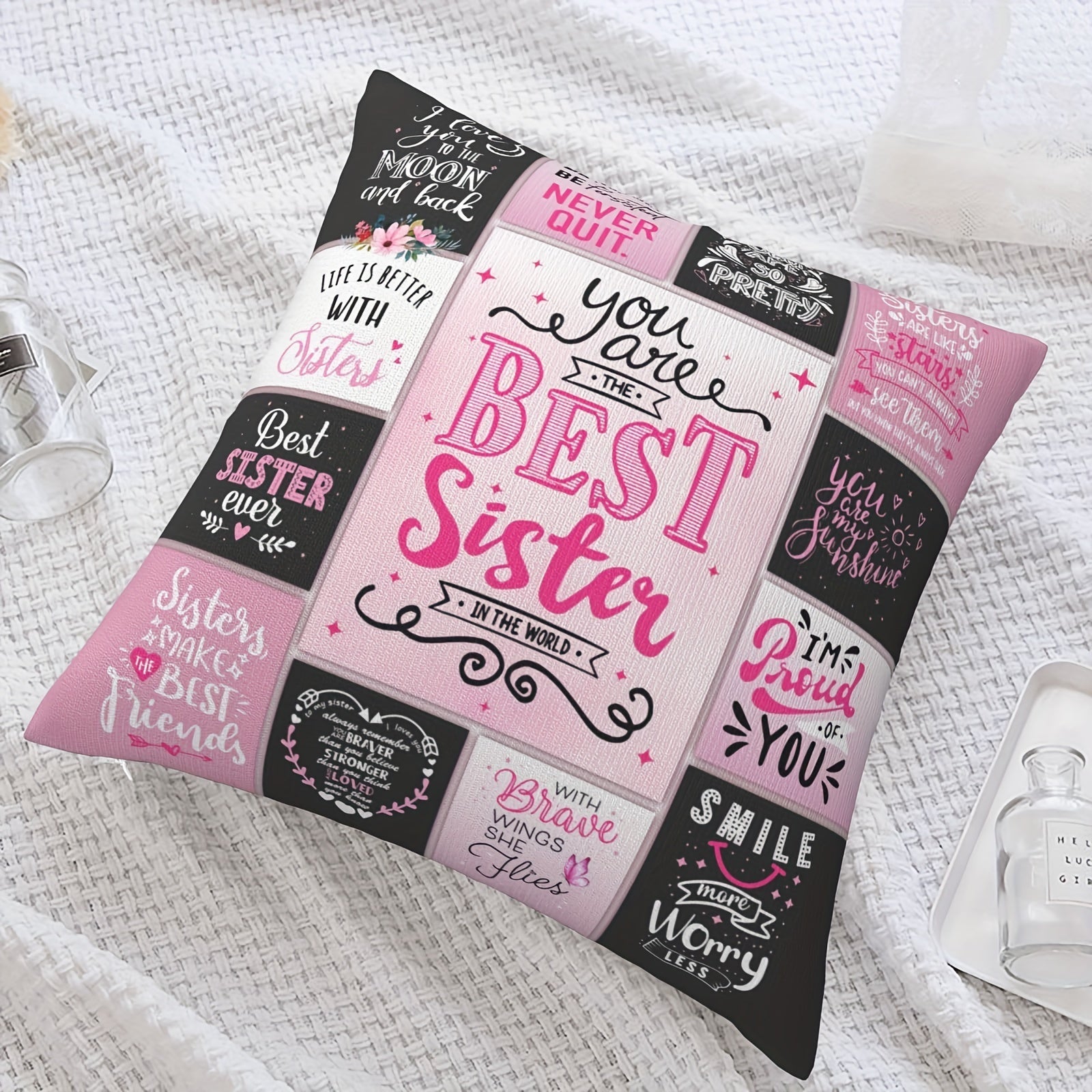 Получите эту наволочку "Лучшая сестра" в розовом/черном/белом цвете, 45,72x45,72 см, изготовленную из полиэфирного волокна. Этот уникальный подарок на день рождения для сестер - это декоративный чехол для подушки (подушка не включена).