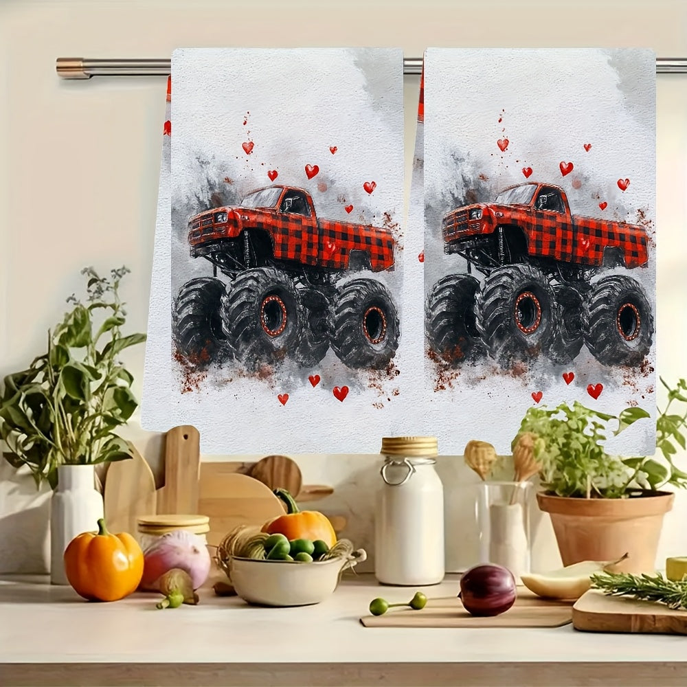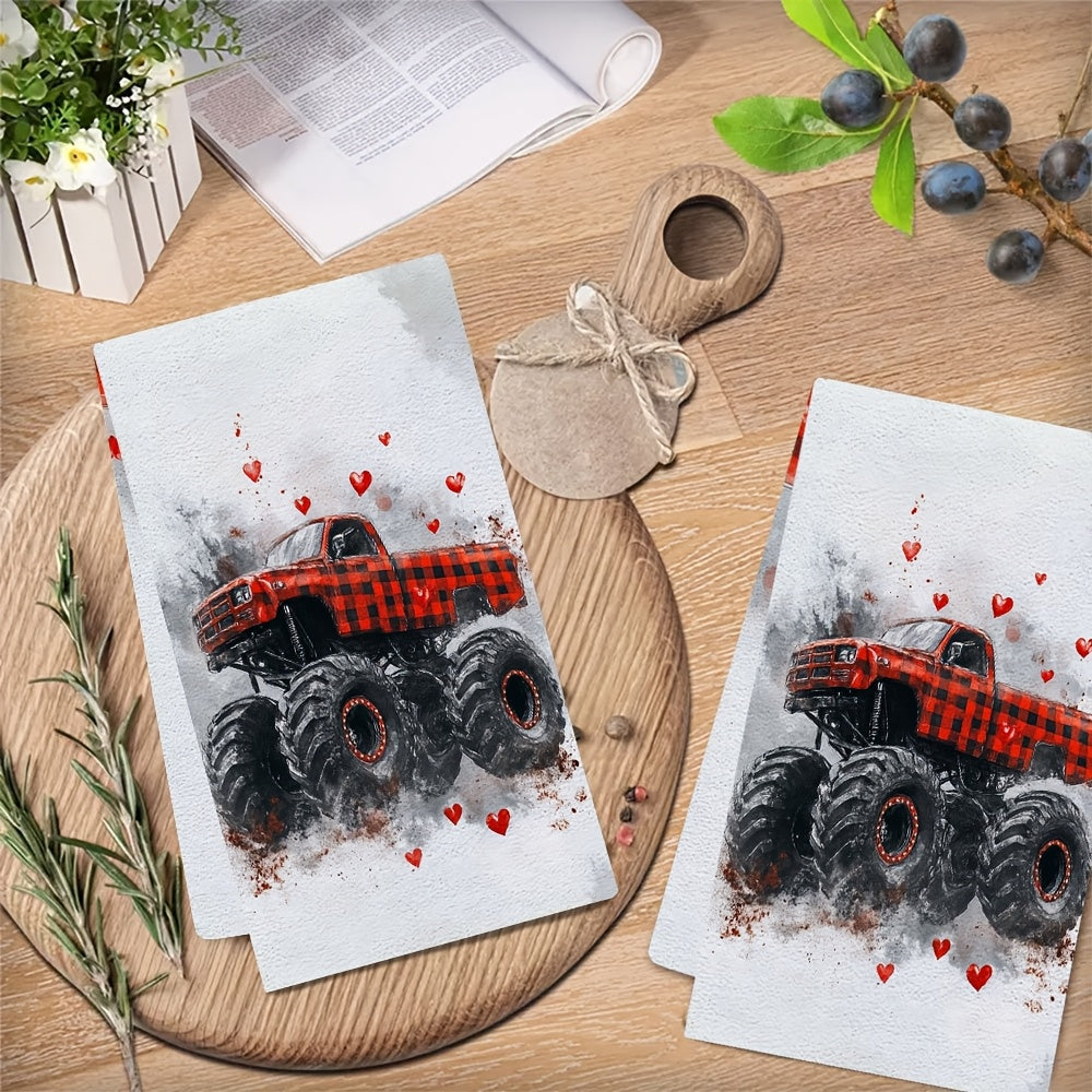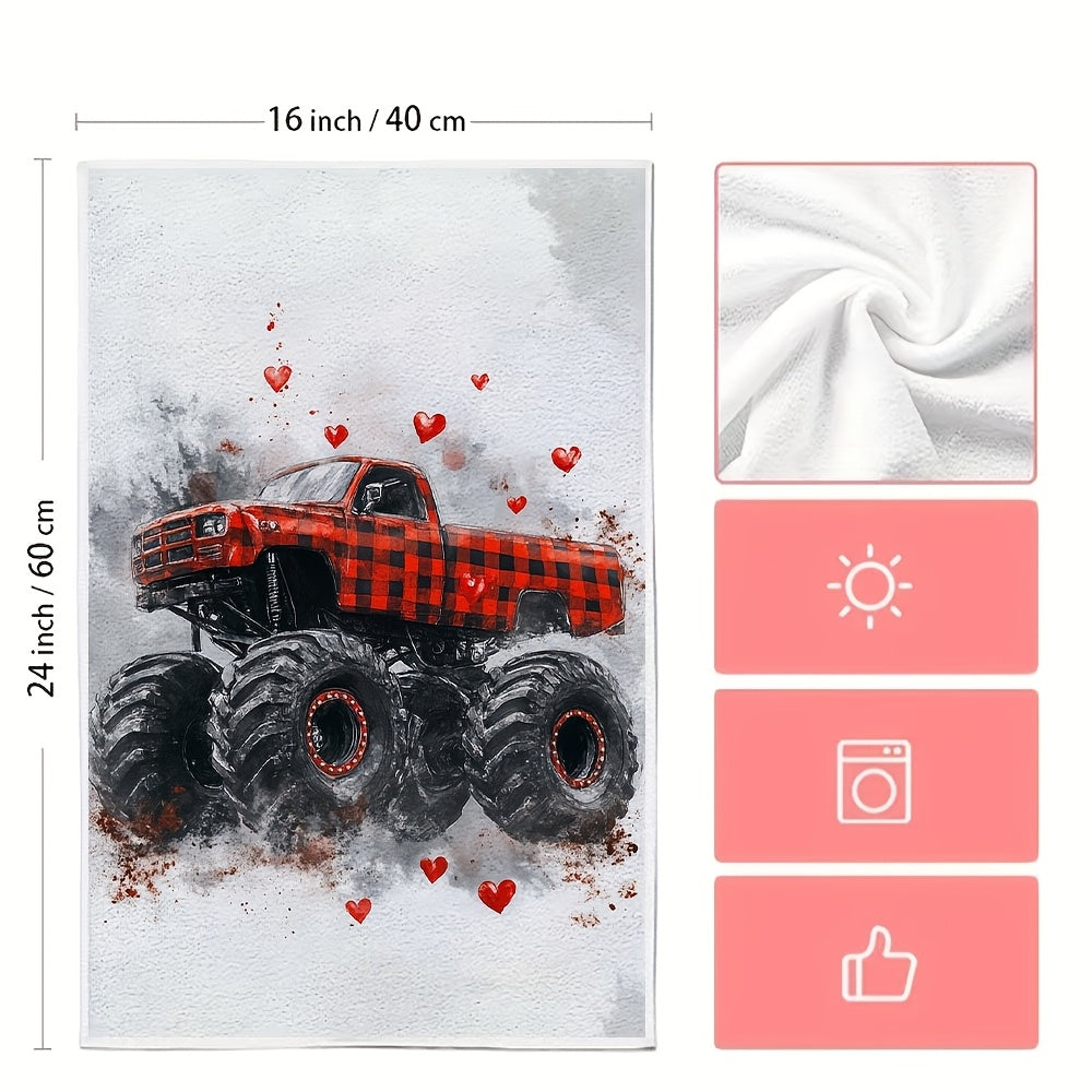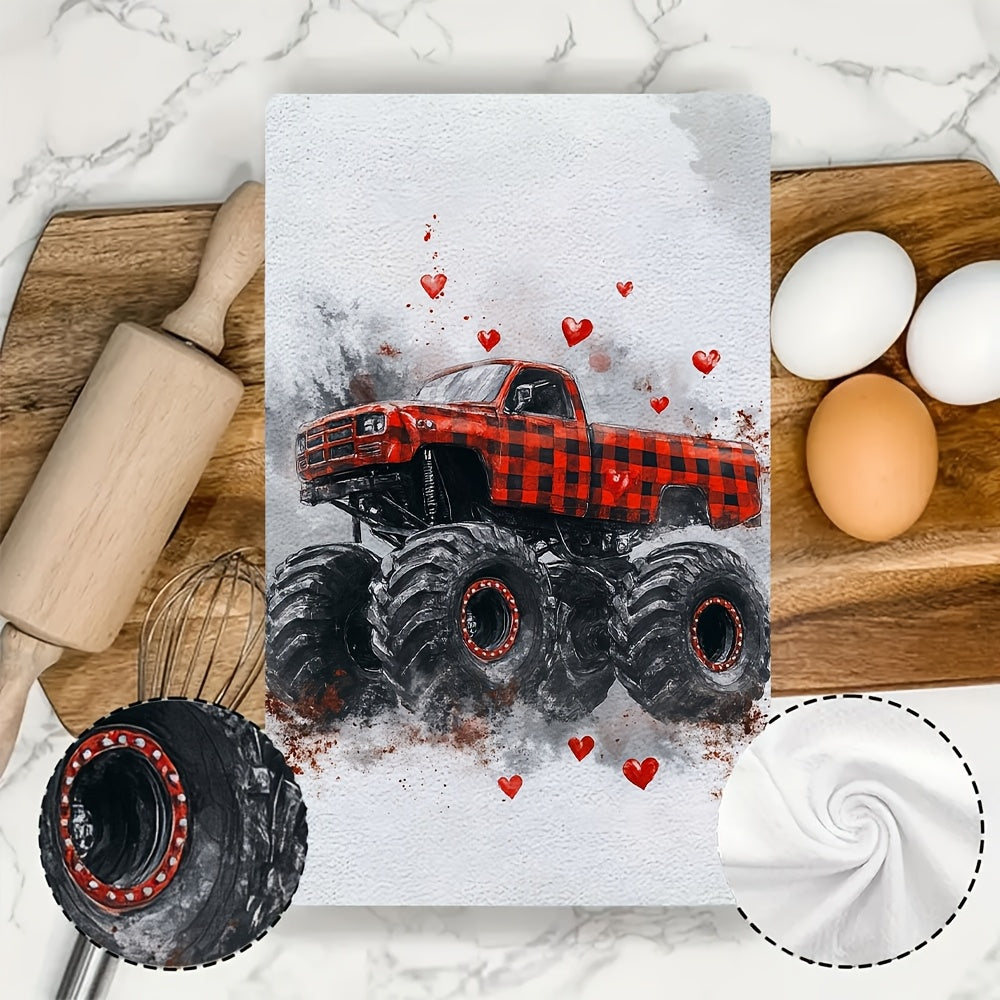 Плюшевые кухонные полотенца ко Дню святого Валентина Монстр Трак Красная клетка Ультра-мягкие