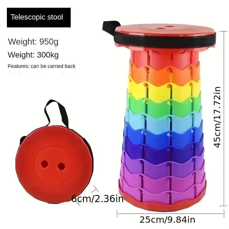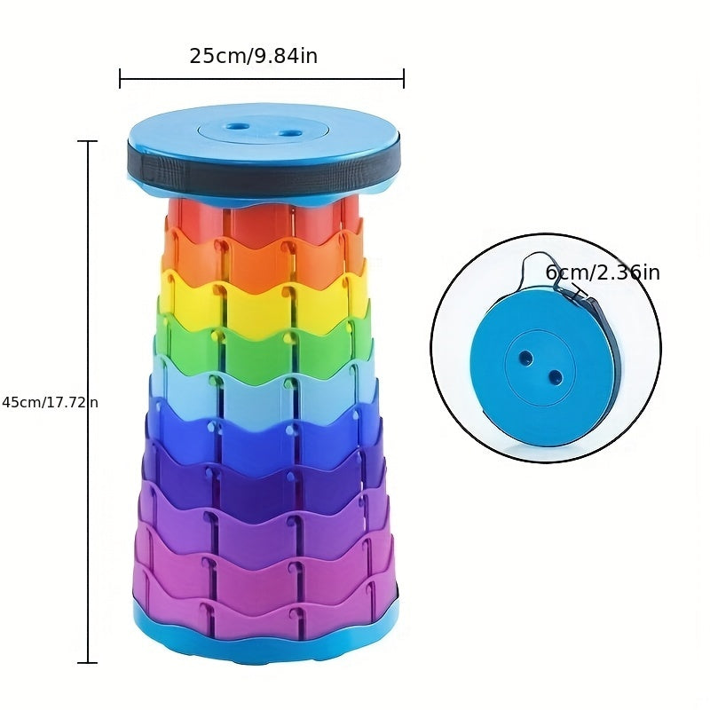 Получите свой портативный складной стул Rainbow 2025 года, инновационный расширяемый табурет из легкого пластика. Этот компактный стул круглой формы не требует электричества и идеально подходит для активного отдыха на природе, такого как кемпинг, рыбалка.