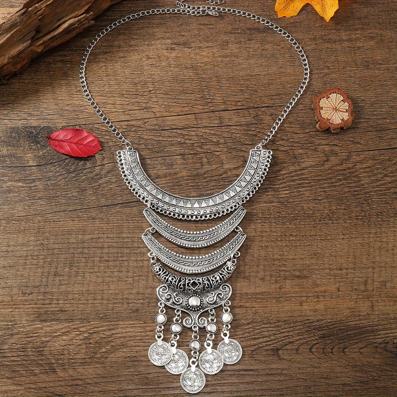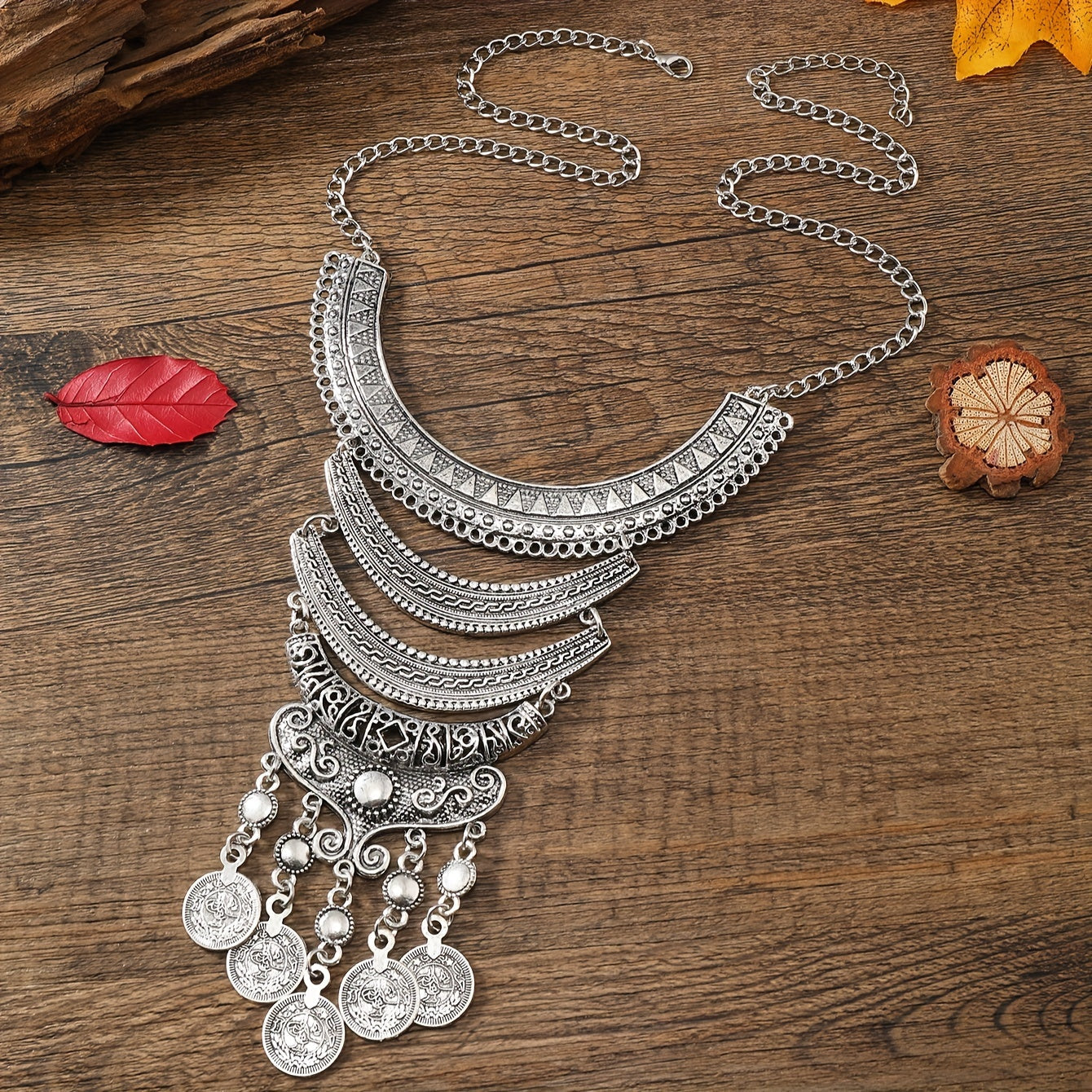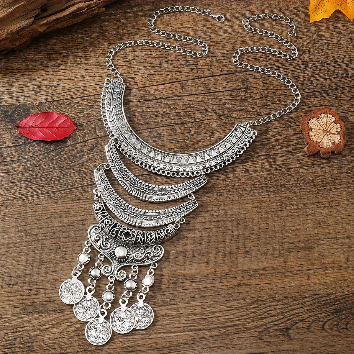 Подарок для женщин: Ожерелье в ретро-стиле с многослойным лунным узором и деталями с кисточками, с геометрическими монетками.