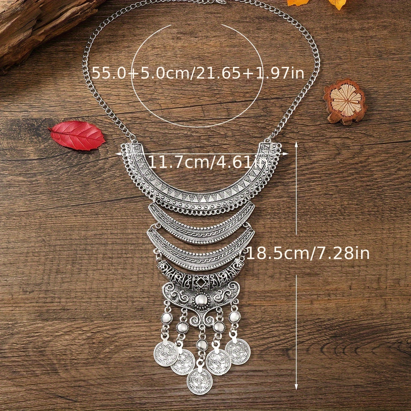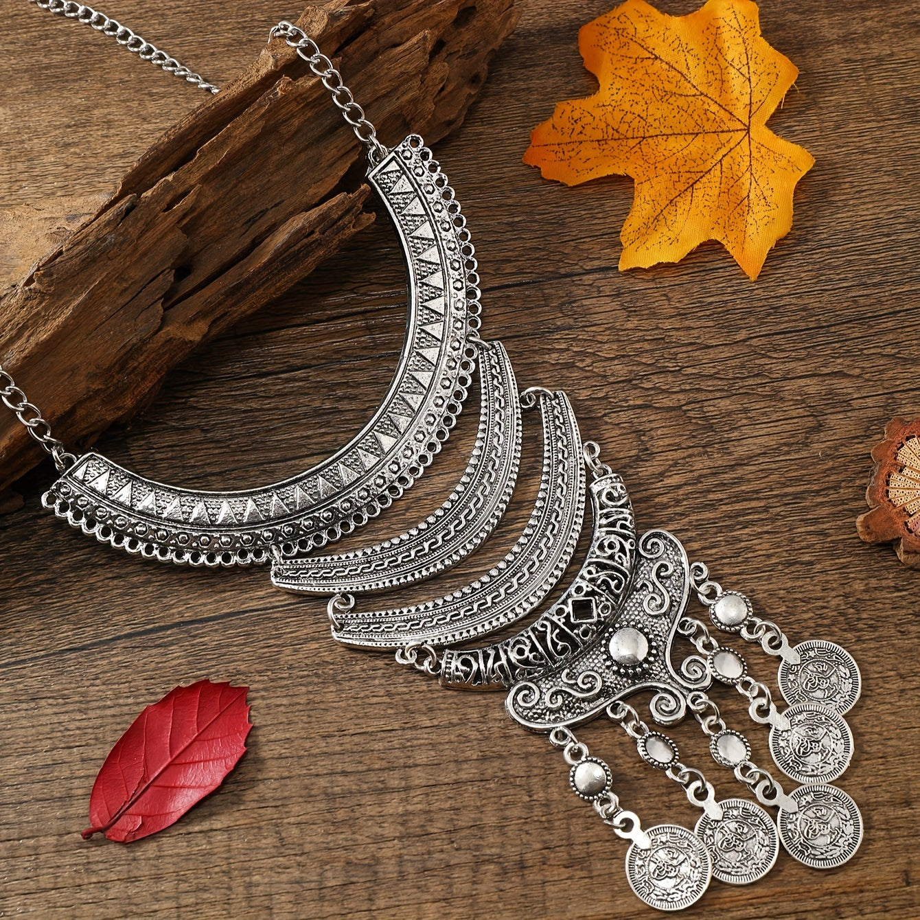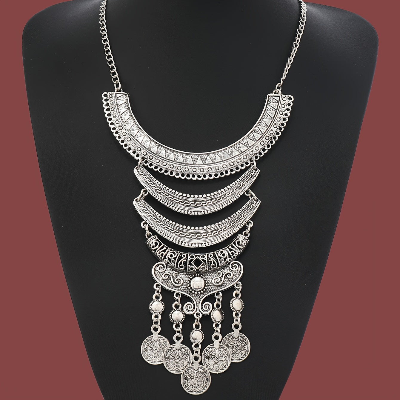 Подарок для женщин: Ожерелье в ретро-стиле с многослойным лунным узором и деталями с кисточками, с геометрическими монетками.