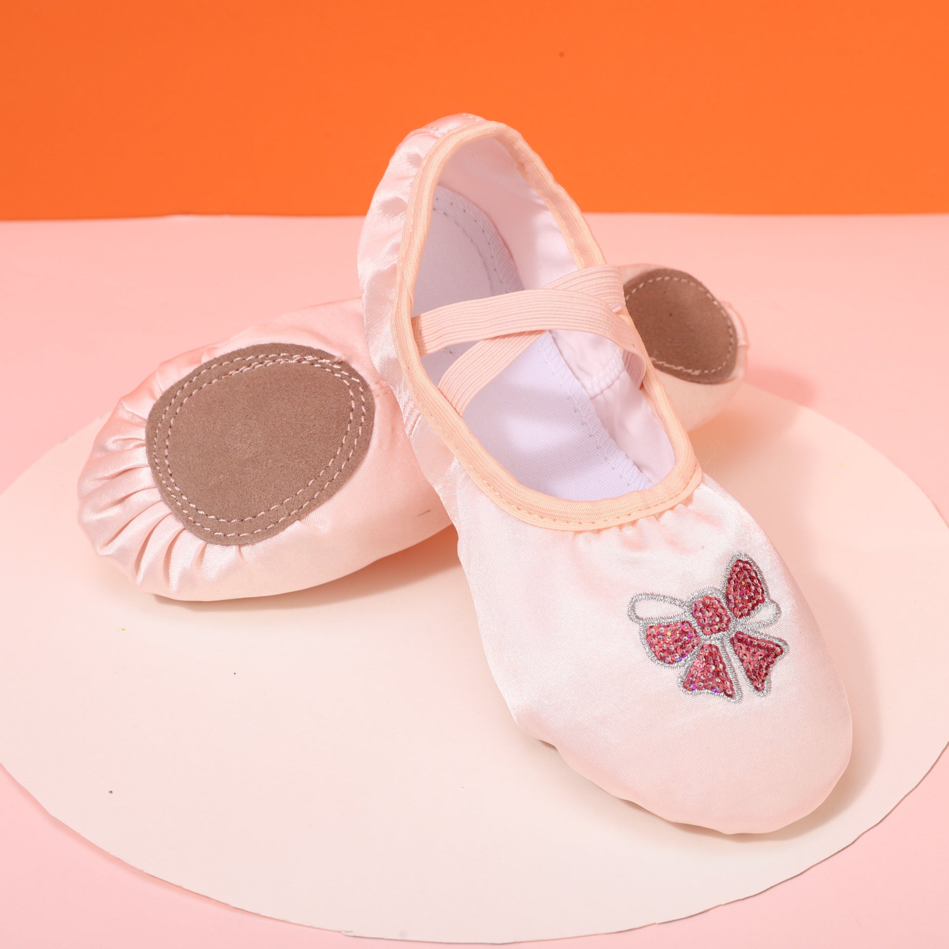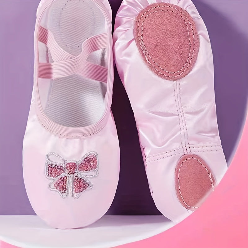 Балетные туфли для девочек с пайетками и вышитым бантом, дышащий канвас, легко надеваются для девочек