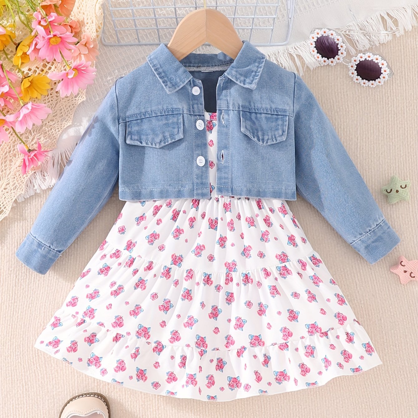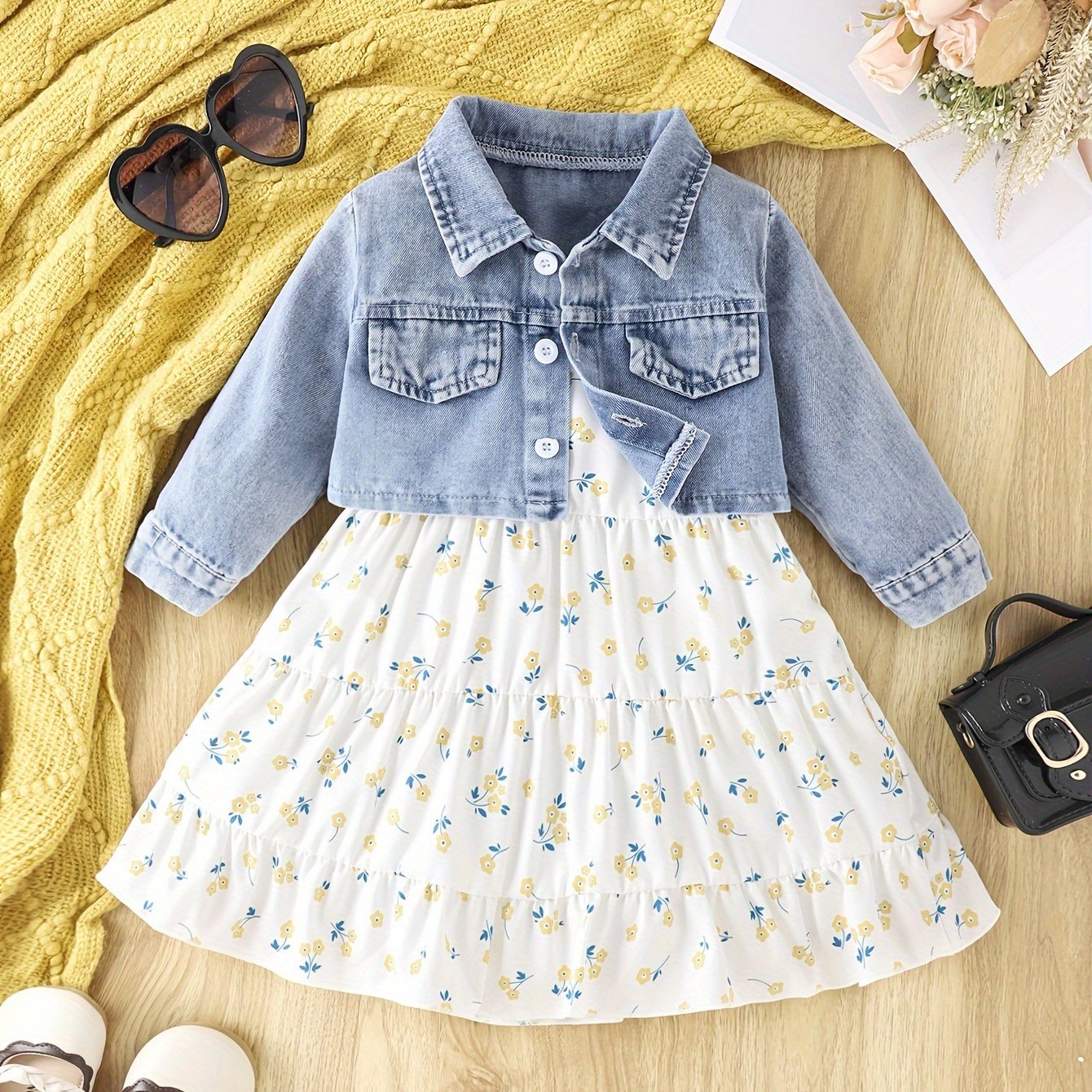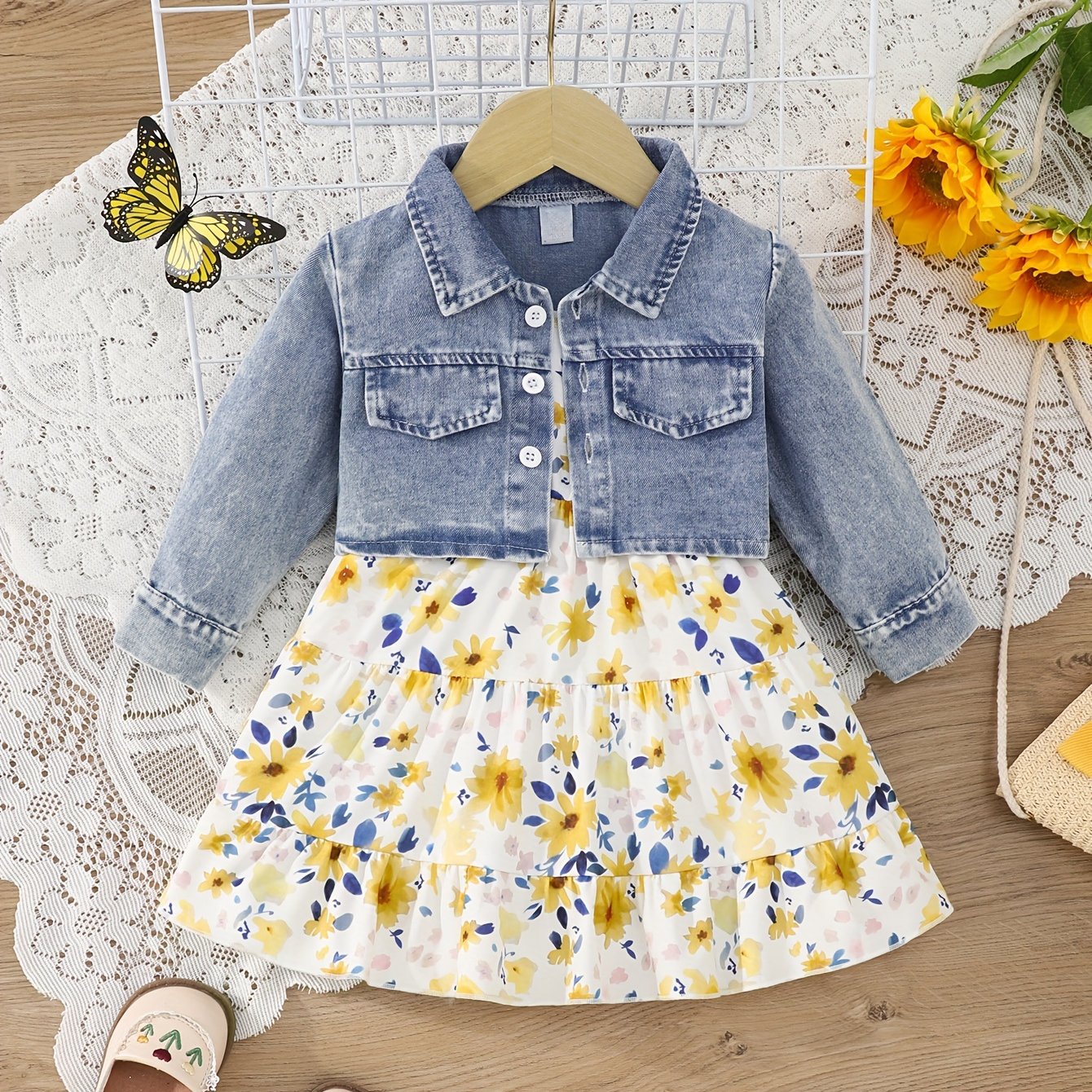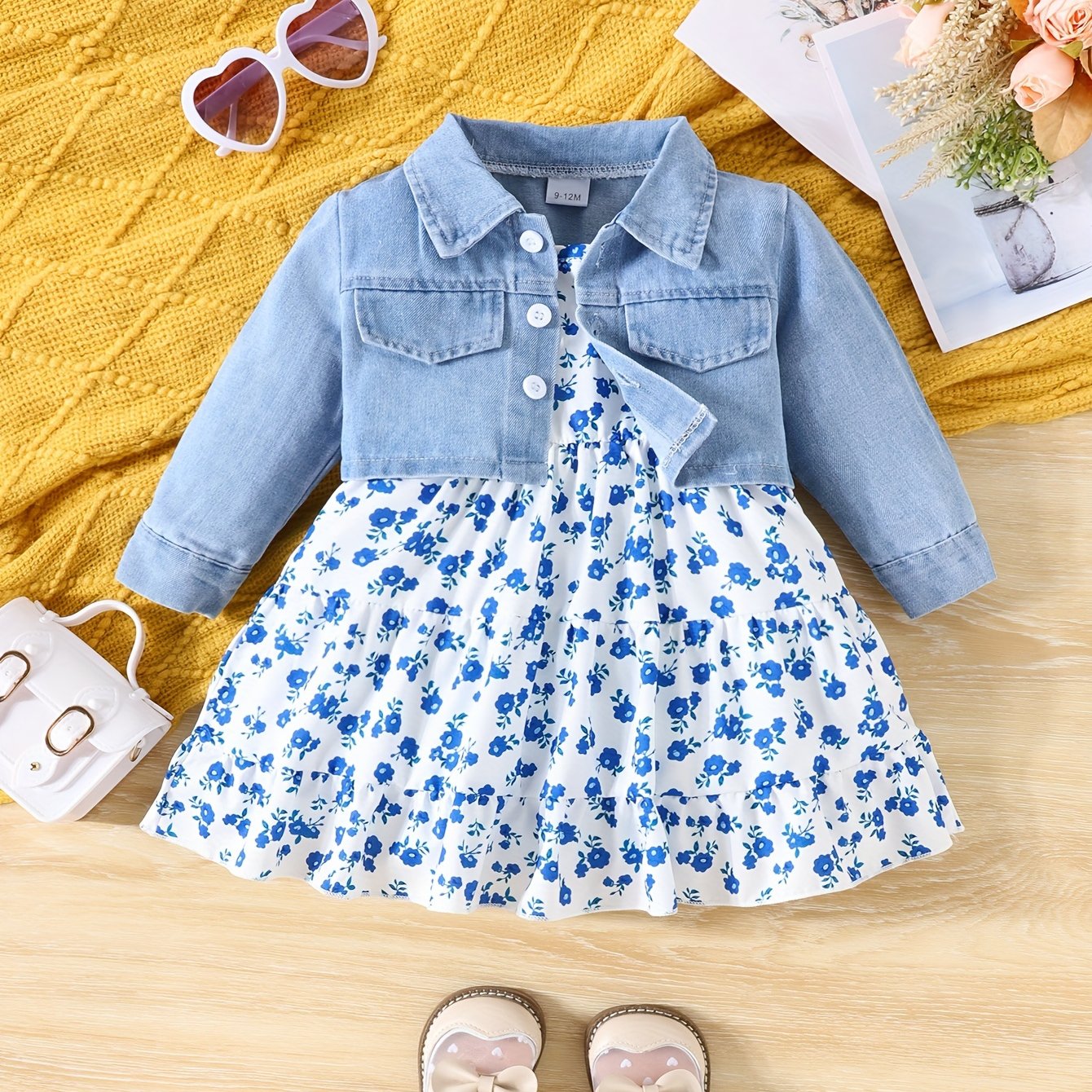Джинсовая куртка и платье с цветочным принтом для девочек 0-3 лет
