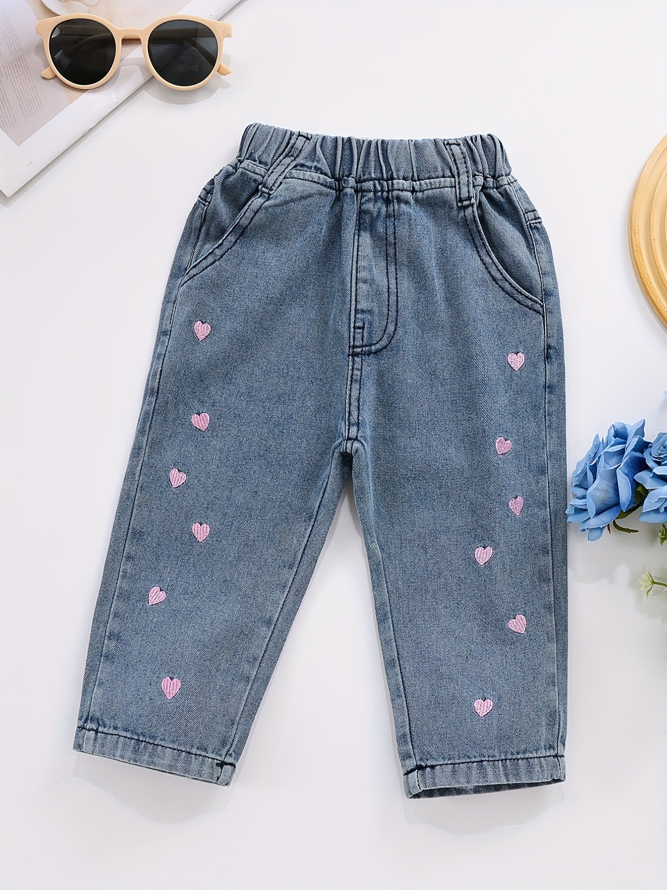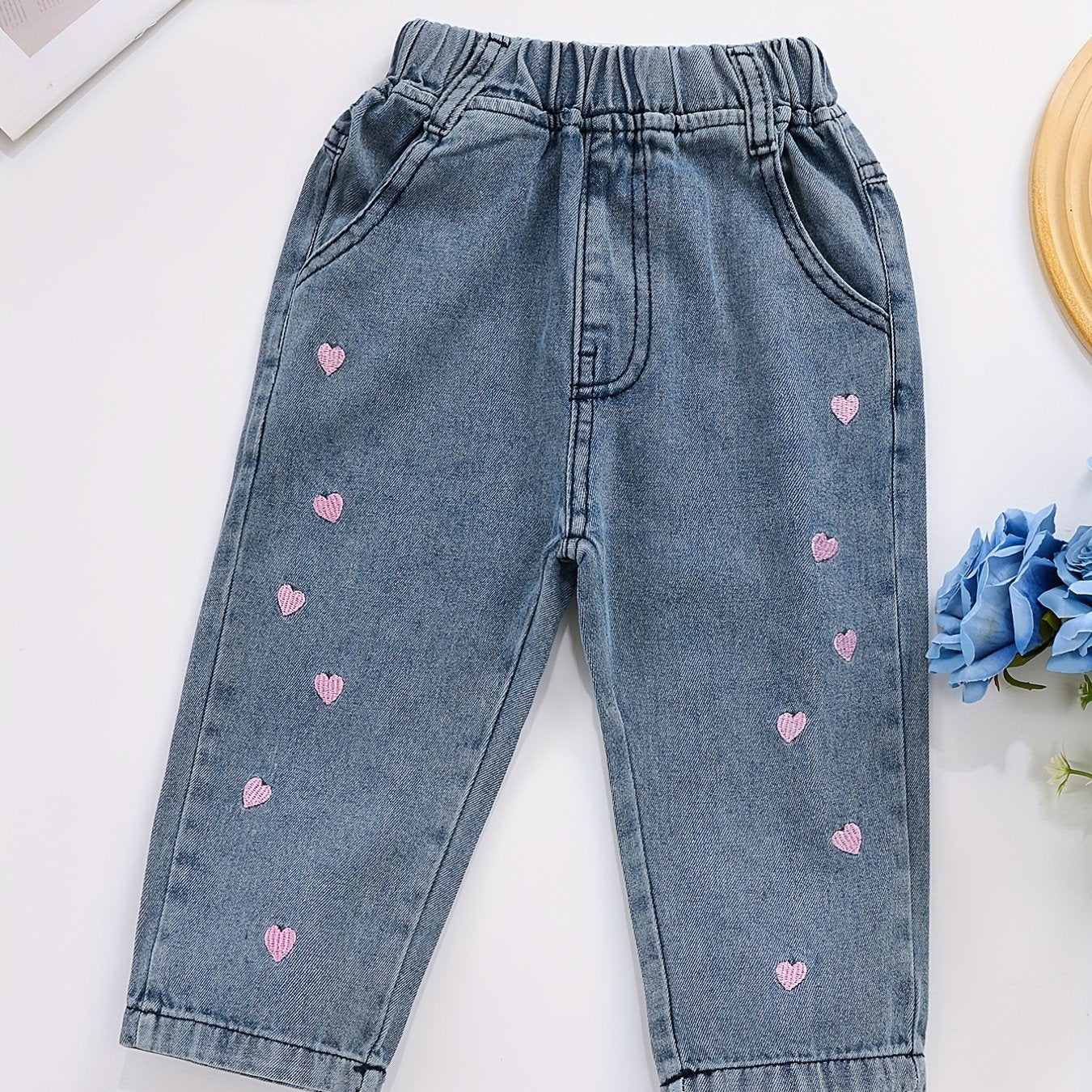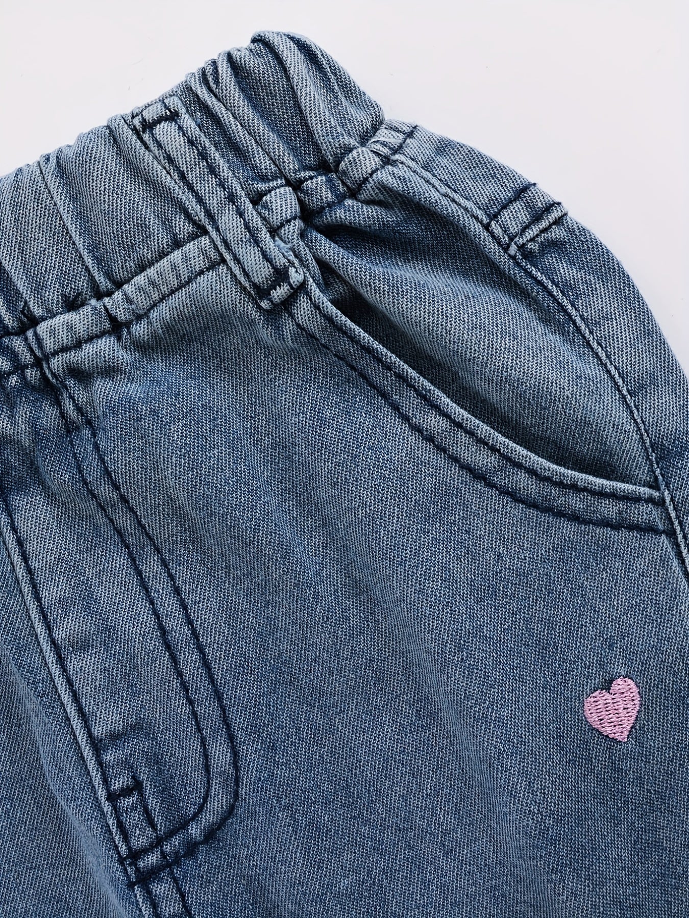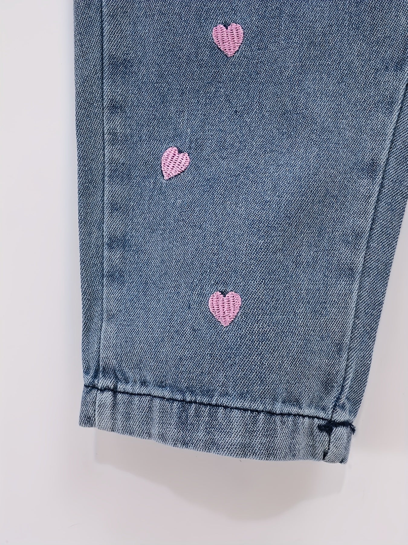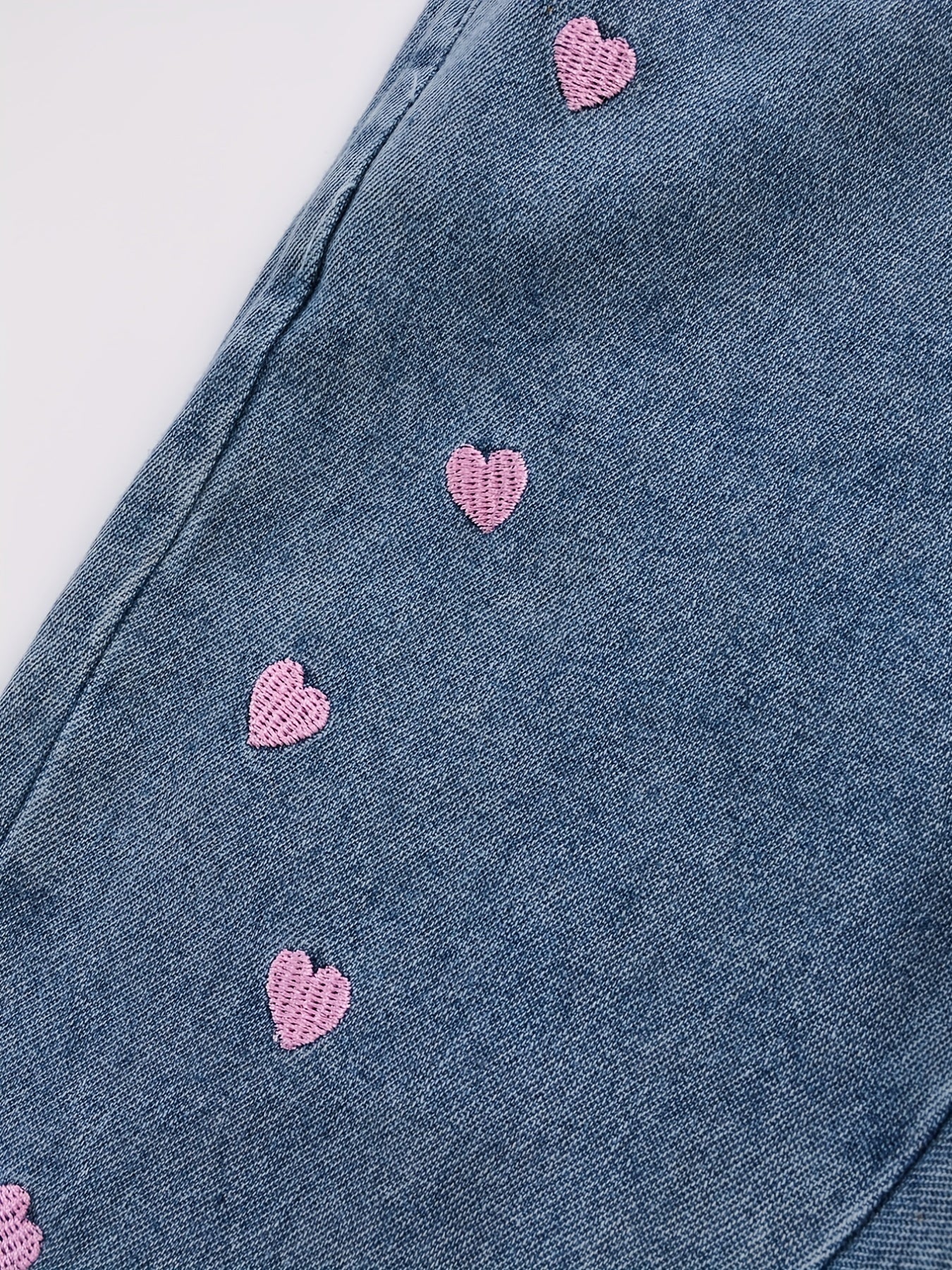 Джинсы из денима для девочек с вышивкой в виде сердца для девочек 12 лет и младше
