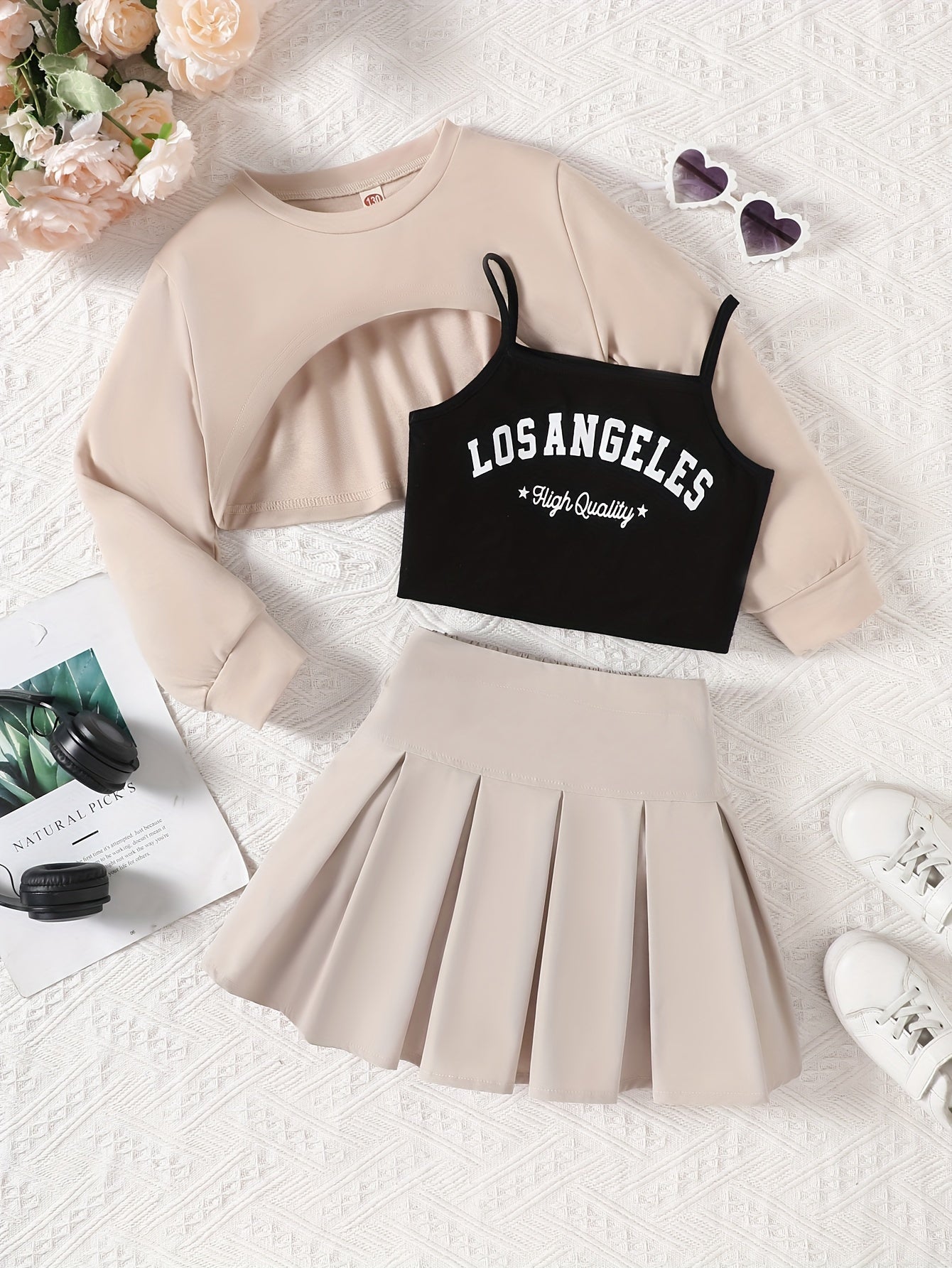 Детский комплект одежды для улицы с блузкой с длинным рукавом и плиссированной юбкой из полиэстера для весны и осени