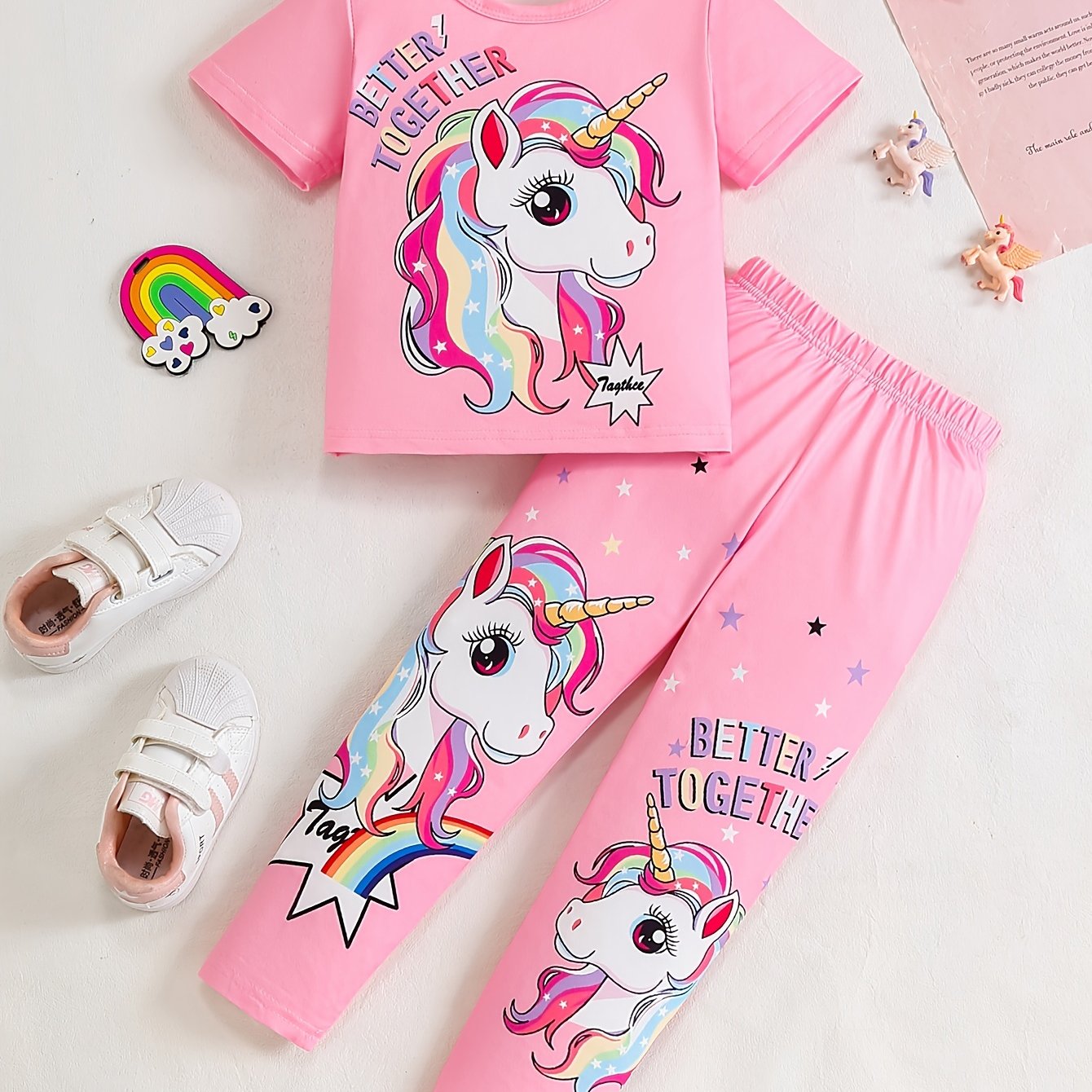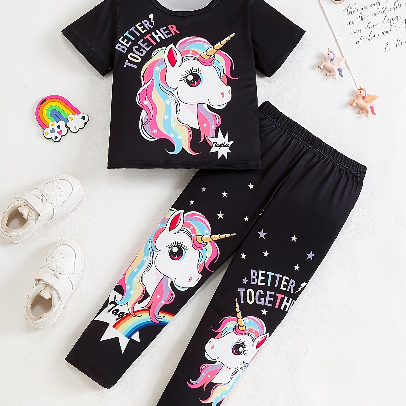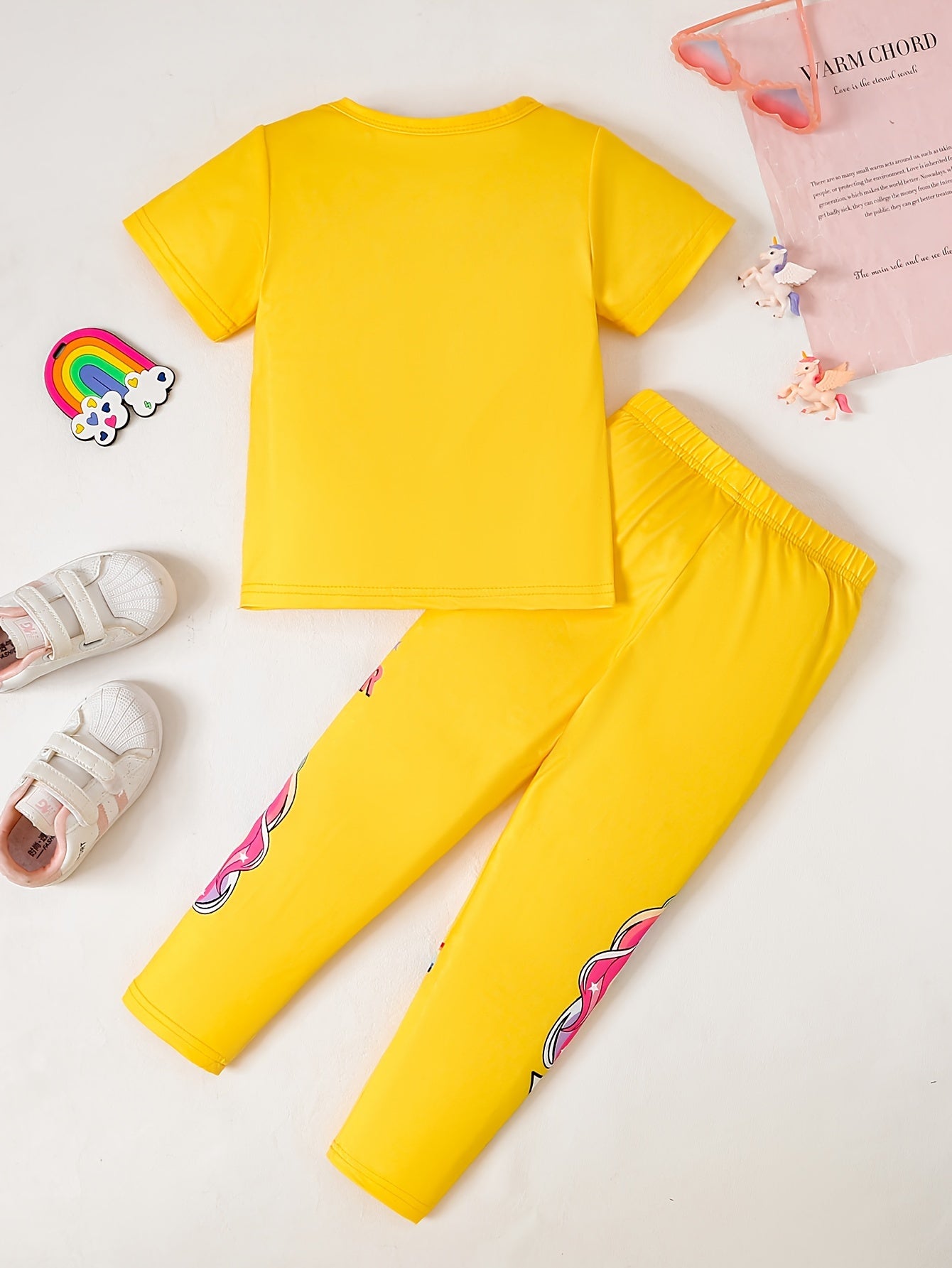 Детский комплект из короткого рукава и джоггера для девочек с животным принтом для активного отдыха