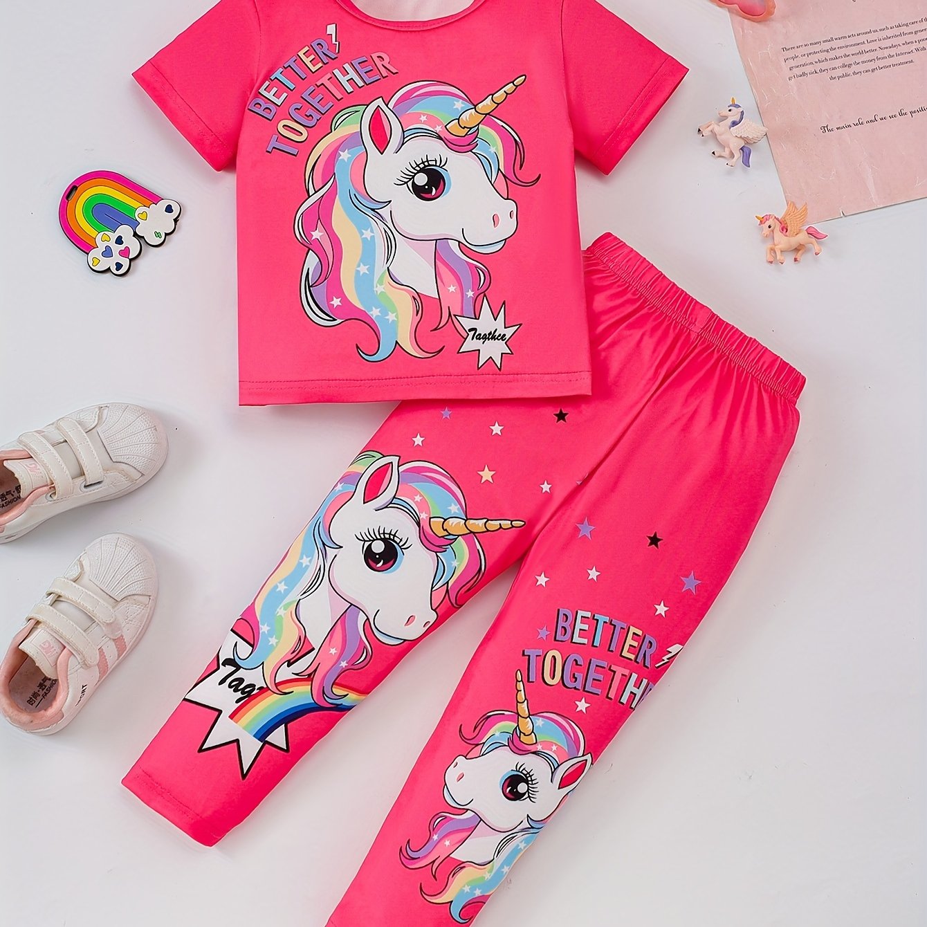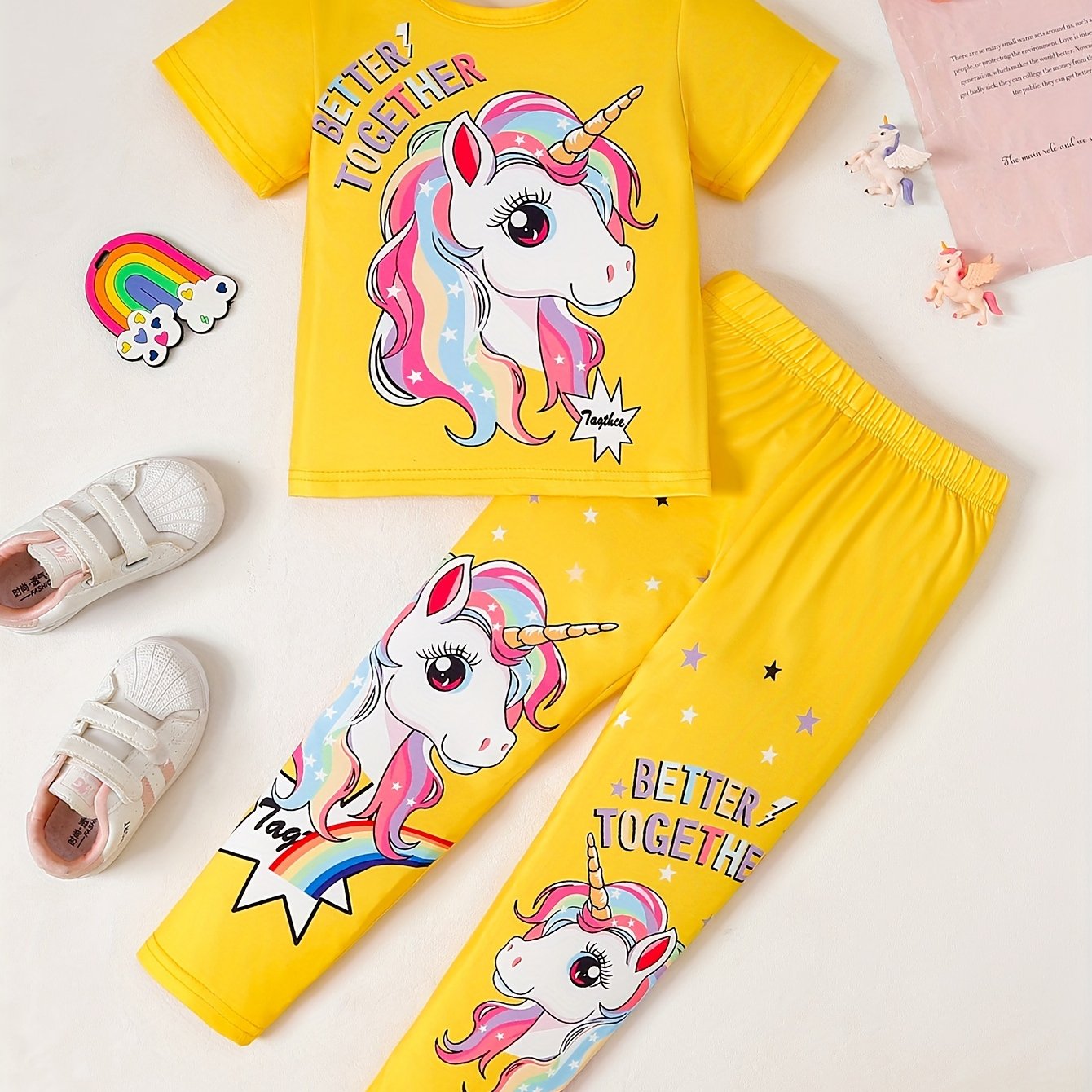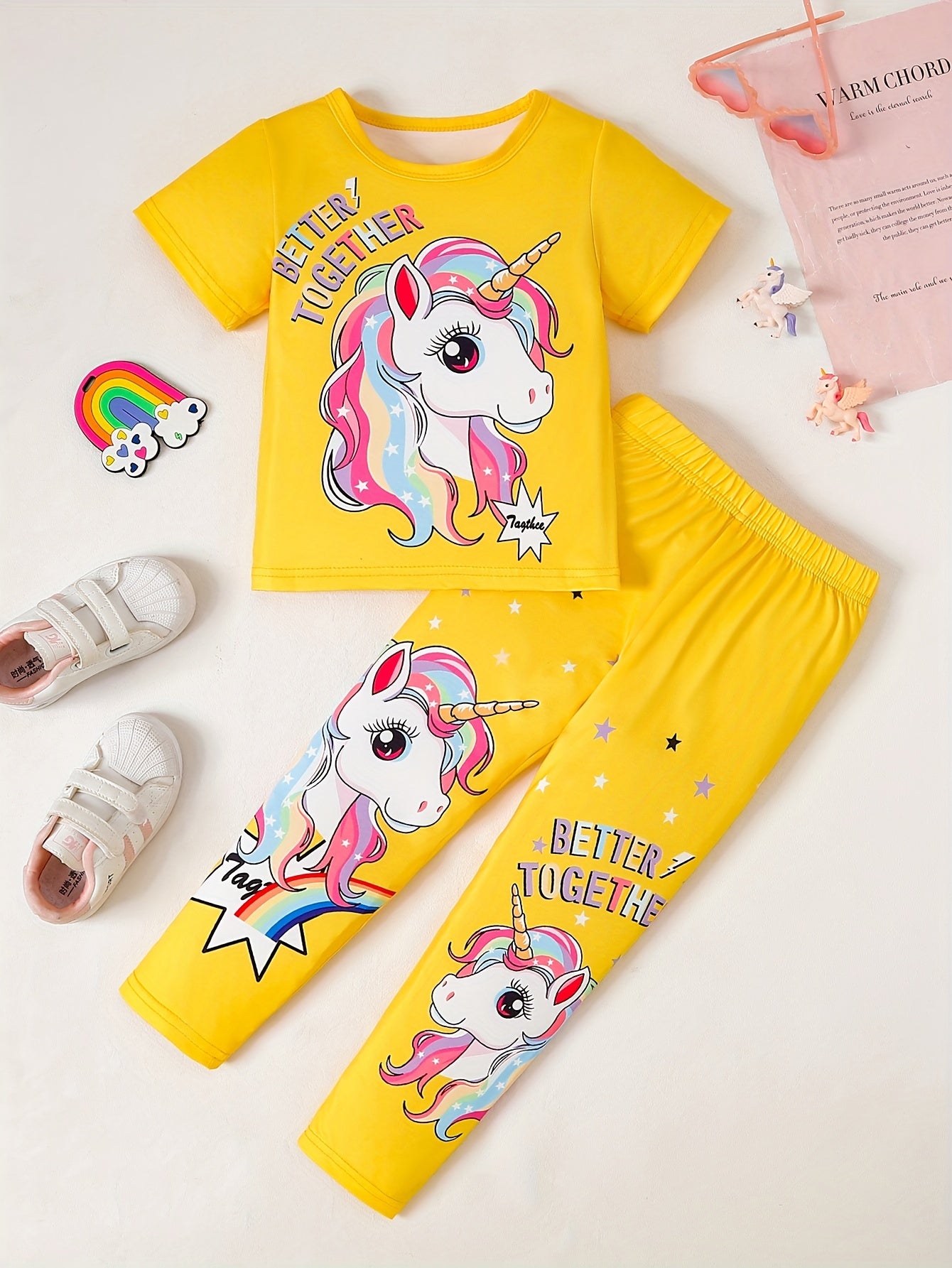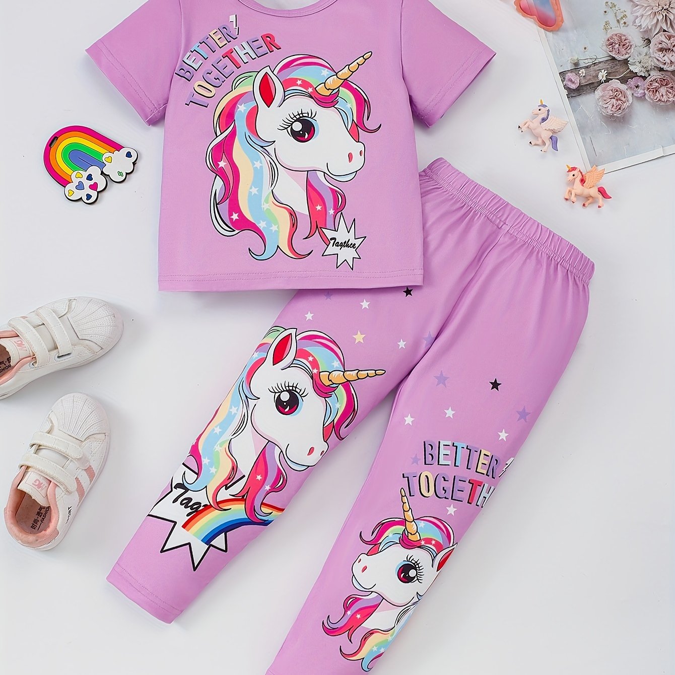 Детский комплект из короткого рукава и джоггера для девочек с животным принтом для активного отдыха