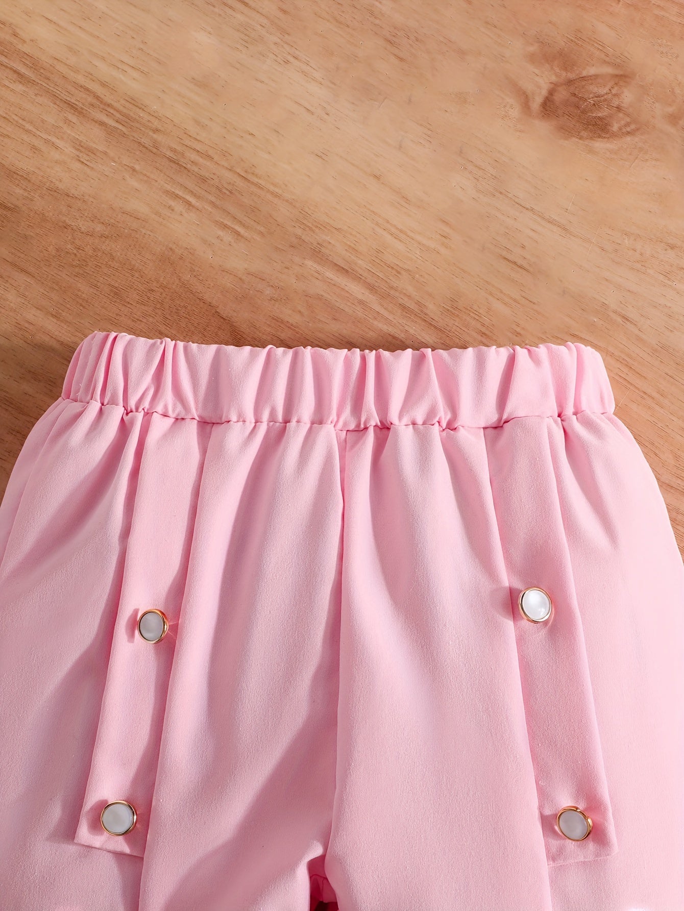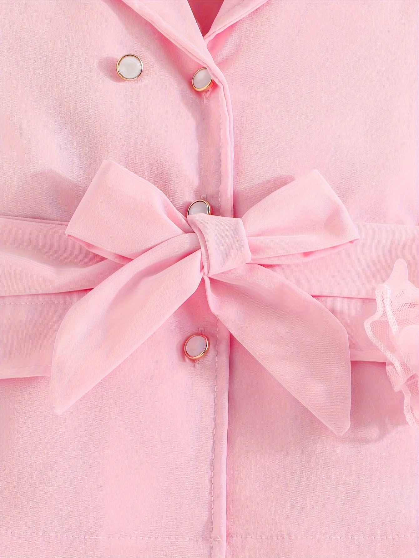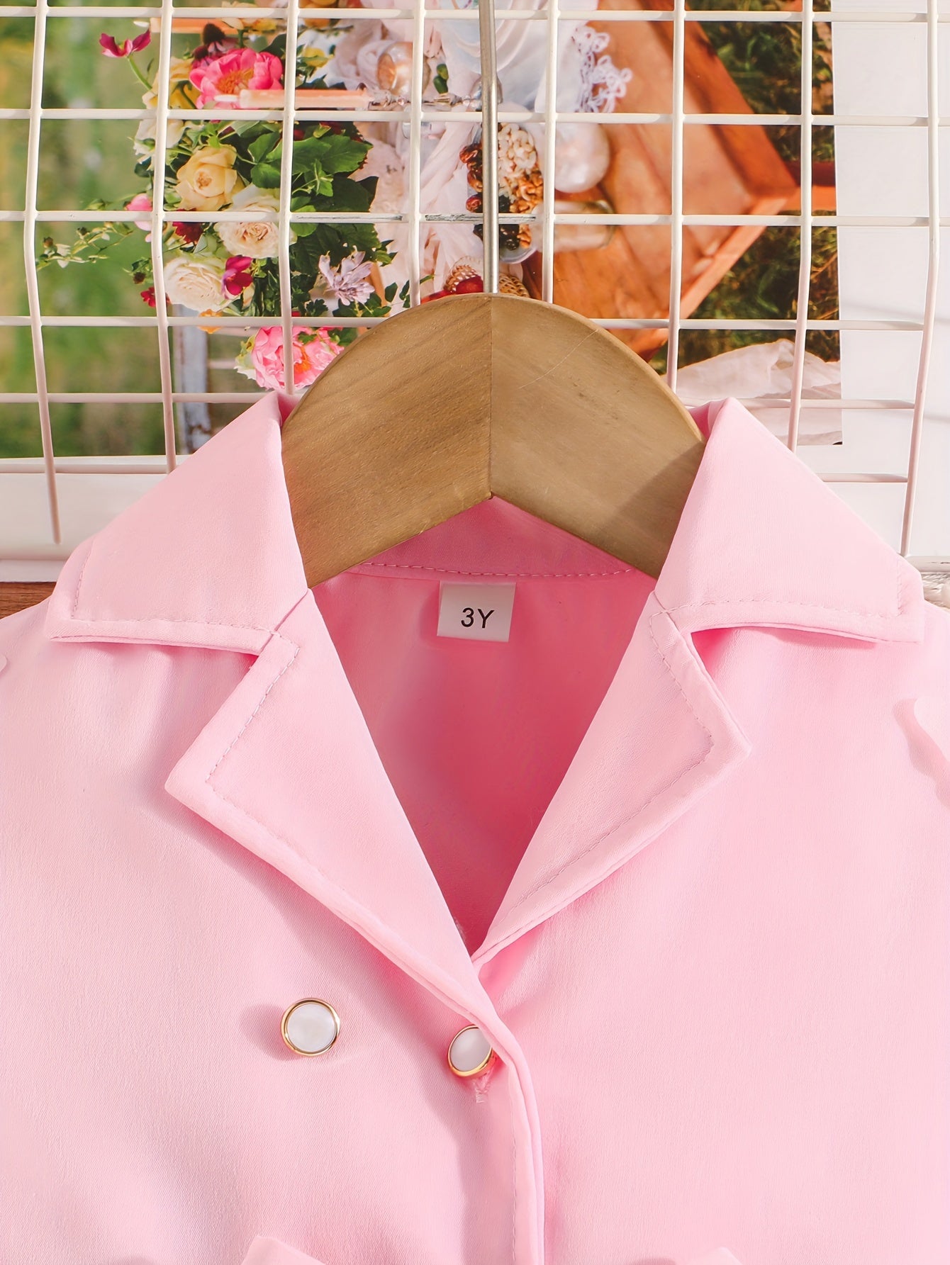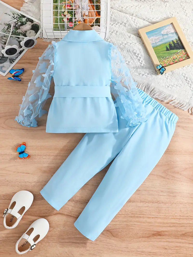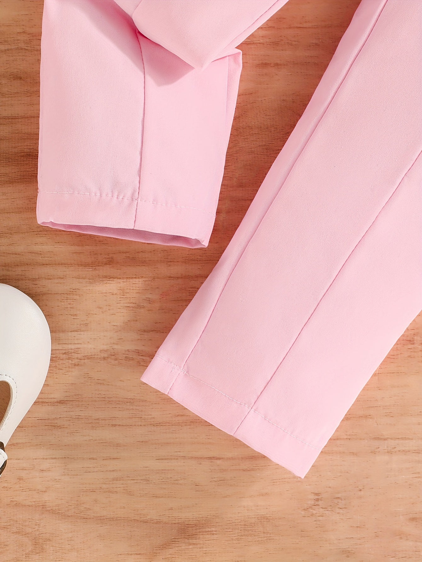 Девочкиный розовый пиджак-блейзер и штаны с бабочками и рюшей для всех сезонов