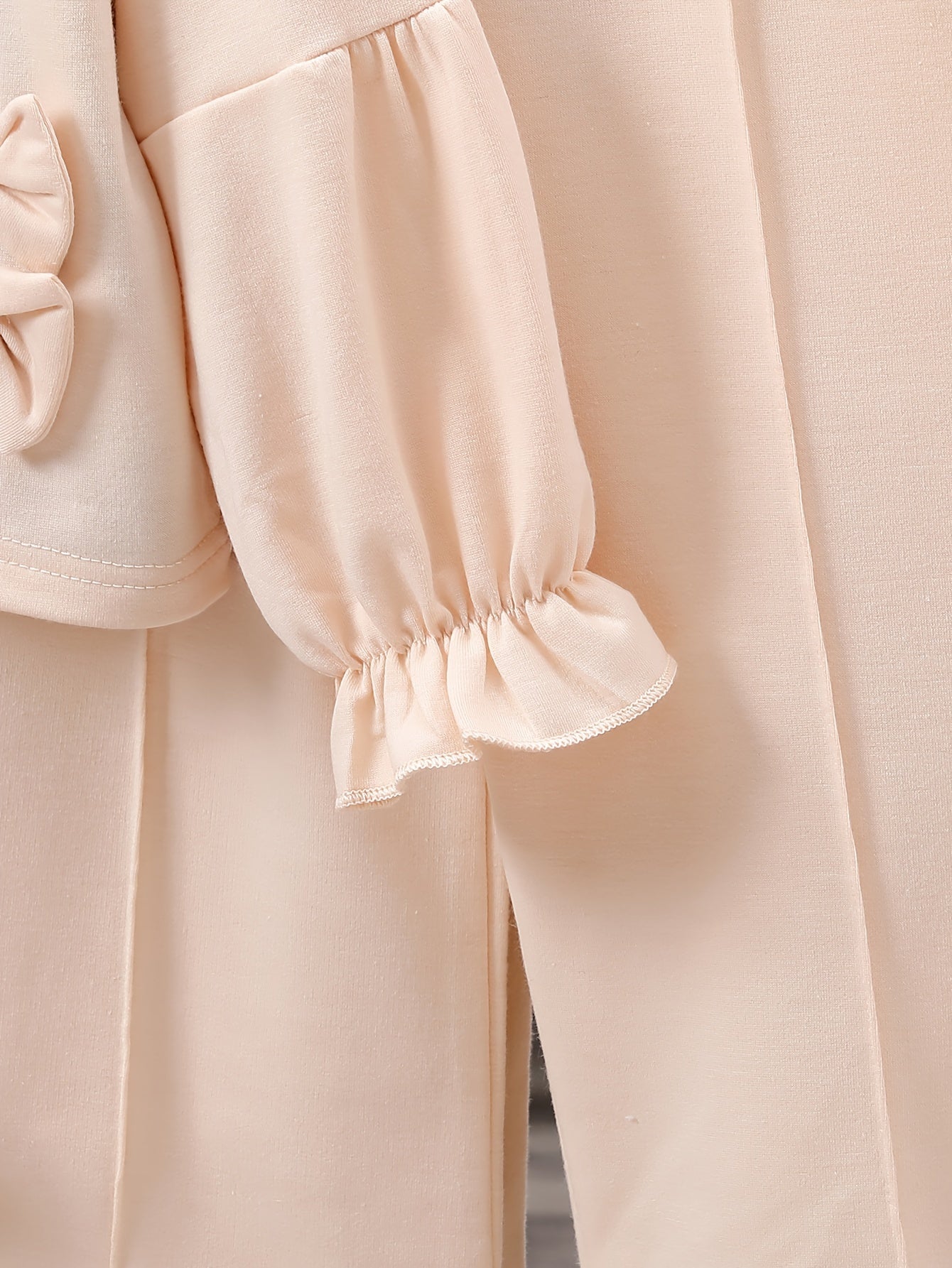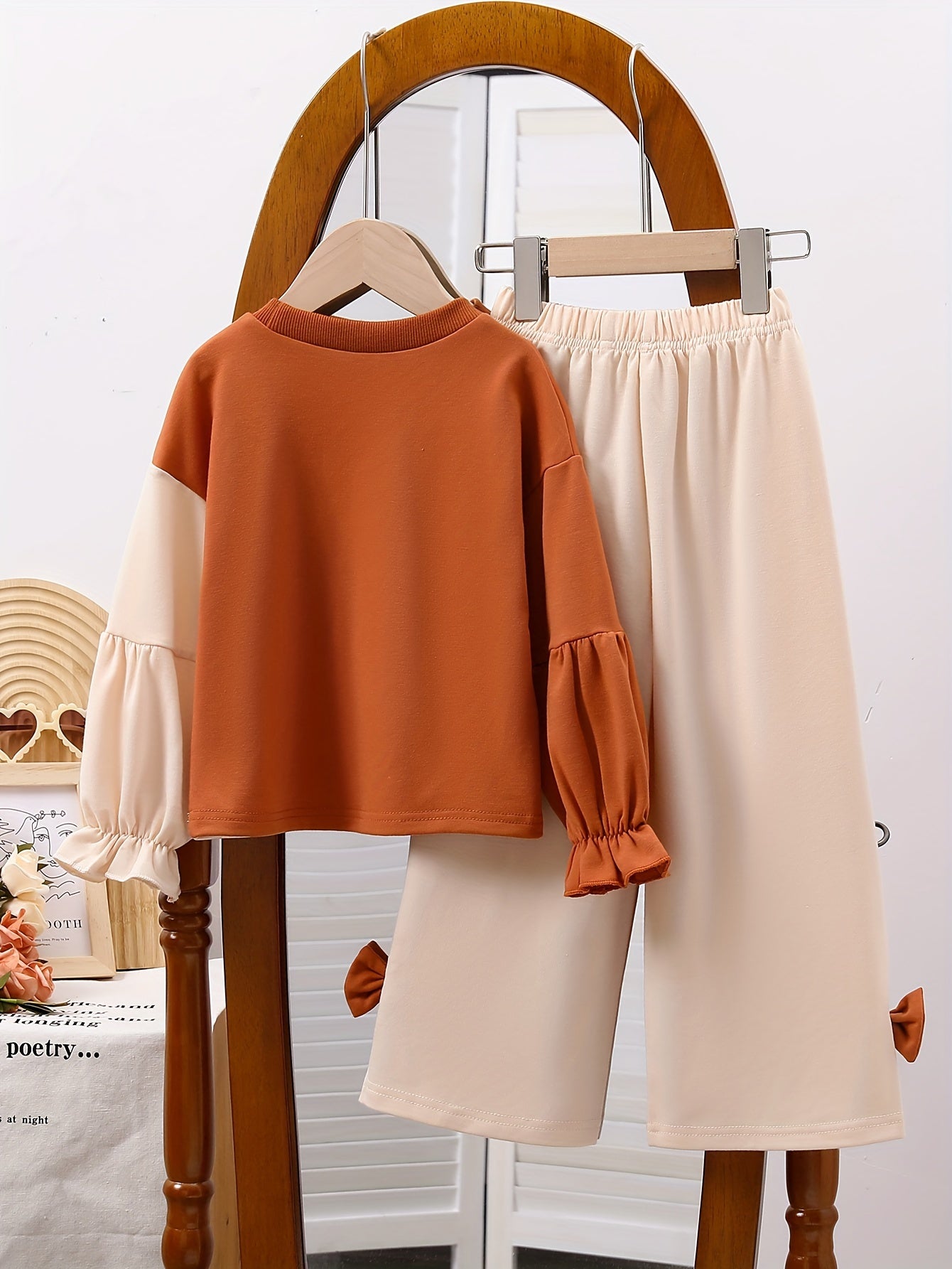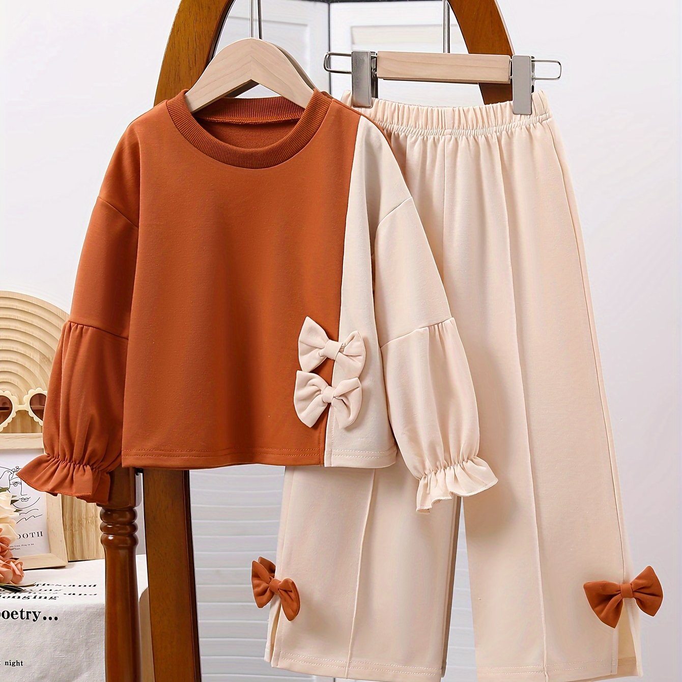 Детский комплект из двух предметов: топ с длинным рукавом и бантом, леггинсы с разрезом для весенне-осенней повседневной одежды