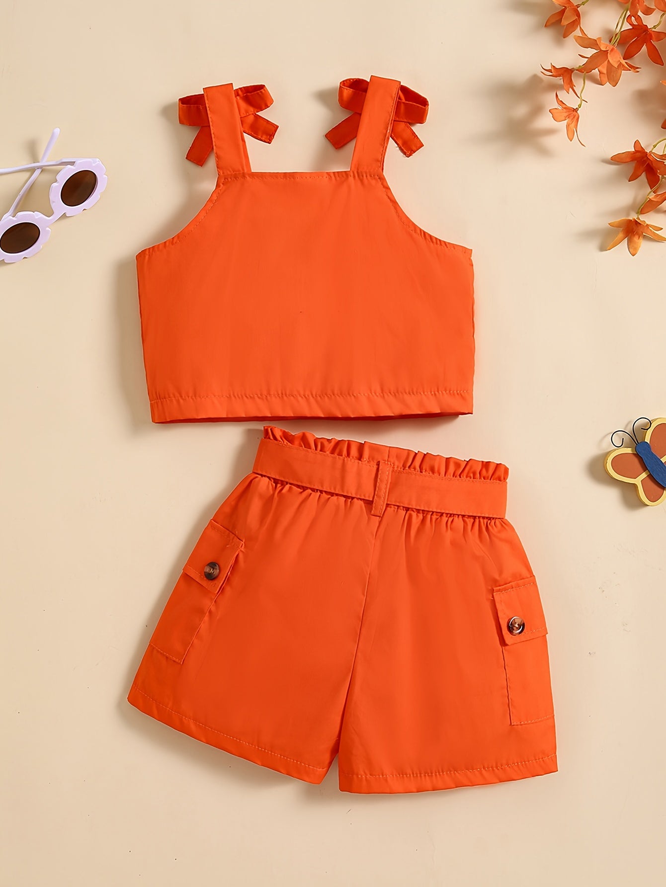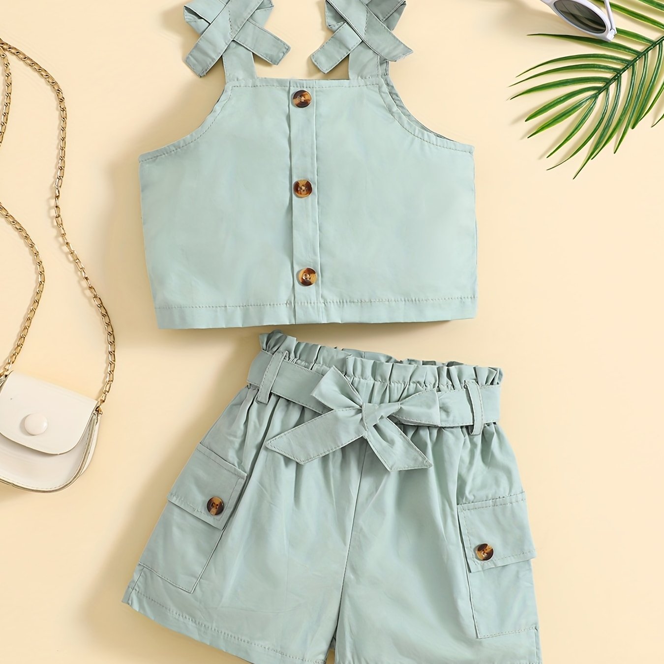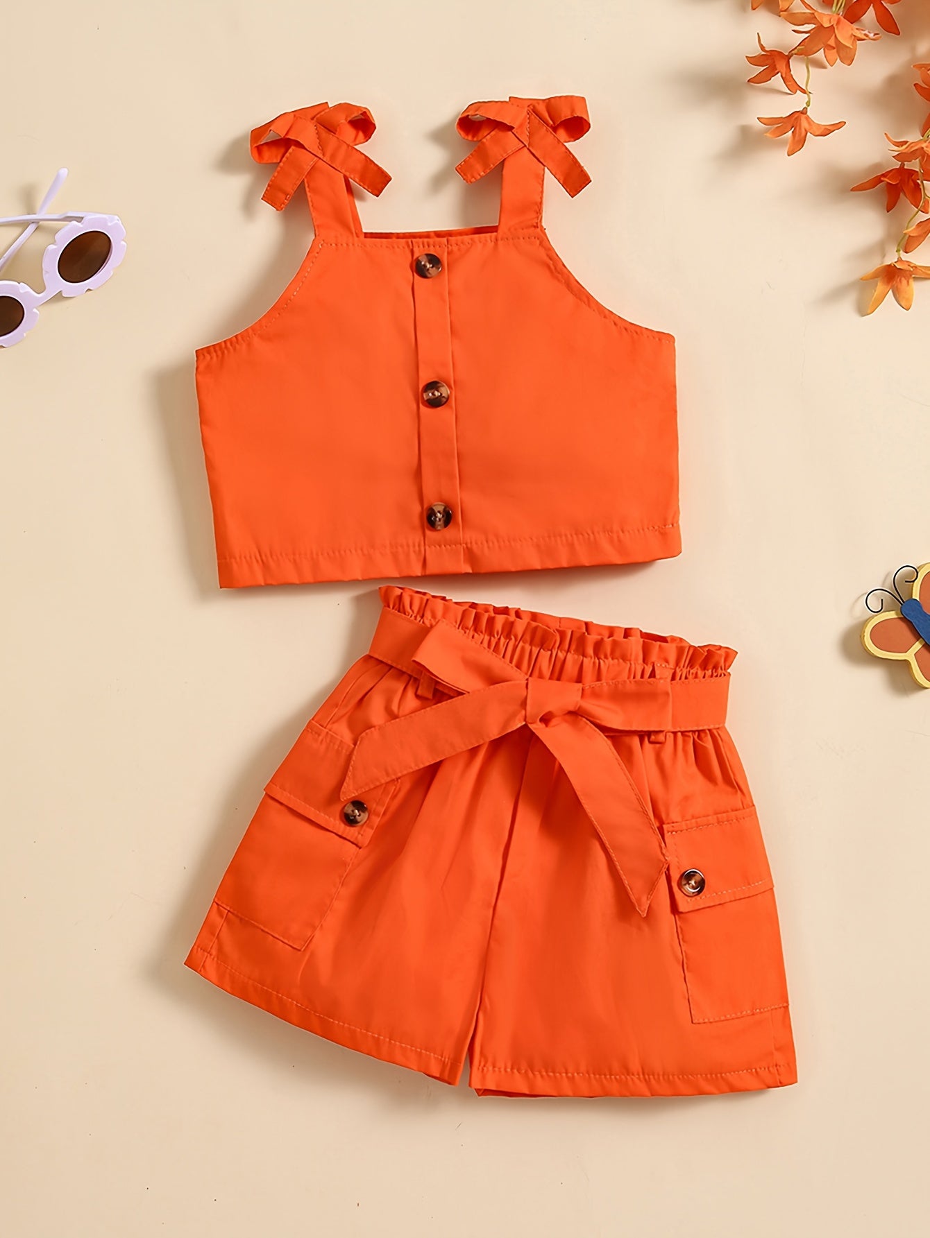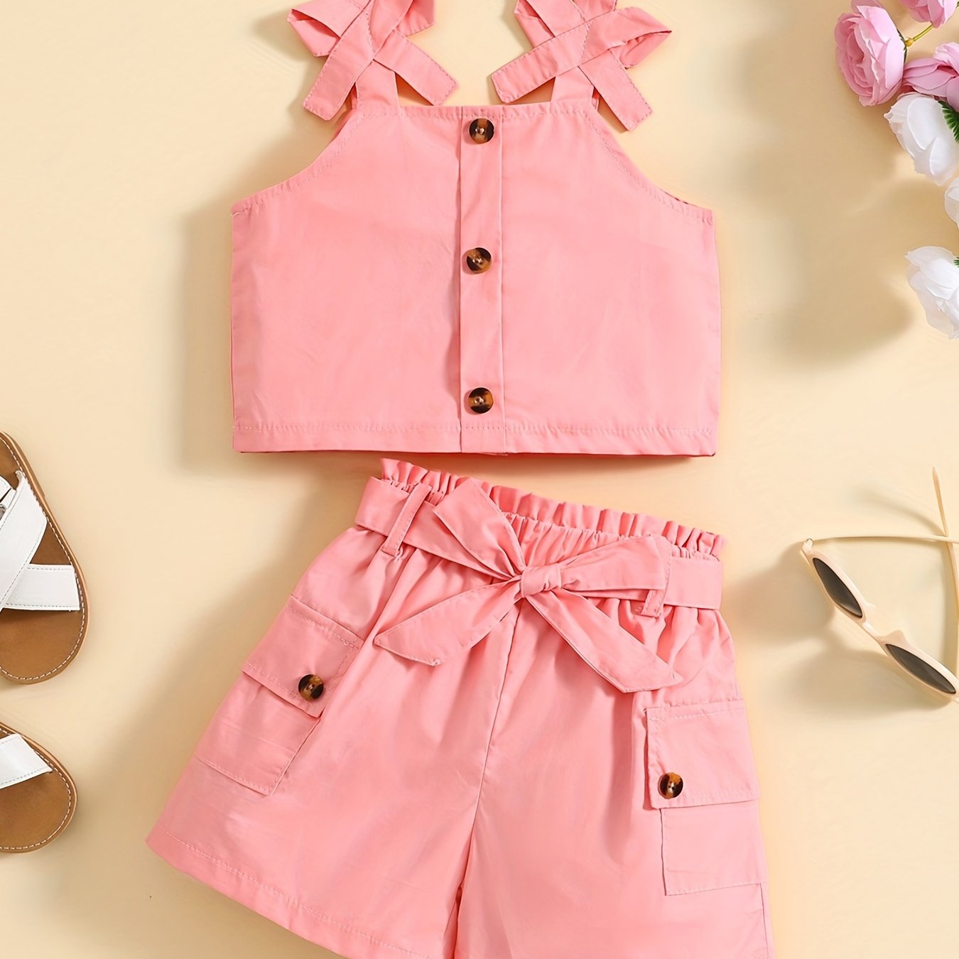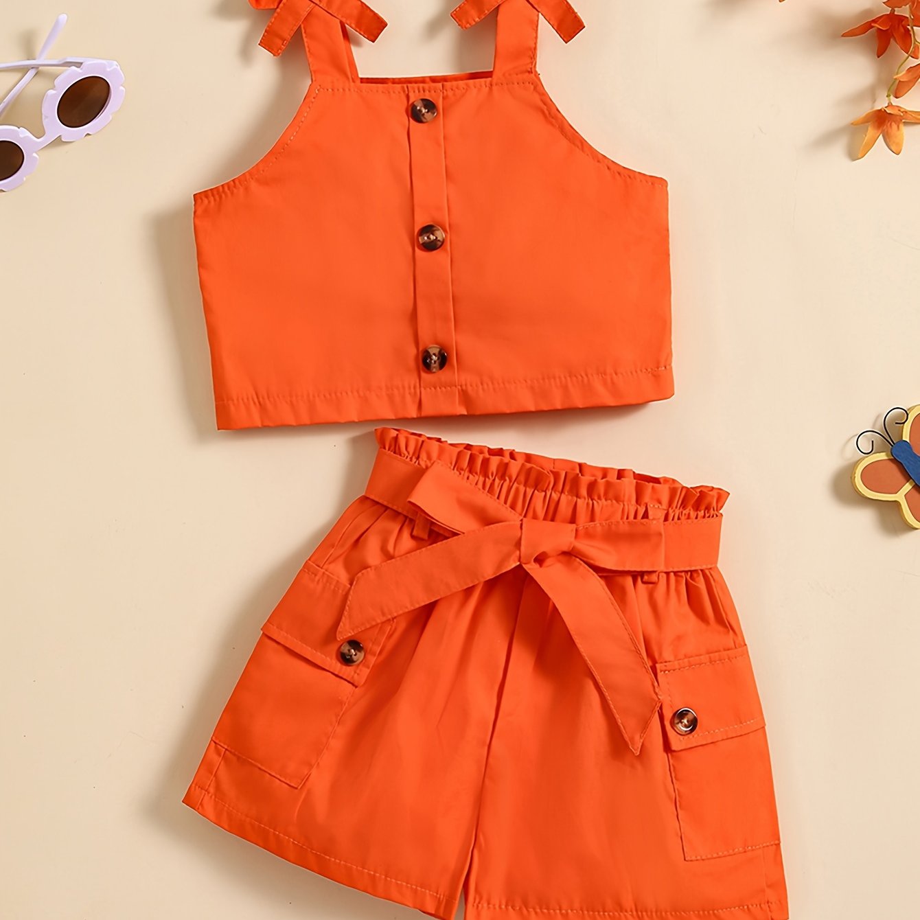 Девочкиный хлопковый топ-камис и шорты для летних активностей на открытом воздухе