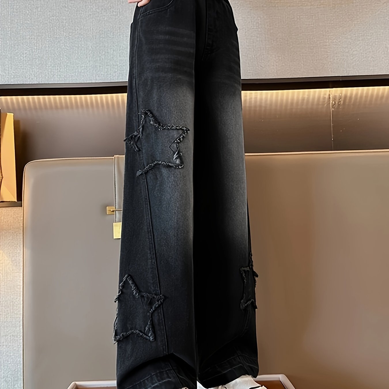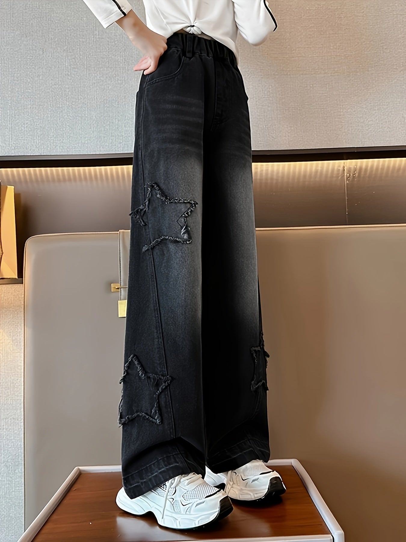 Джинсовые штаны для девочек с нашивкой в виде звезды и эффектом потертости для всех сезонов