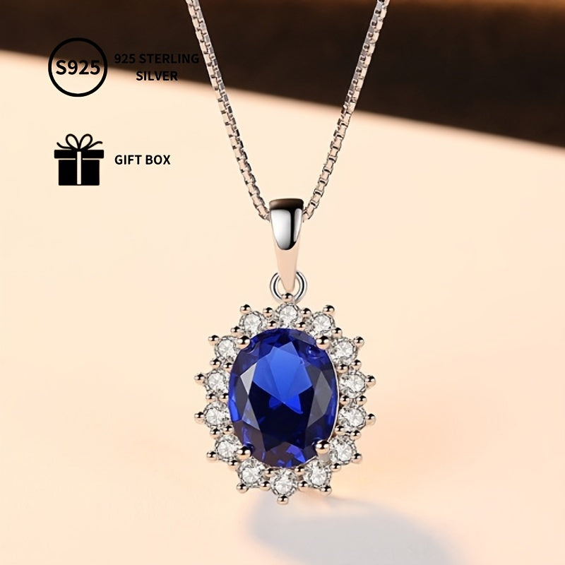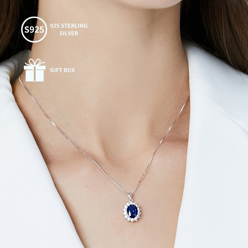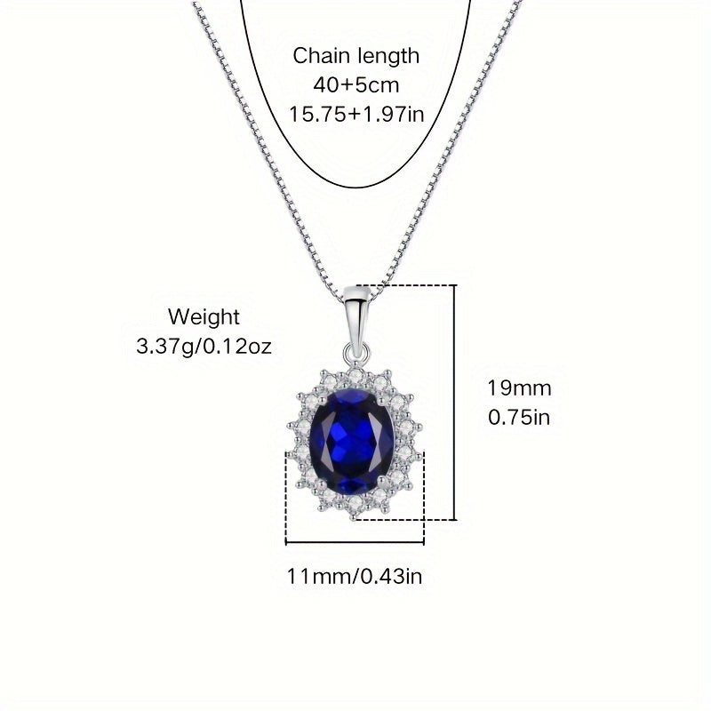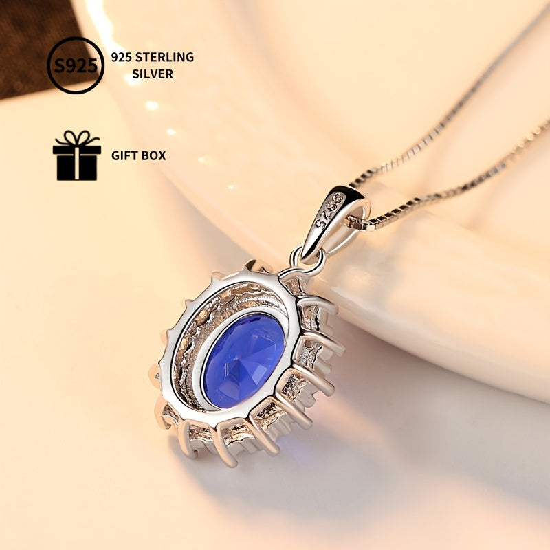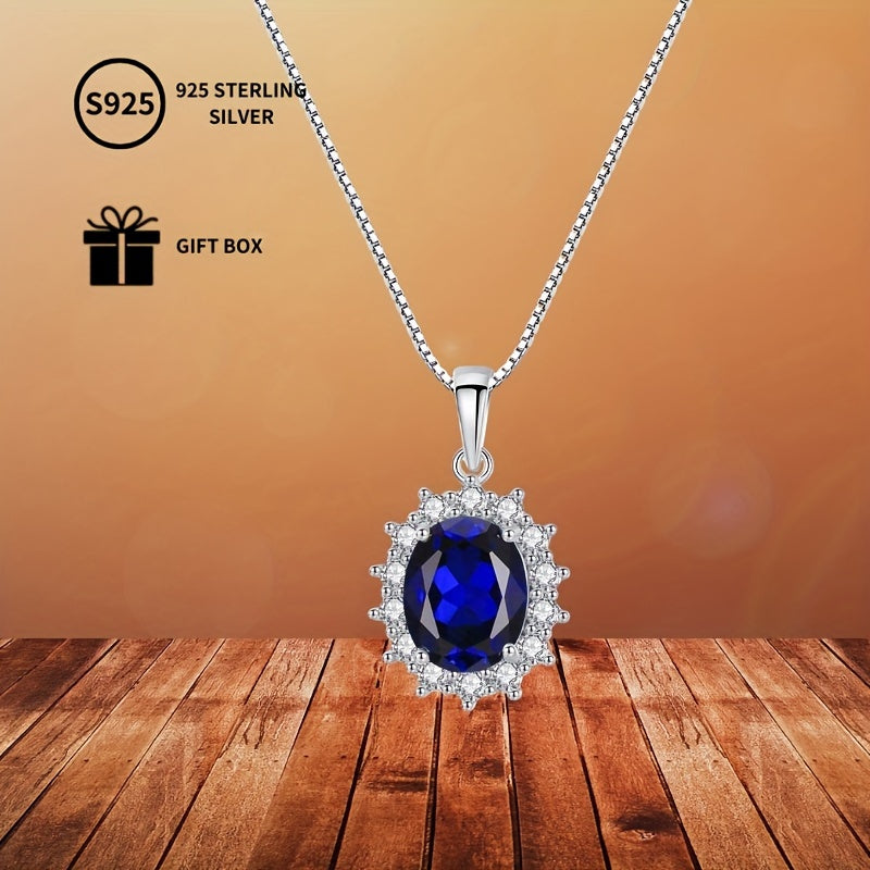 Серебряное ожерелье с синтетическим сапфиром-каффом, овальным дизайном с ореолом, для женщин