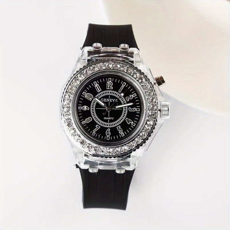 LED-круглые часы для пар с силиконовым ремешком и стразами, спортивные наручные часы