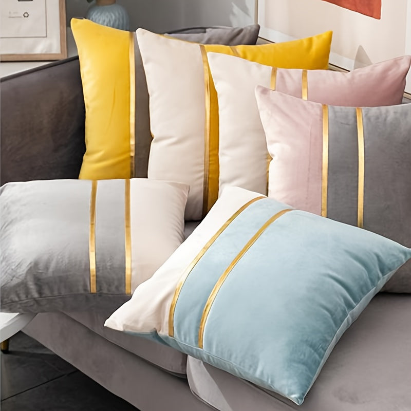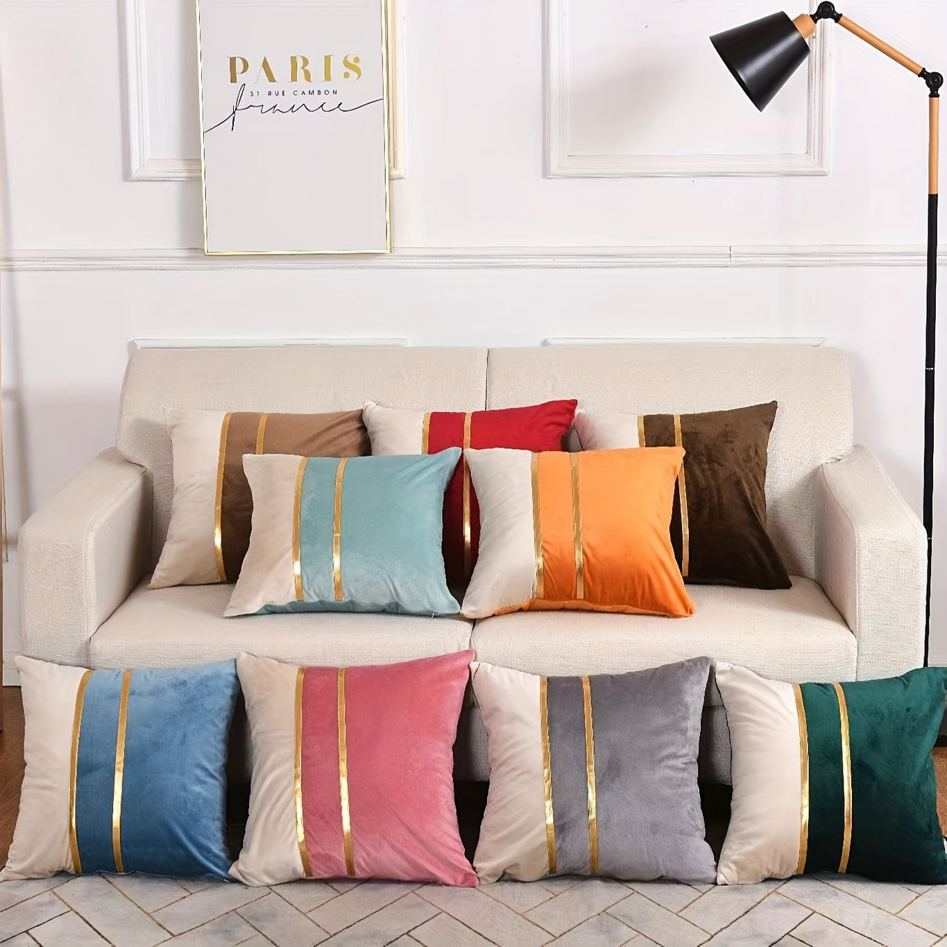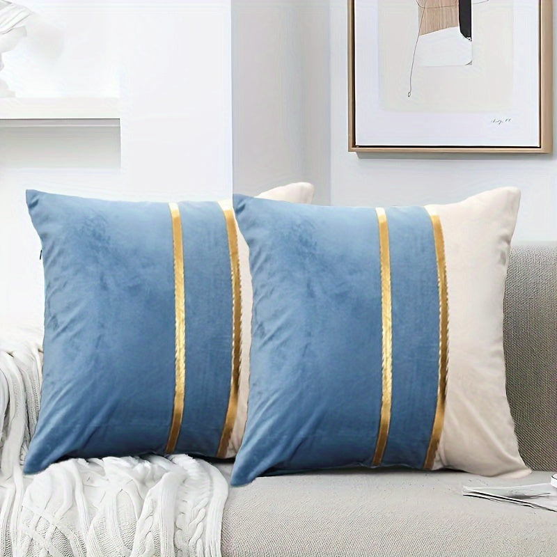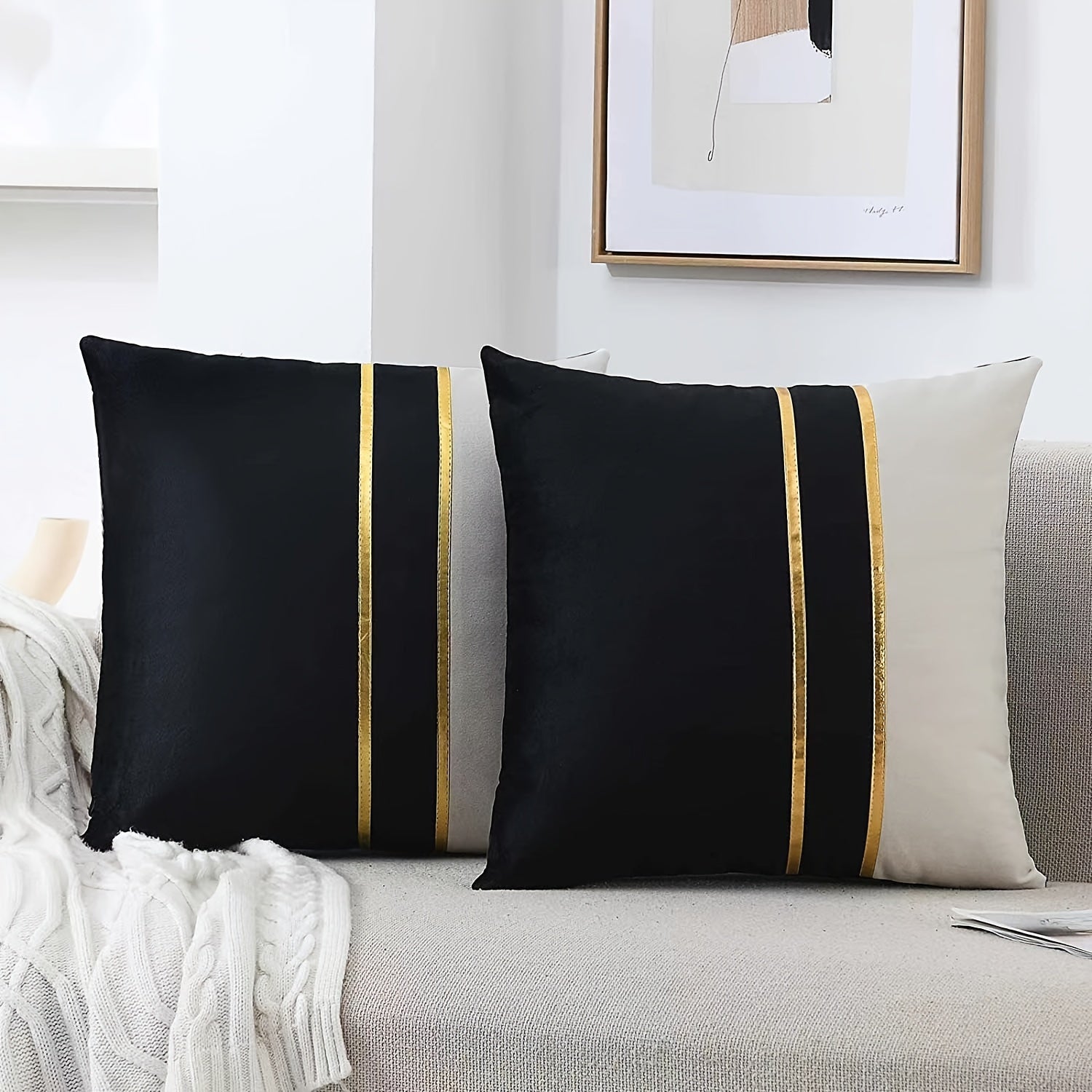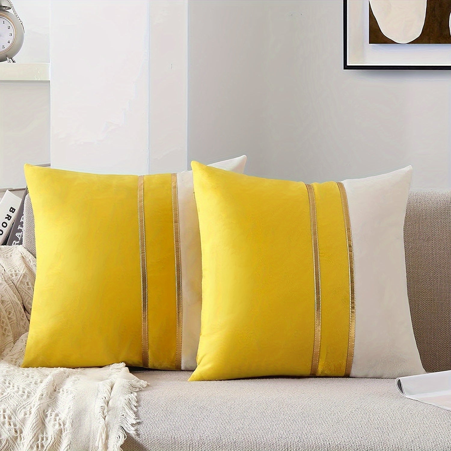 Золотистый бархатный квадратный чехол для подушки с тиснением - мягкий и роскошный, подходит для декора дома, спальни, автомобиля и гостиной (в комплект не входит наполнитель для подушки) - 2 штуки