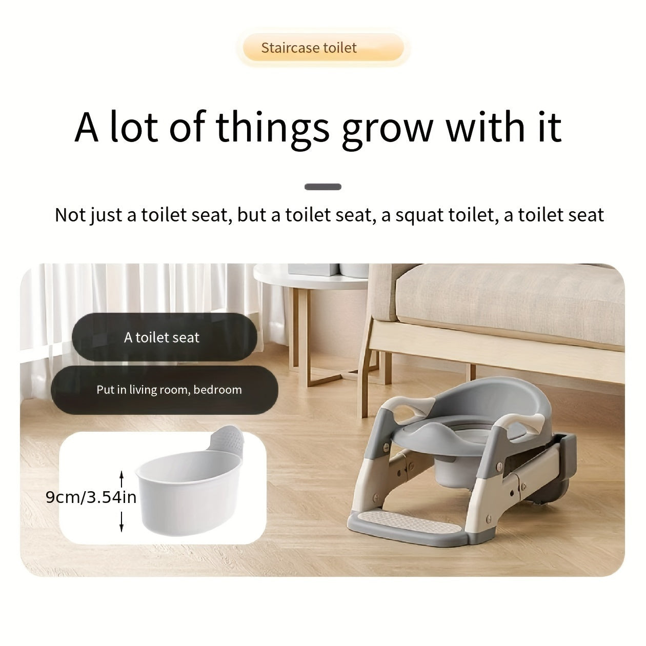 Серый пластиковый 3-в-1 многофункциональный детский туалетный тренажер, горшок-тренер, складная ступенька, кольцо для горшка для обучения туалету