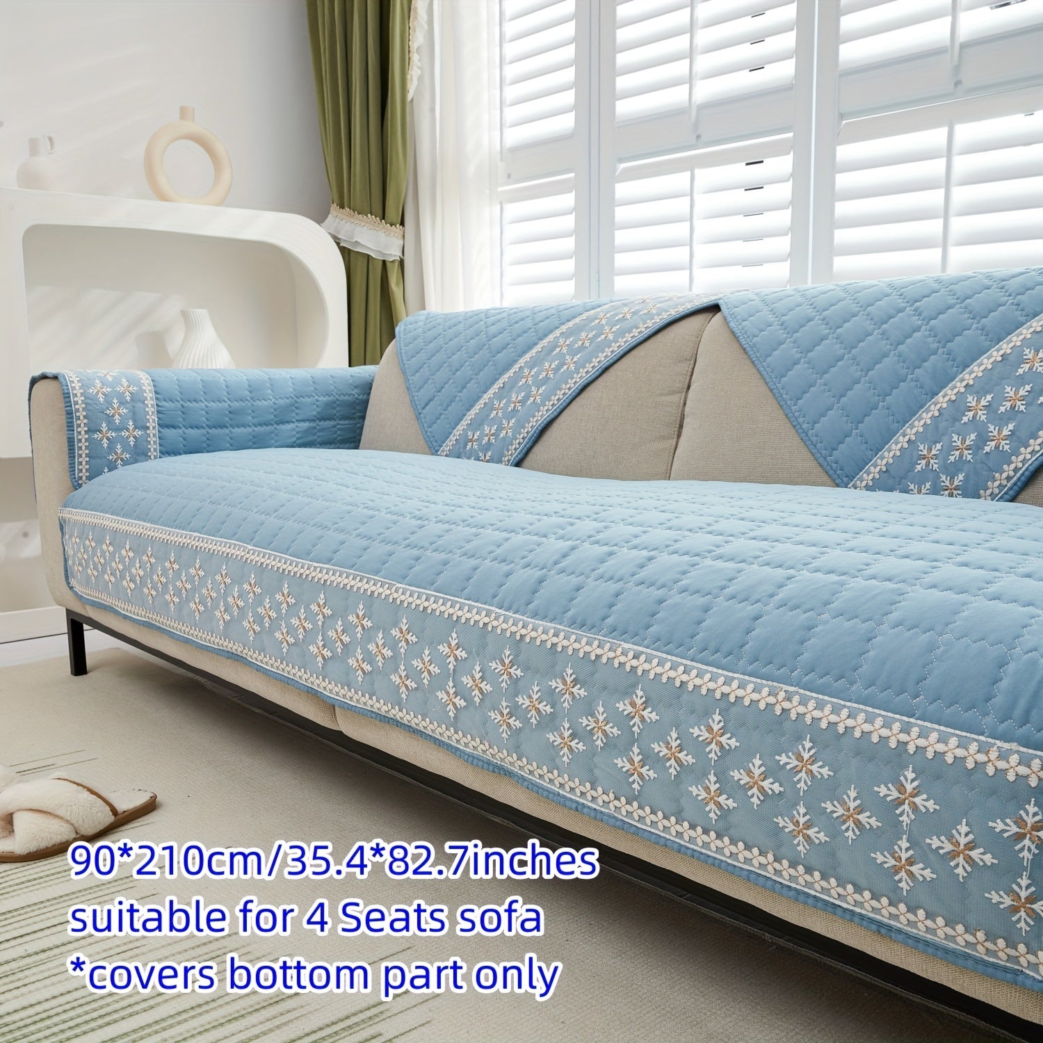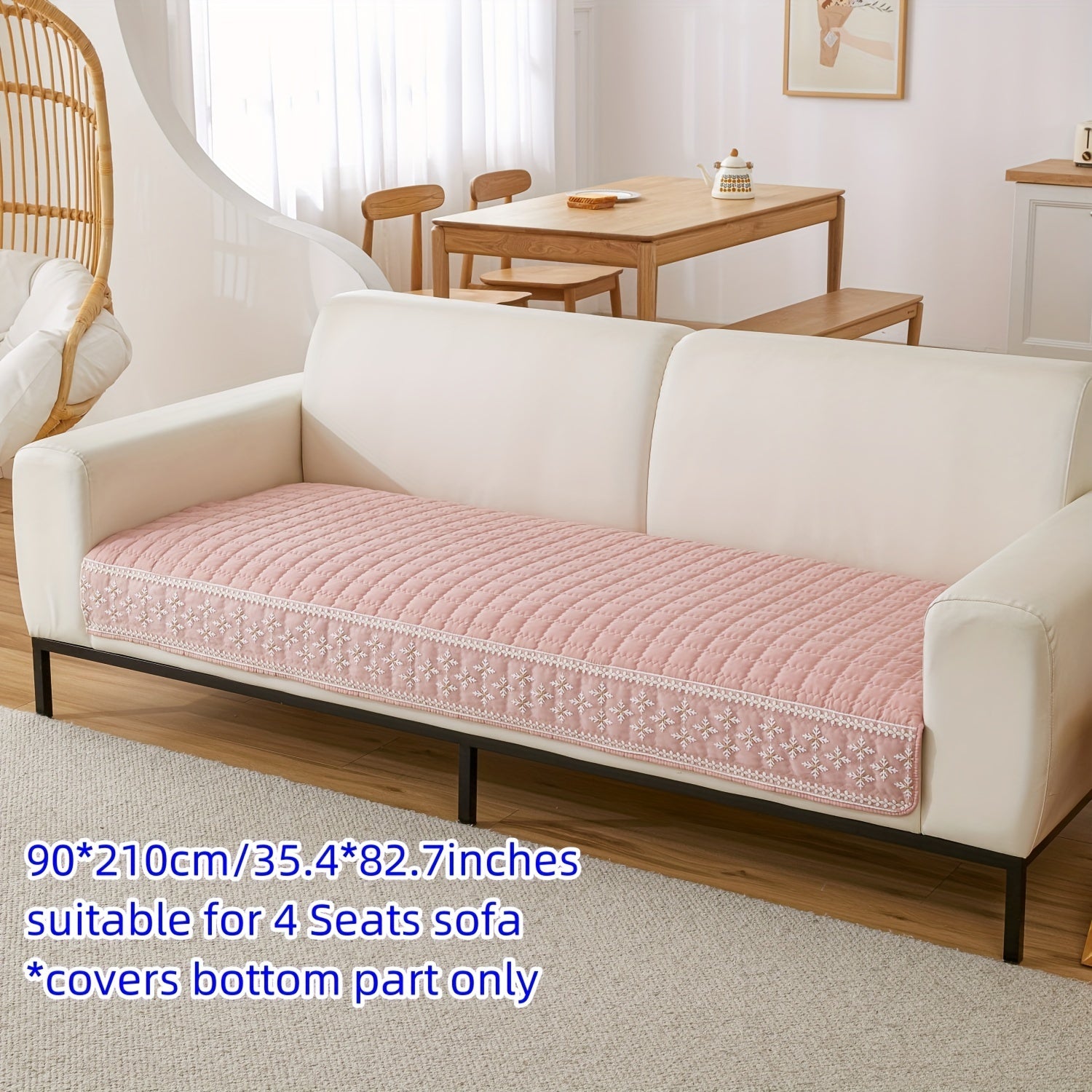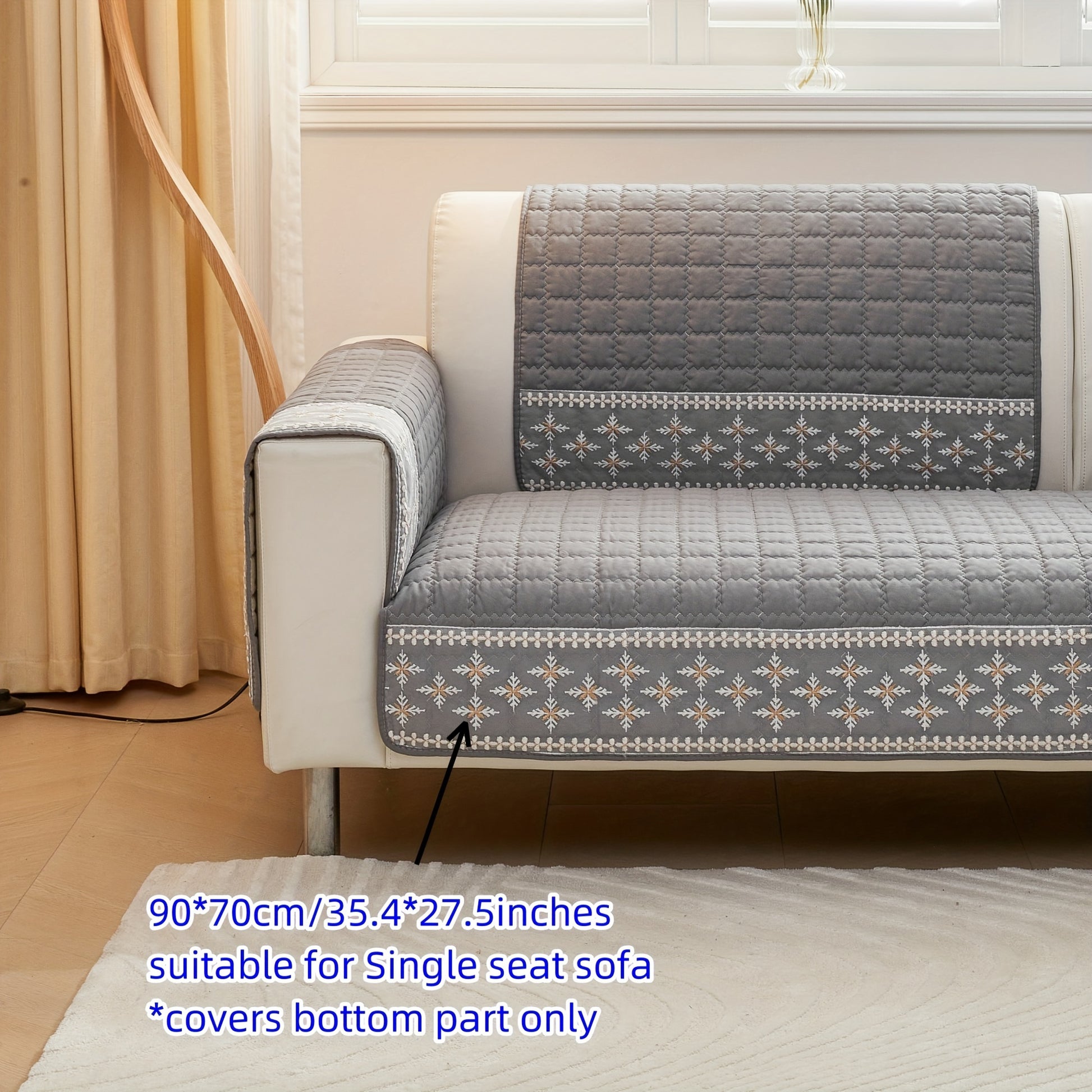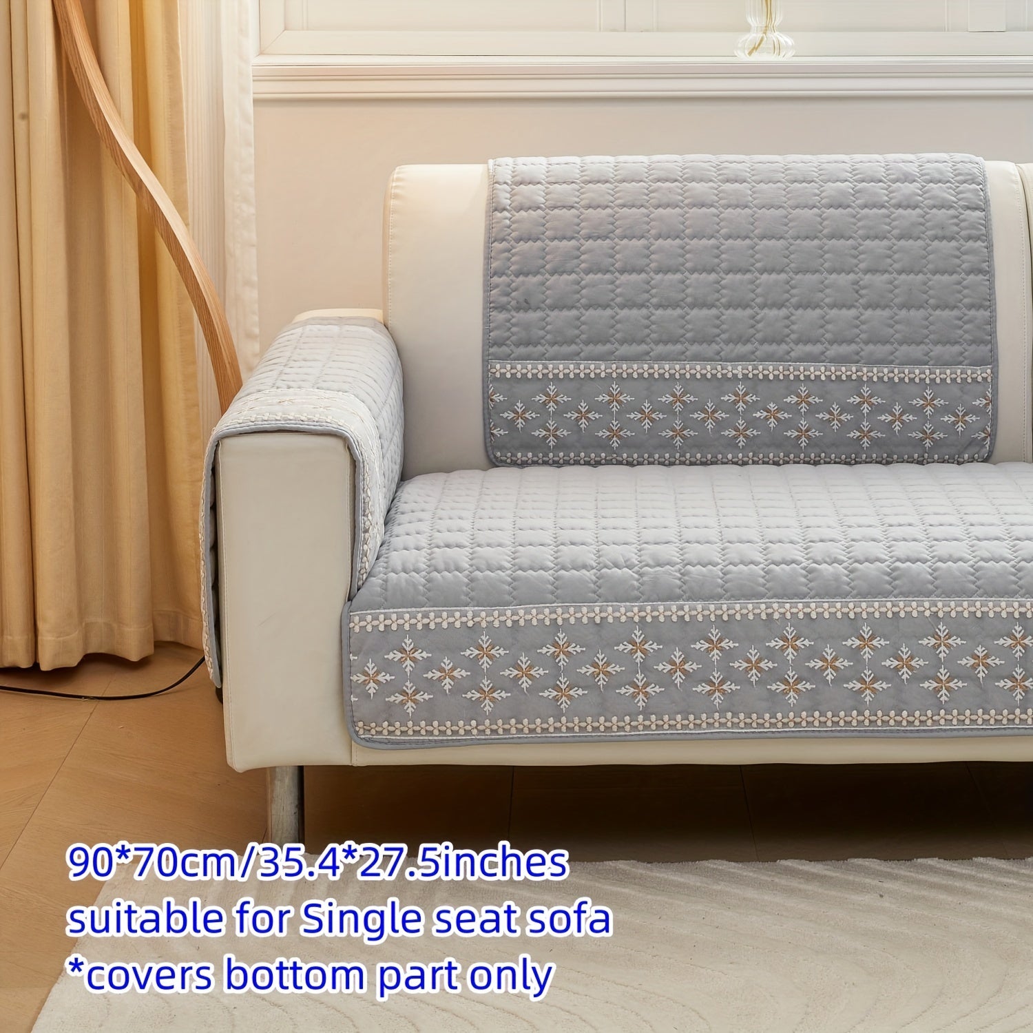 Серый бархатный чехол для дивана с вафельной текстурой и кружевными деталями, нескользящий и дружелюбный к домашним животным. Подходит для диванов на 1-4 места, можно стирать в машине.