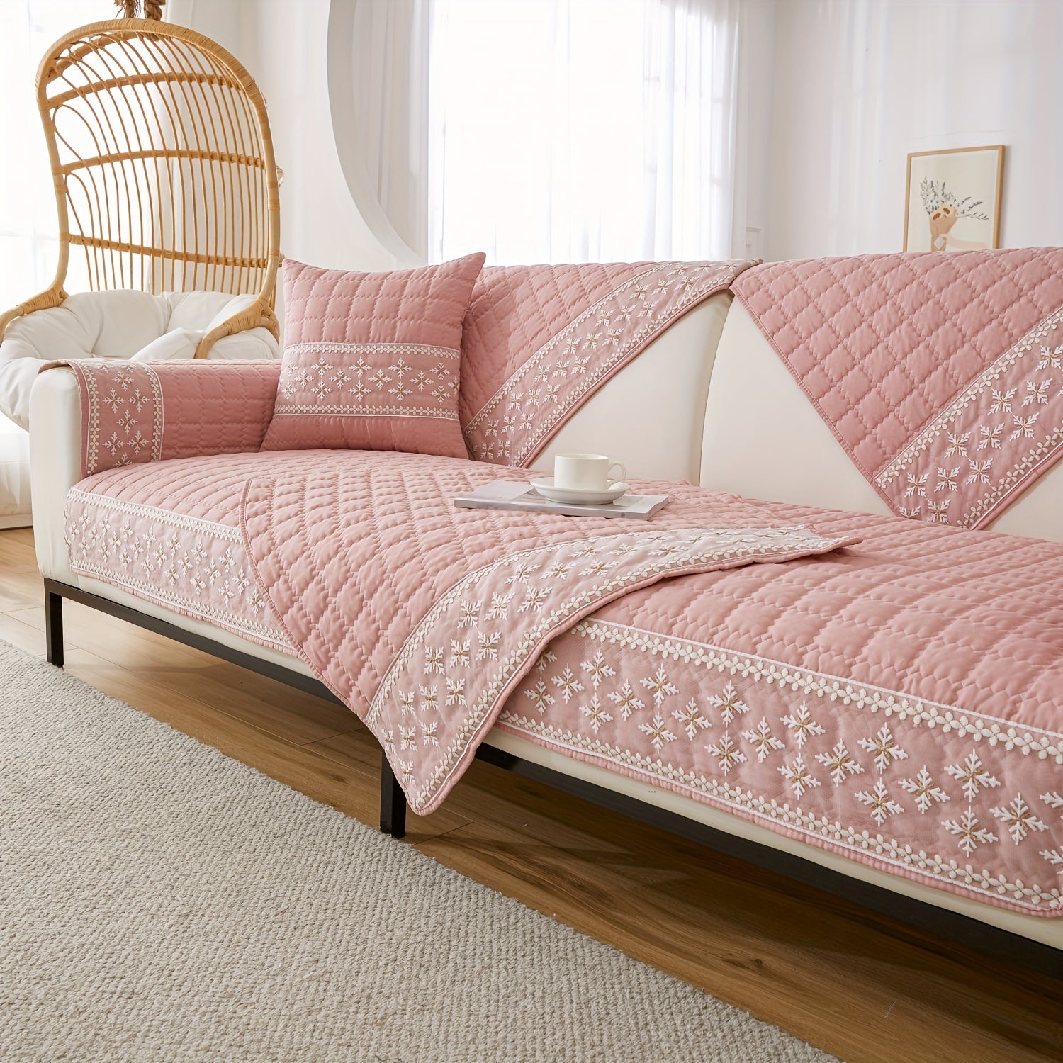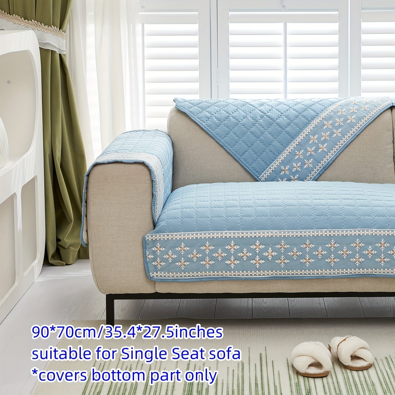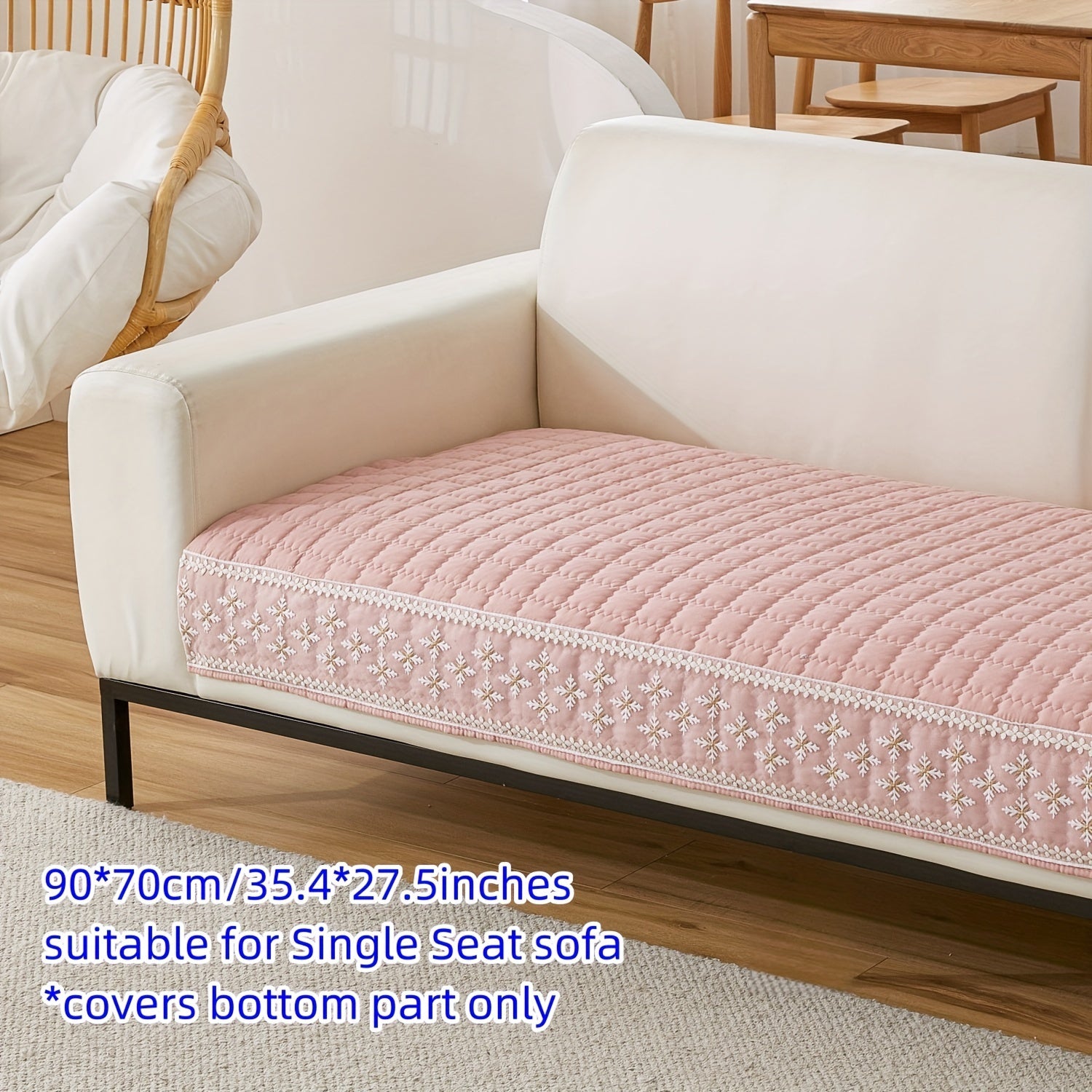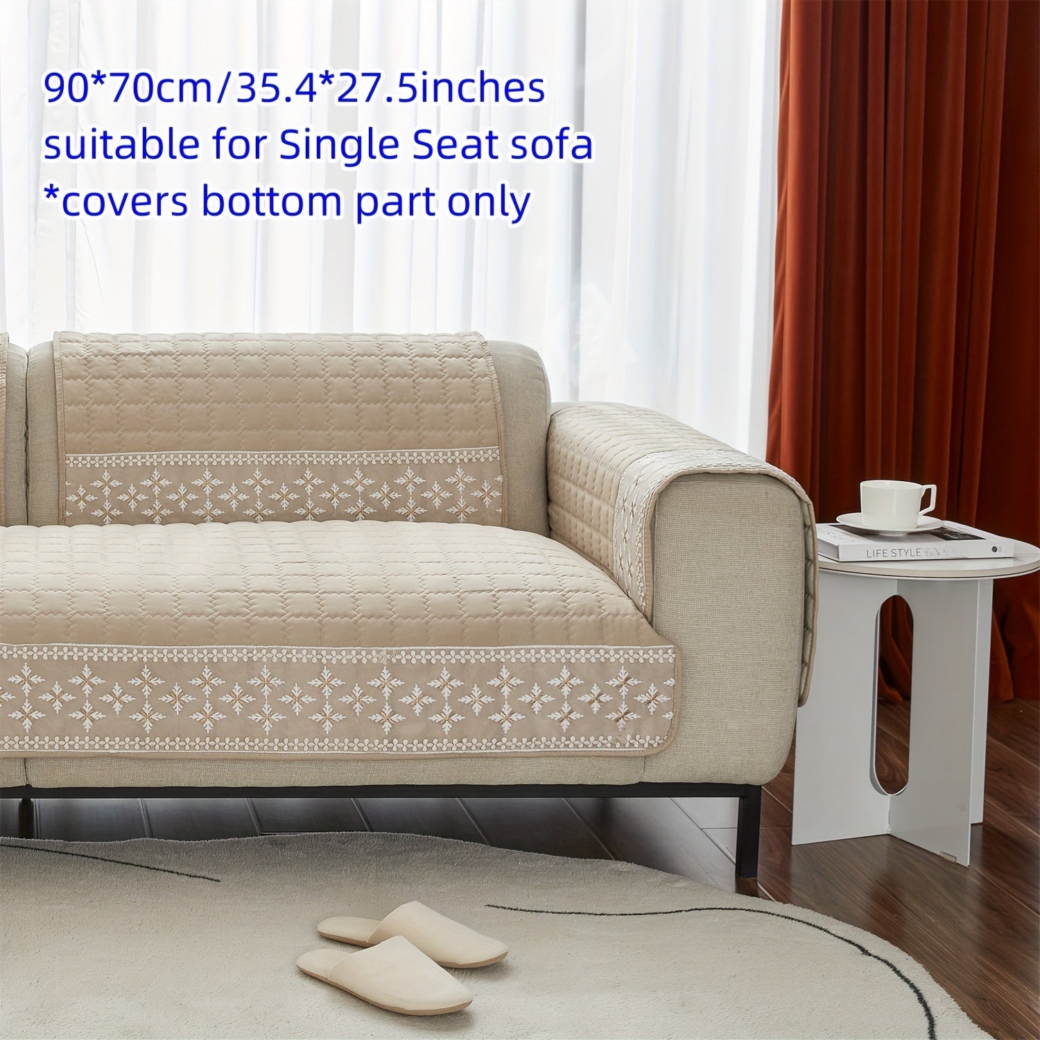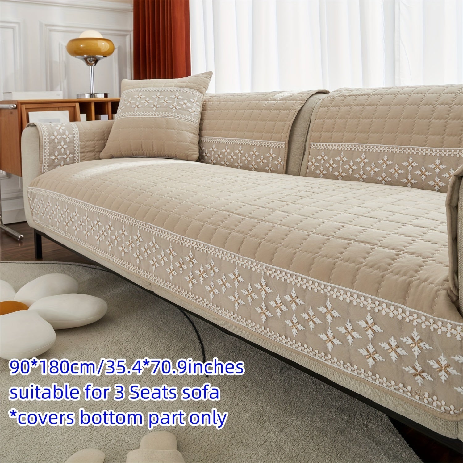 Серый бархатный чехол для дивана с вафельной текстурой и кружевными деталями, нескользящий и дружелюбный к домашним животным. Подходит для диванов на 1-4 места, можно стирать в машине.
