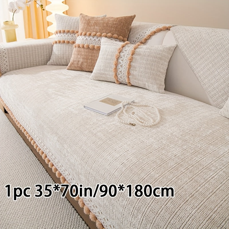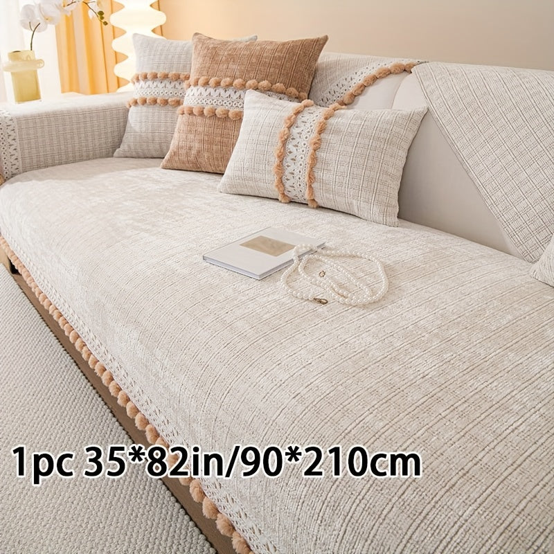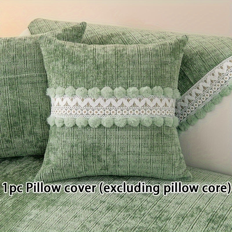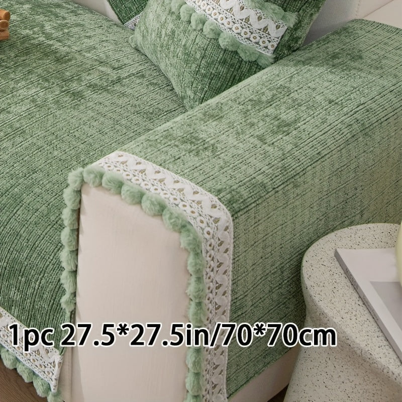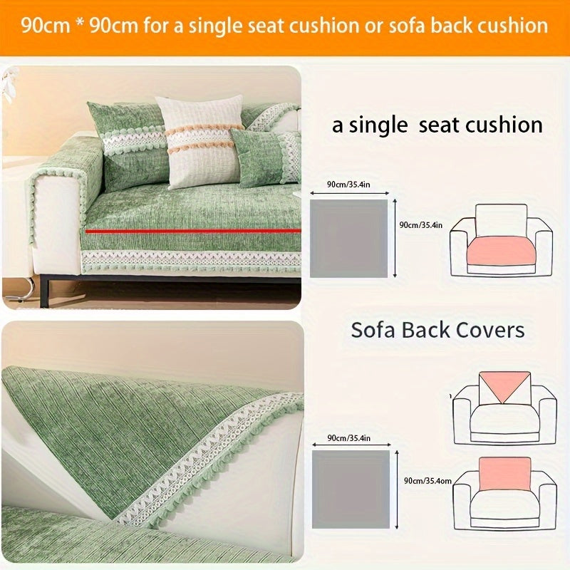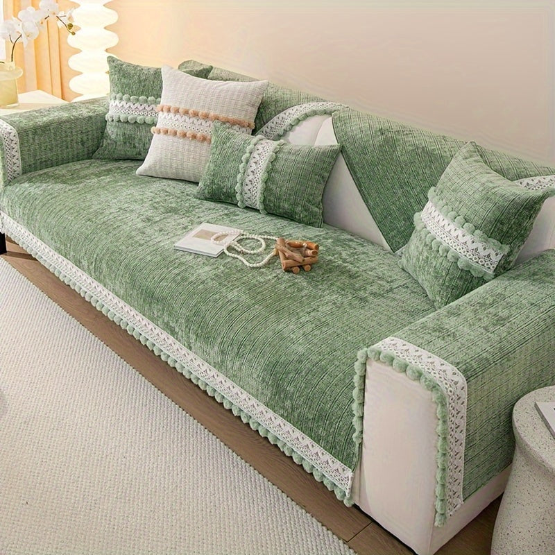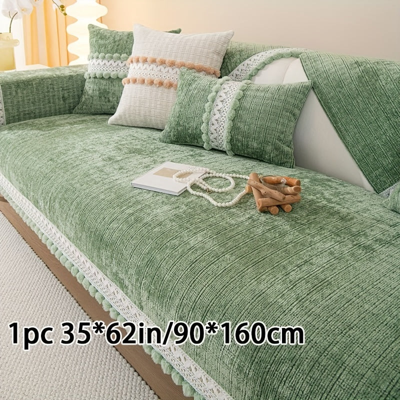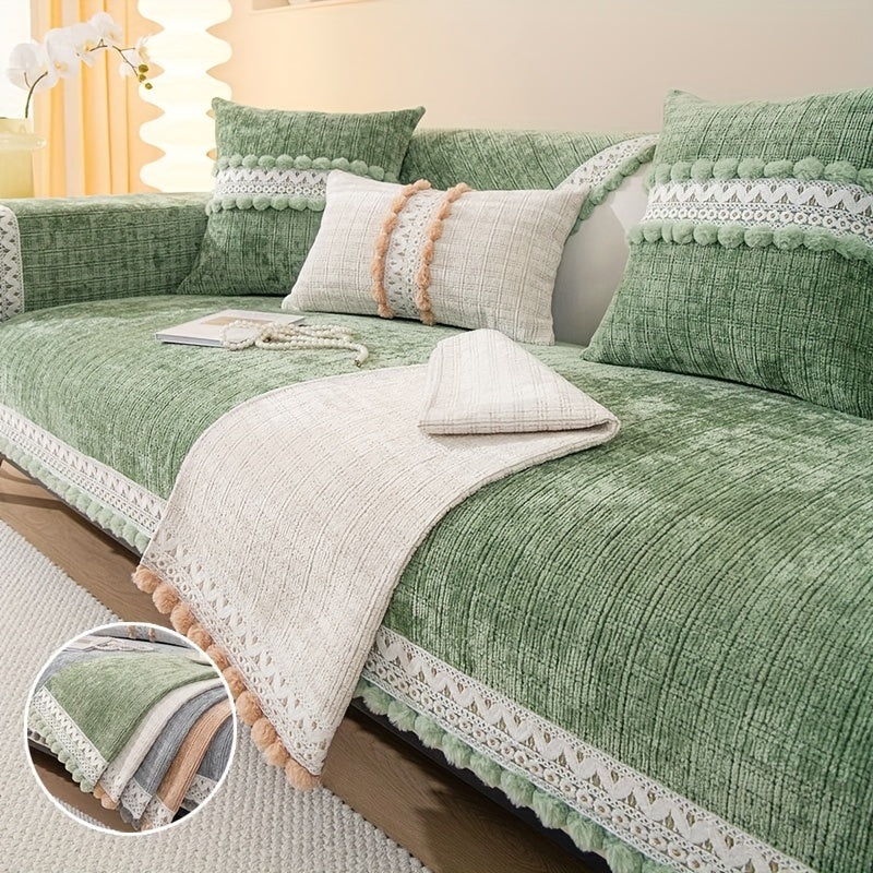 Зеленый чехол для дивана из шенилла с помпонами - водонепроницаемый и дружелюбный к домашним животным, подходит для всех размеров диванов (на 1-4 человека) - легкий в уходе, можно стирать в машине, с кисточками, идеален для любого декора комнаты