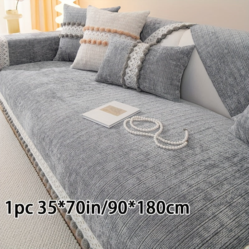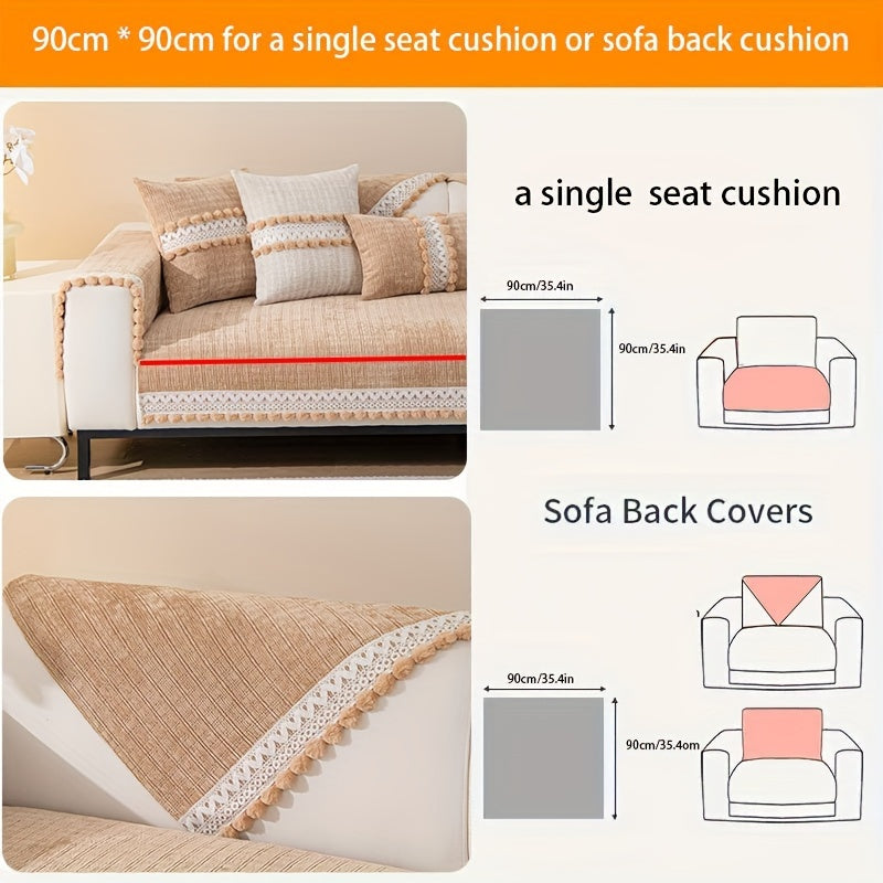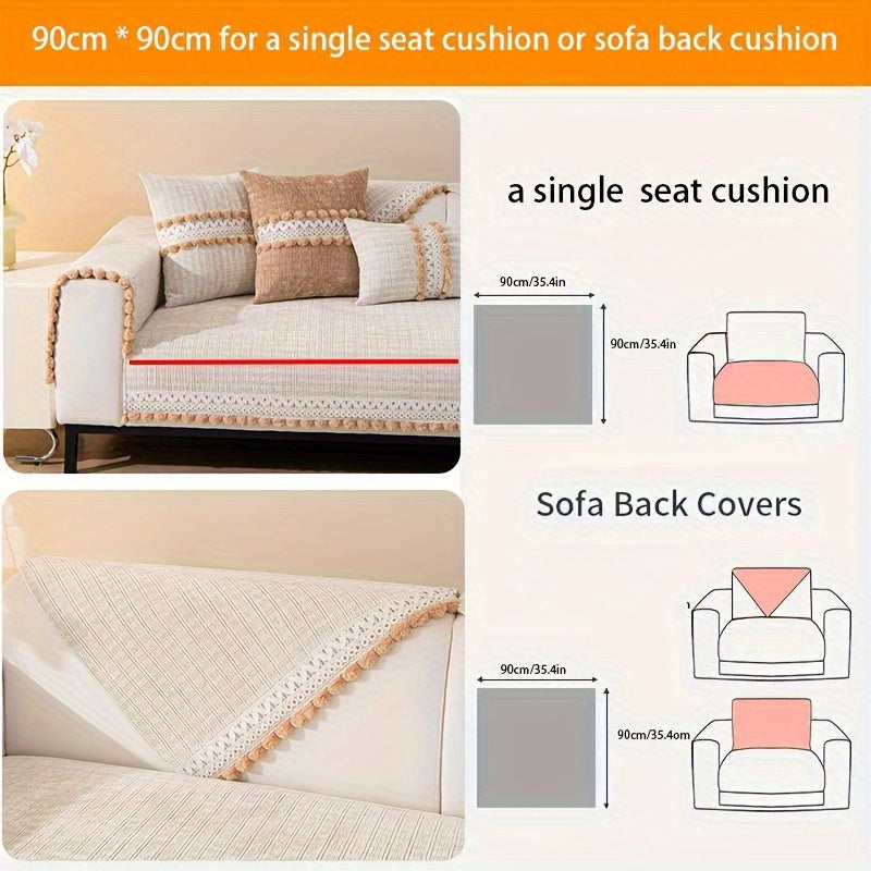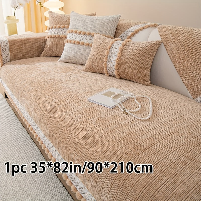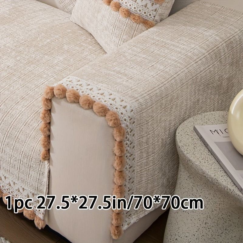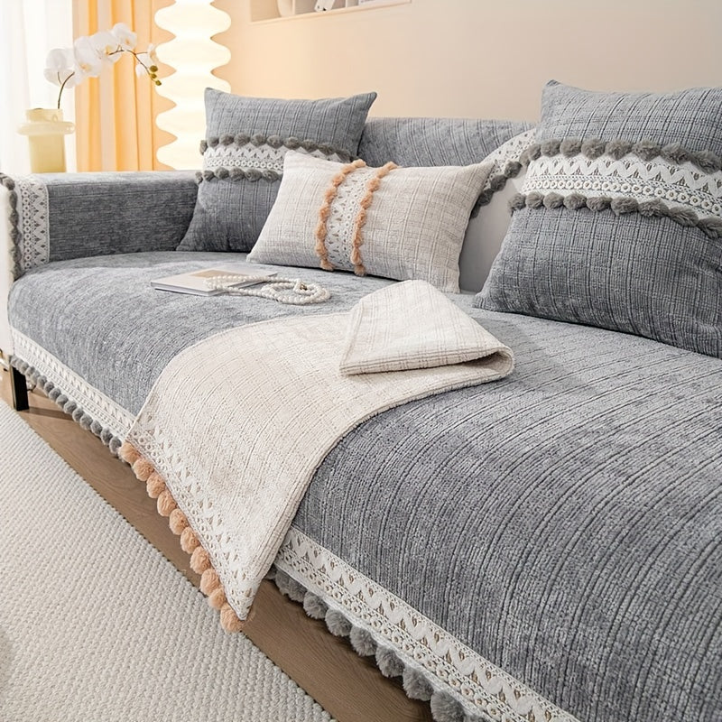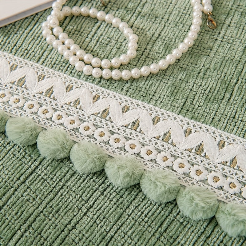 Зеленый чехол для дивана из шенилла с помпонами - водонепроницаемый и дружелюбный к домашним животным, подходит для всех размеров диванов (на 1-4 человека) - легкий в уходе, можно стирать в машине, с кисточками, идеален для любого декора комнаты