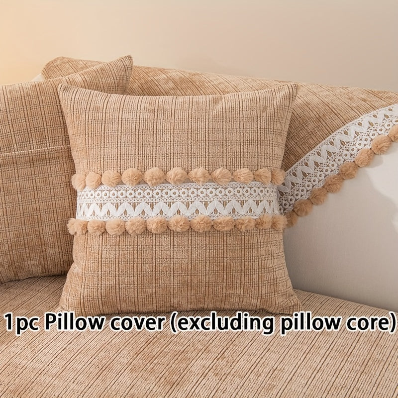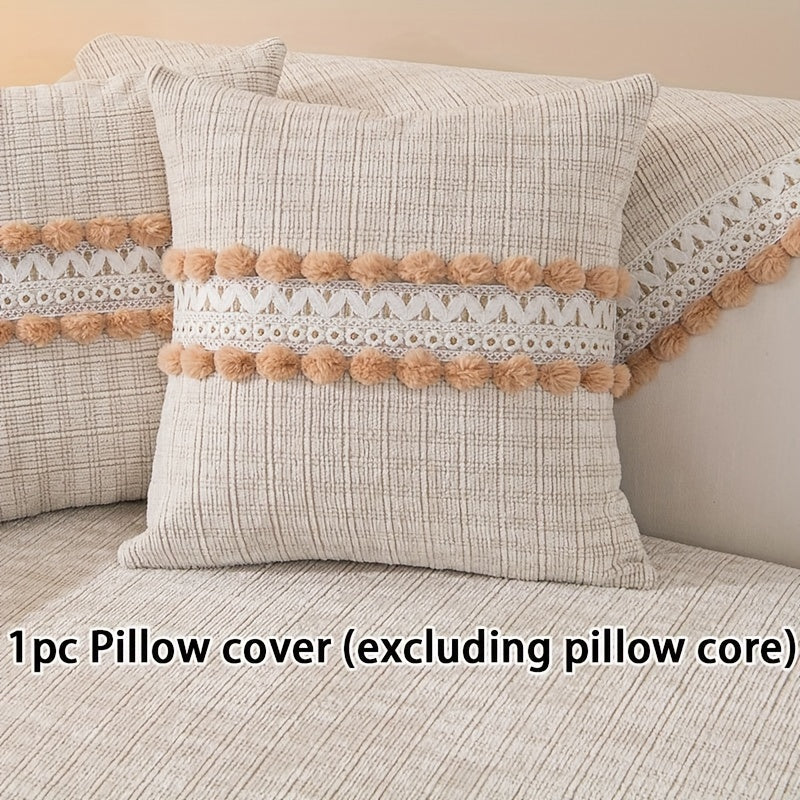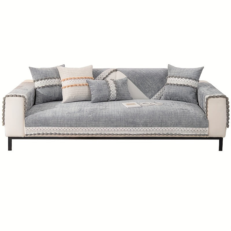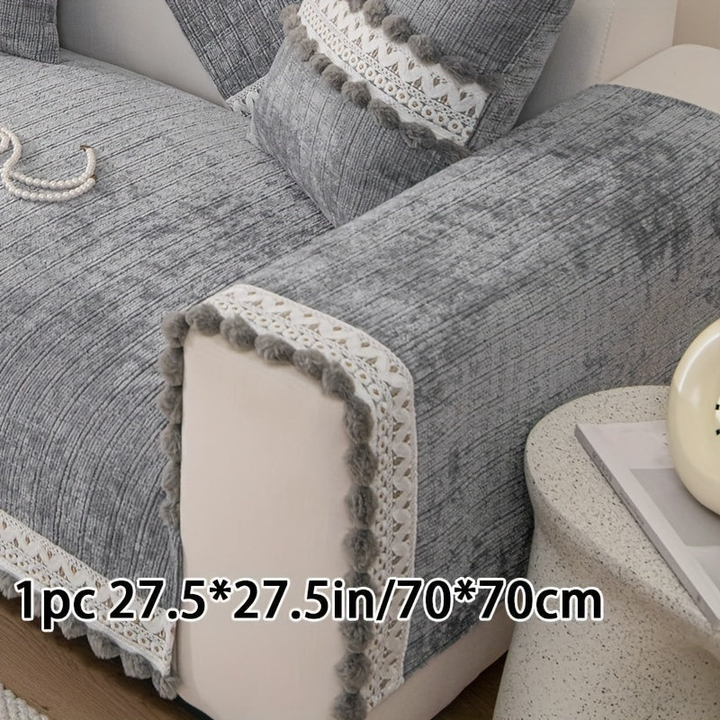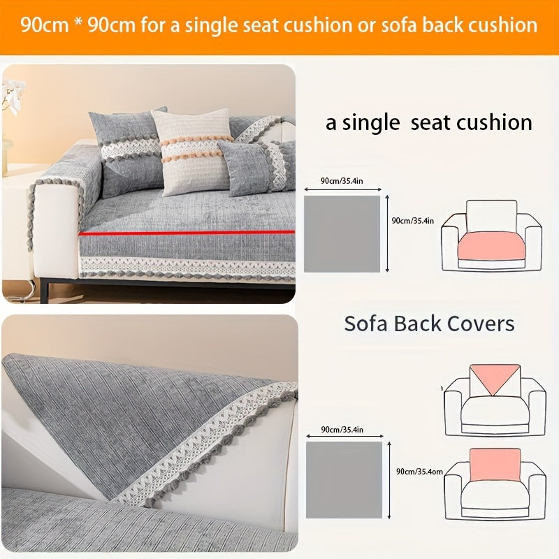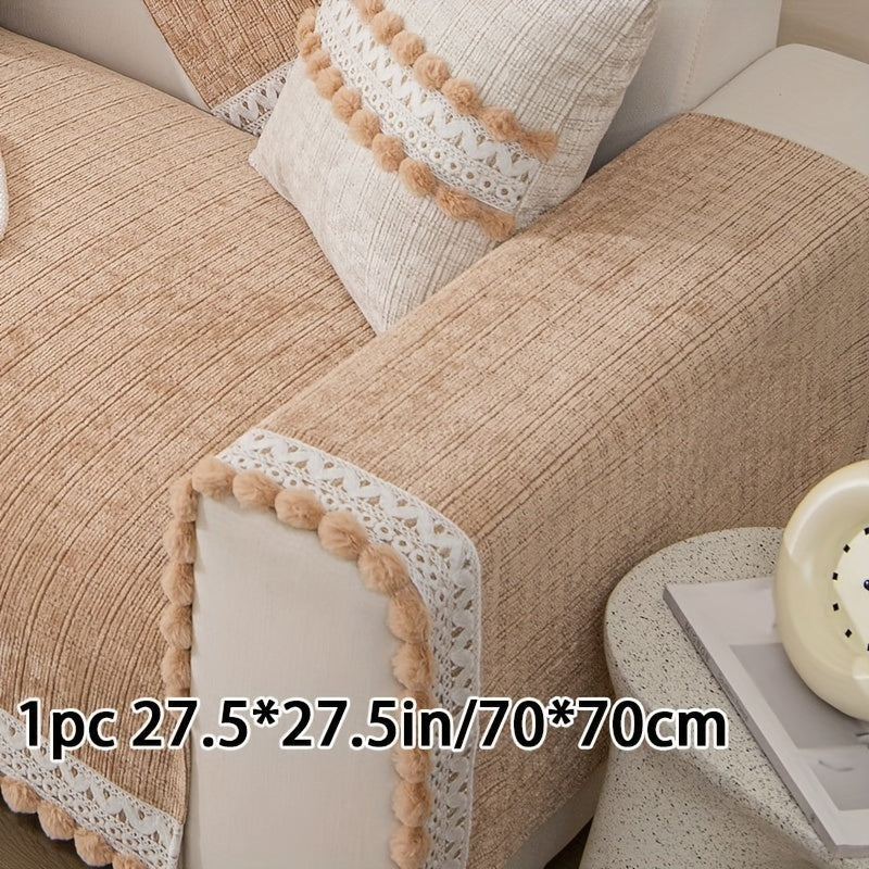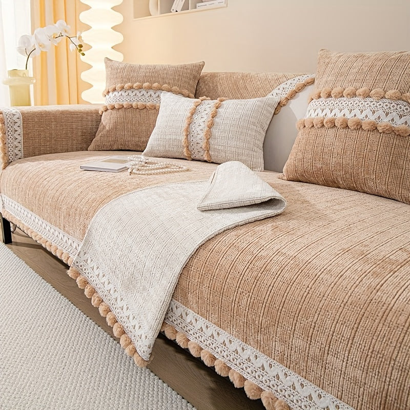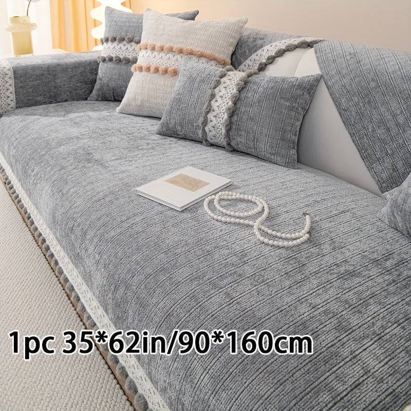 Зеленый чехол для дивана из шенилла с помпонами - водонепроницаемый и дружелюбный к домашним животным, подходит для всех размеров диванов (на 1-4 человека) - легкий в уходе, можно стирать в машине, с кисточками, идеален для любого декора комнаты