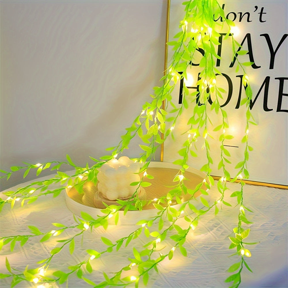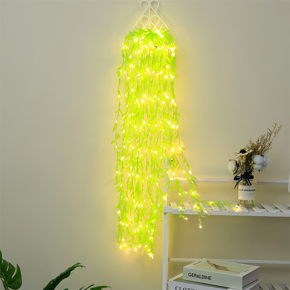Зеленая ветвь ивы светодиодная гирлянда на батарейках 2м 5м пластиковая свадебная праздничная декорация