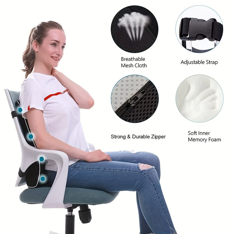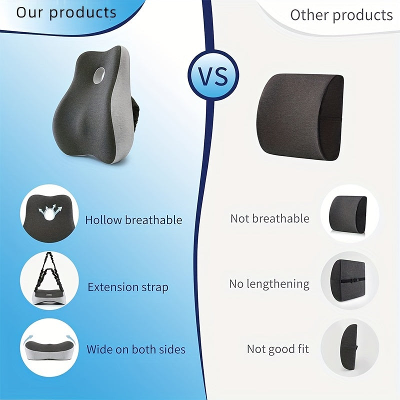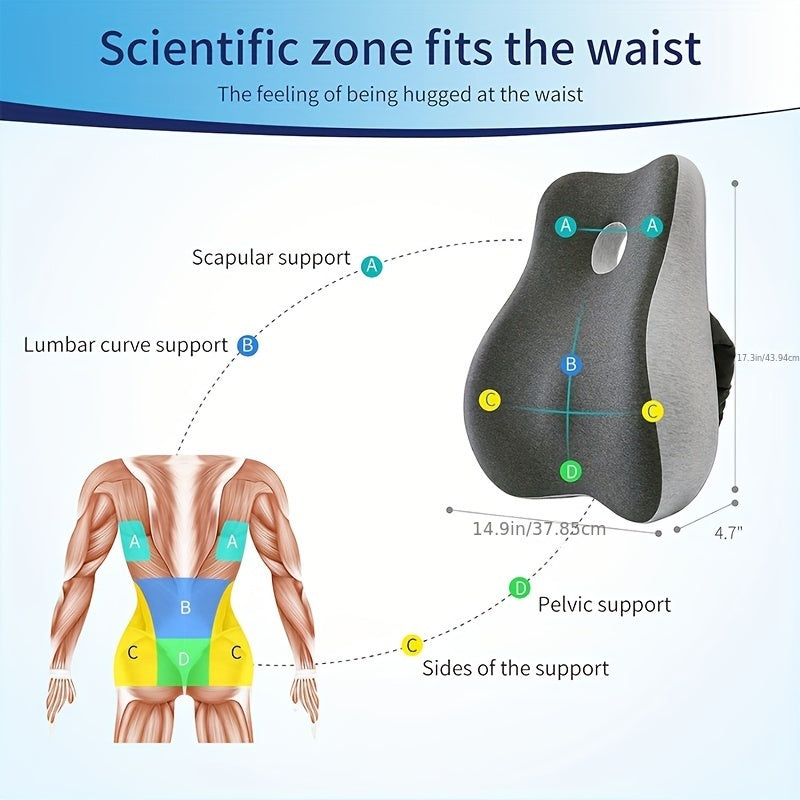 Сердая эргономичная подушка для поясничной поддержки с 3D-пеной из памяти и регулируемым ремнем